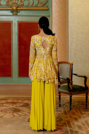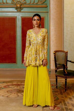 Lime Yellow Floral Peplum Set