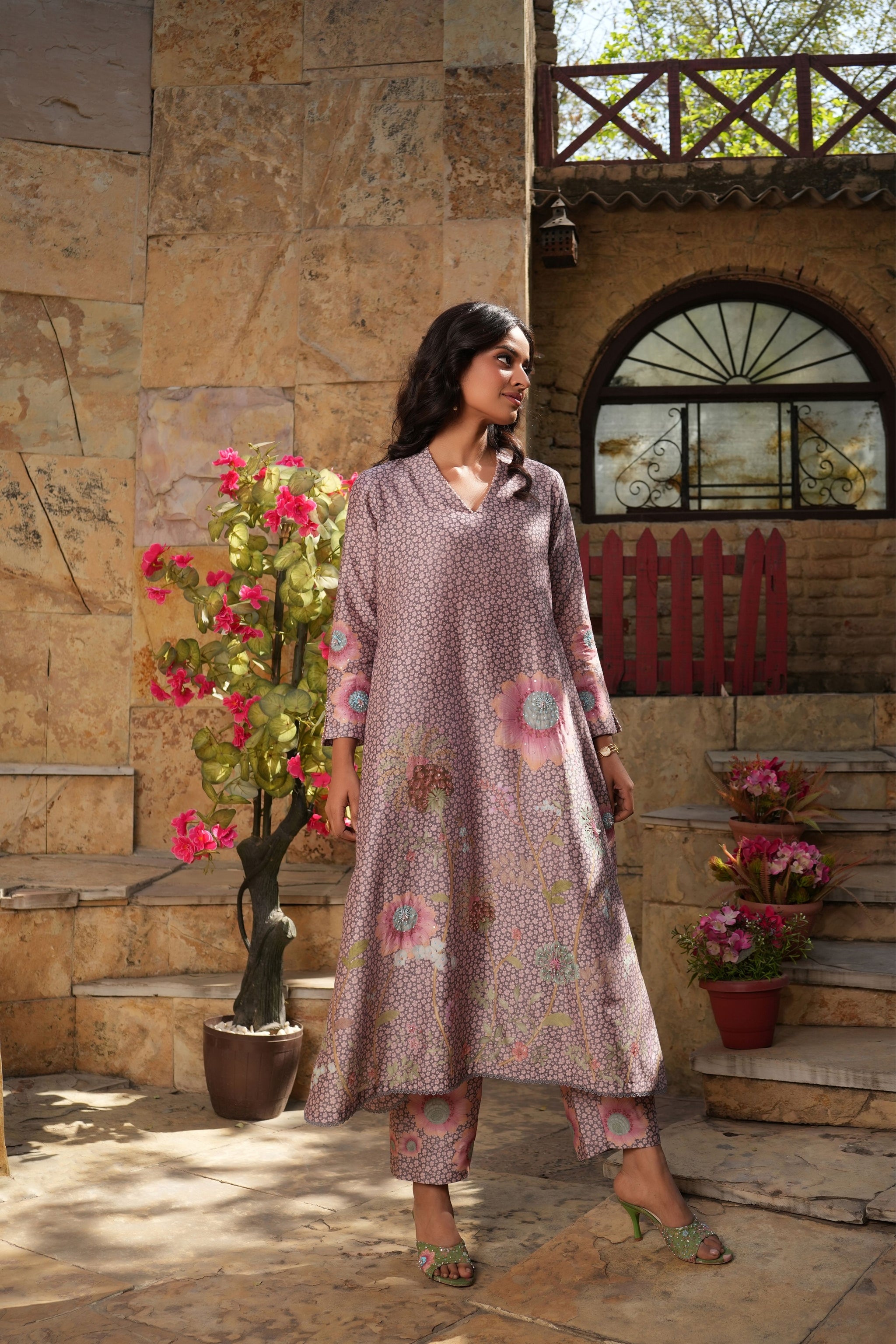 • This 2pc kurta set is enhanced with delicated embroidery all over kurta and it also has lacey hemline .