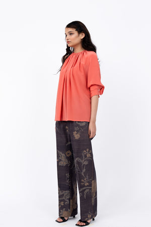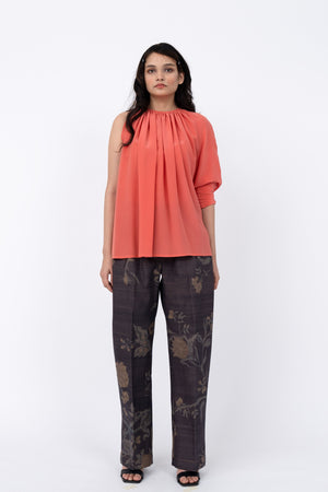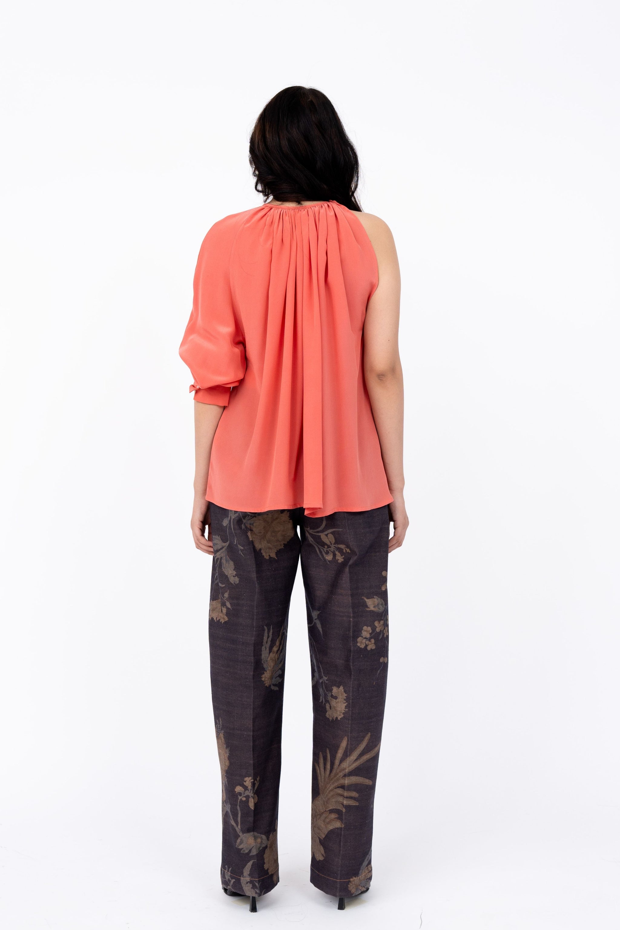 • This top is cut in 100% silk highlighting the flowy fit and a off shoulder deatailmodel wear size s model height is 5'10 garment length is 26"