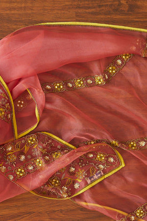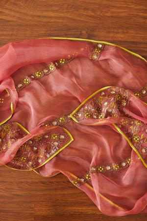 • Akaari, pink rekha embroidered dupatta, crafted in organza silk fabric
