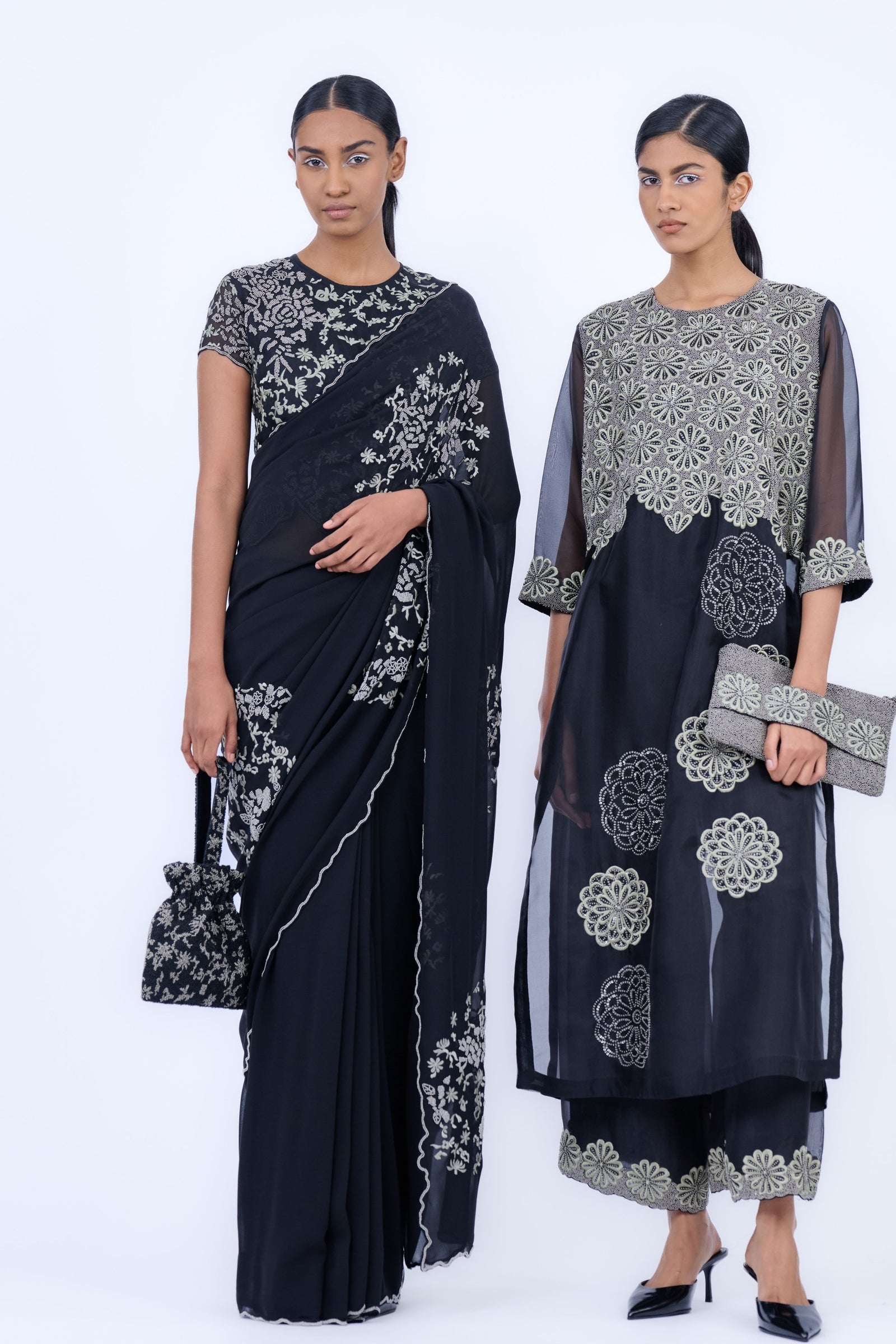 Care: Dry Clean Only. As garments are handmade and handwoven, natural variations in colours and weaves are a characteristic of the textile, and may be found in the finished garments as well.