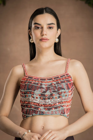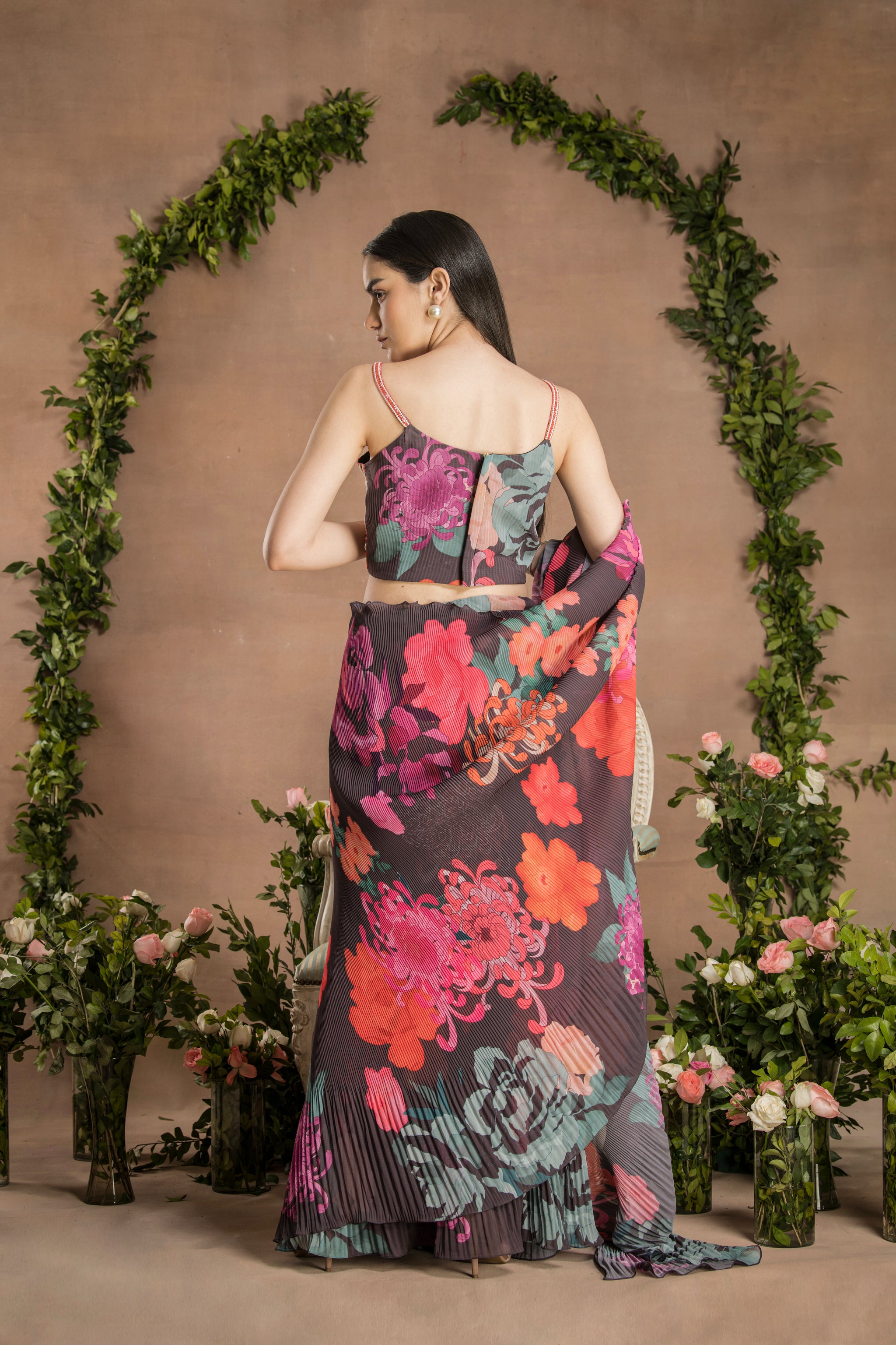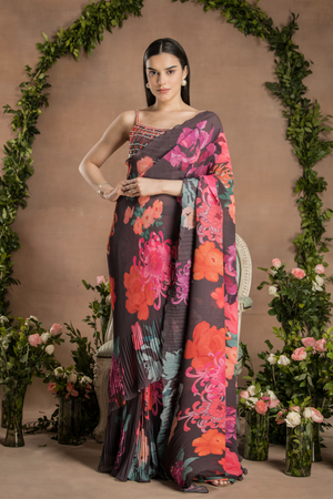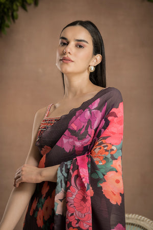 • Chinon digital print saree with mirror hand work blouse & belt.