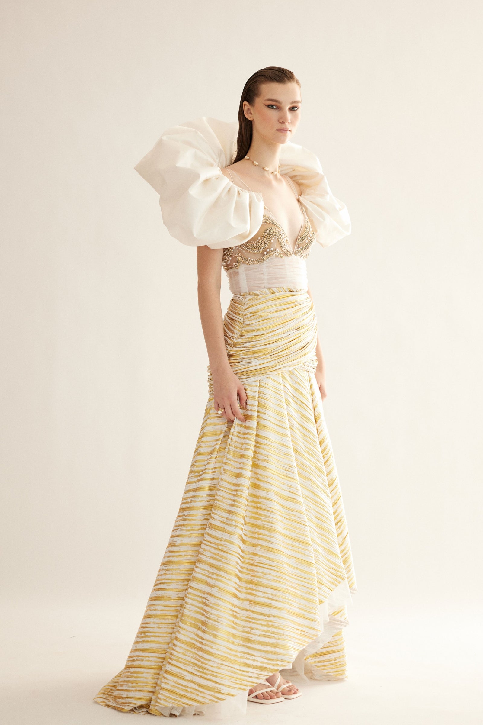 Care: Dry Clean Only. As garments are handmade and handwoven, natural variations in colours and weaves are a characteristic of the textile, and may be found in the finished garments as well.