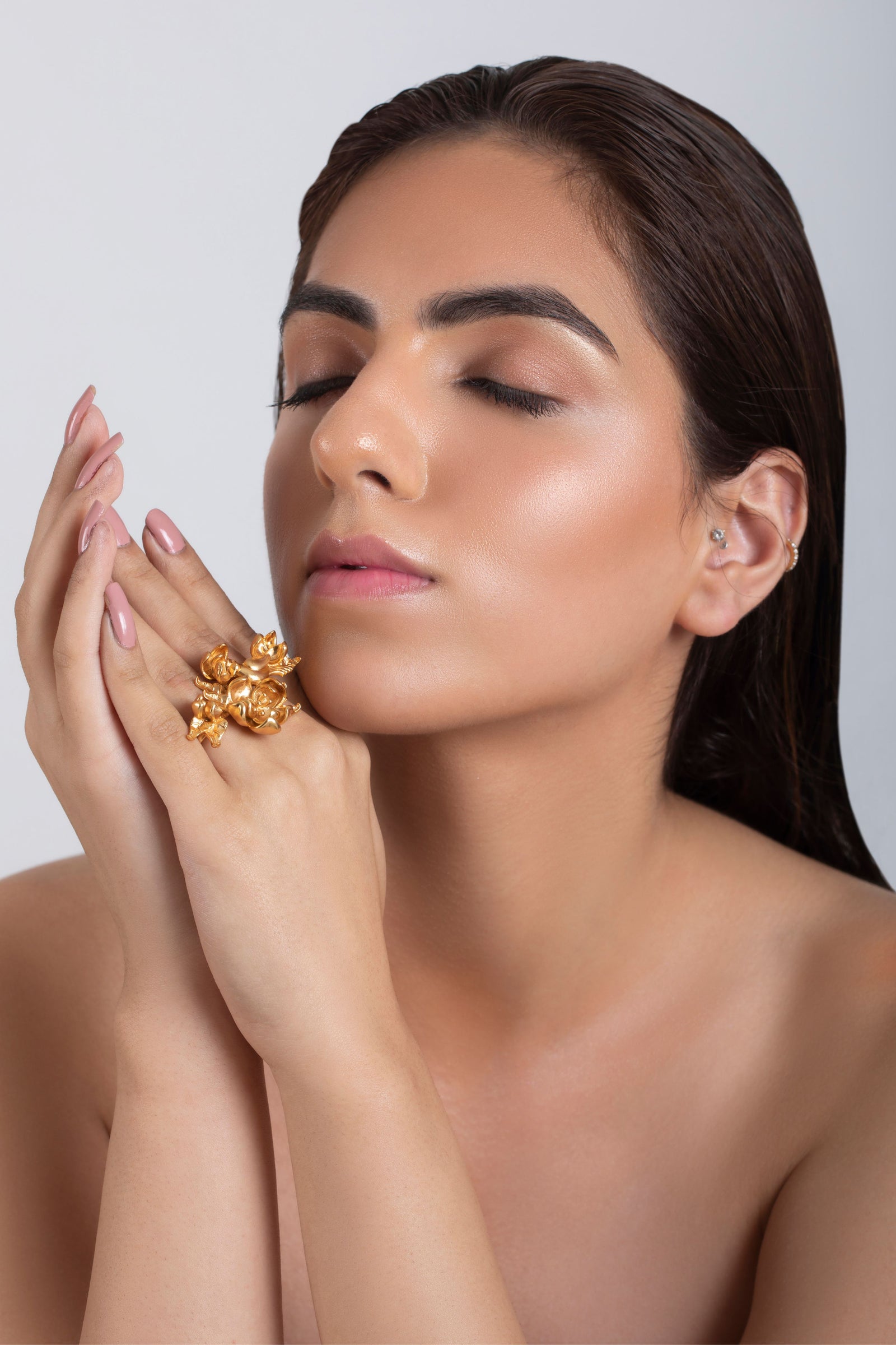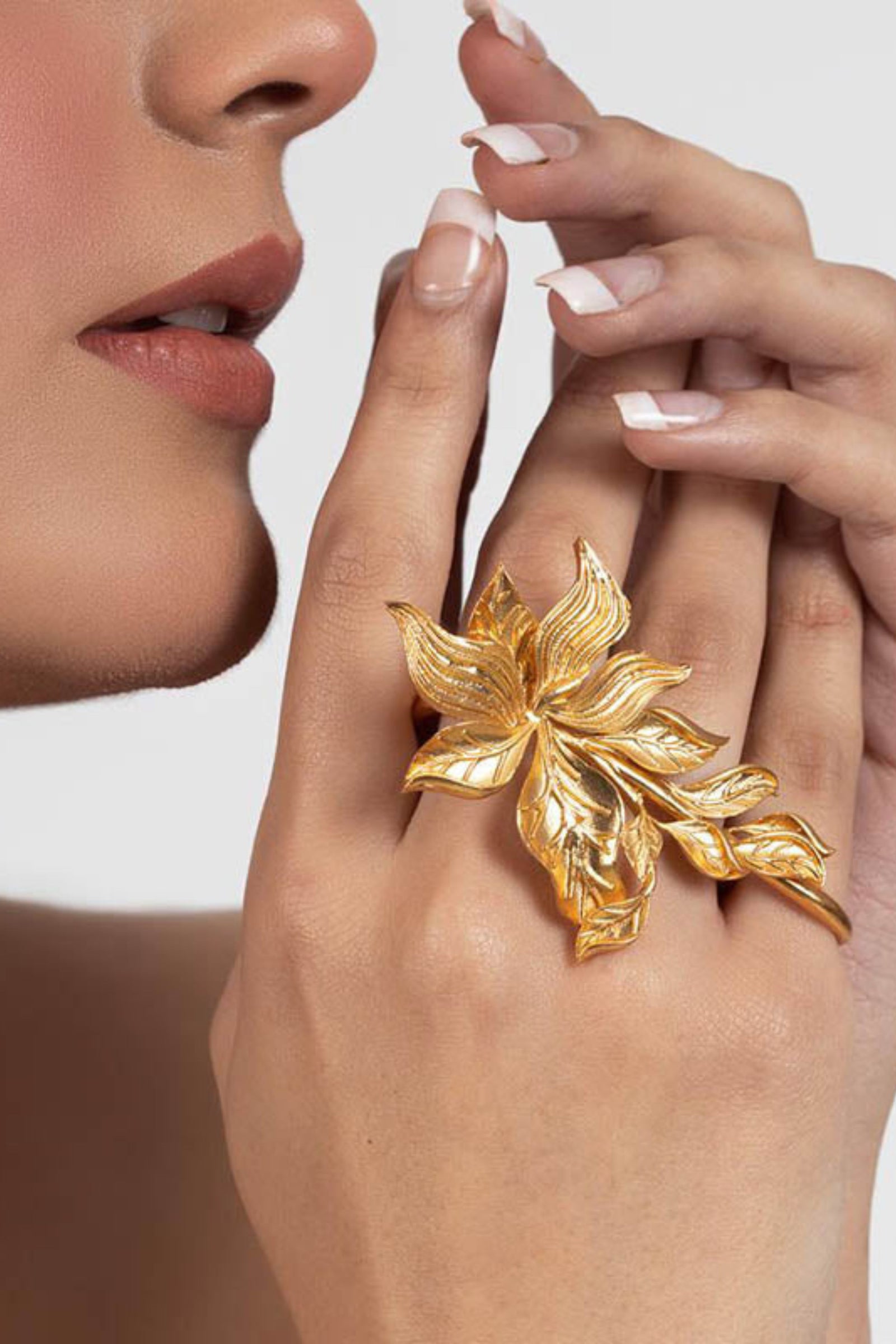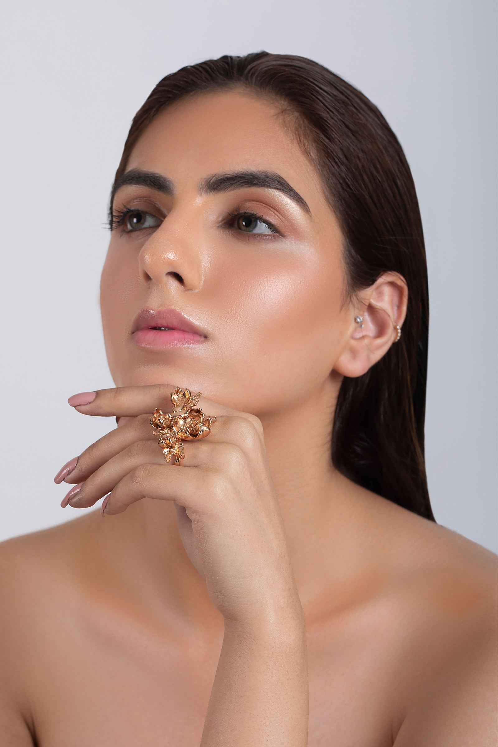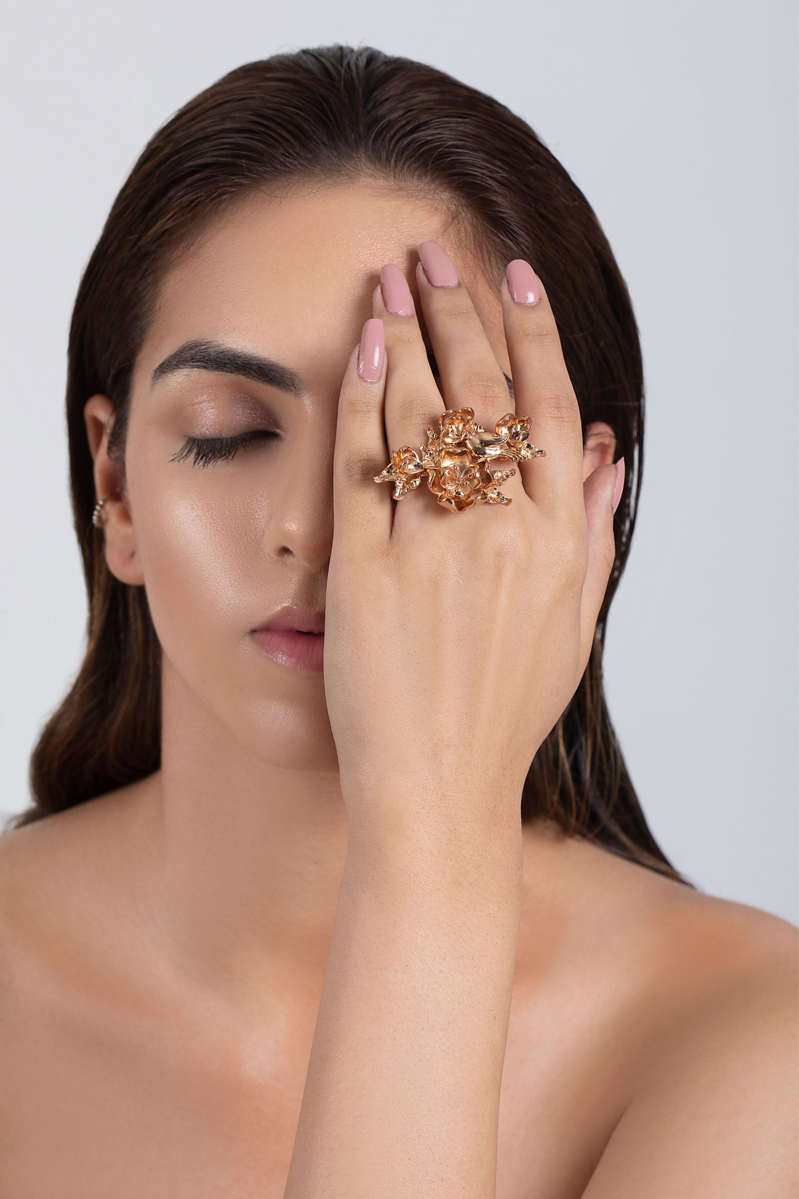 • Featuring a handcrafted floral necklace in rose gold finish on base metal.