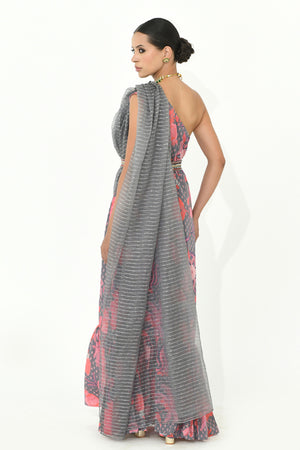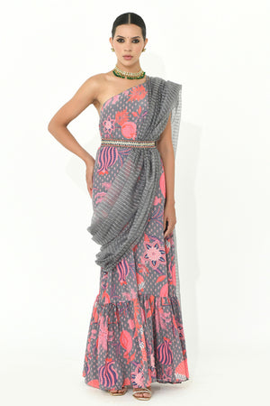 • Dress with a gathered hem and an accent drape dupatta, belted