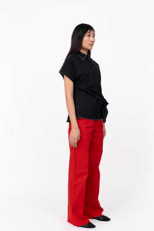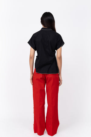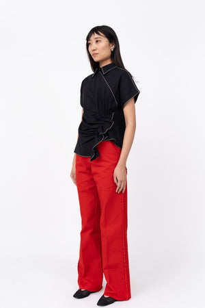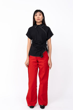 • This top is cut in 100% cotton poplin featuring an asymmetrical design detail at the front and at the hemlne. With a half placket opening at the front, highlighted with embroidry details at the cuff and the collar. Model wear size s model height is 5'10 garment length is 27''