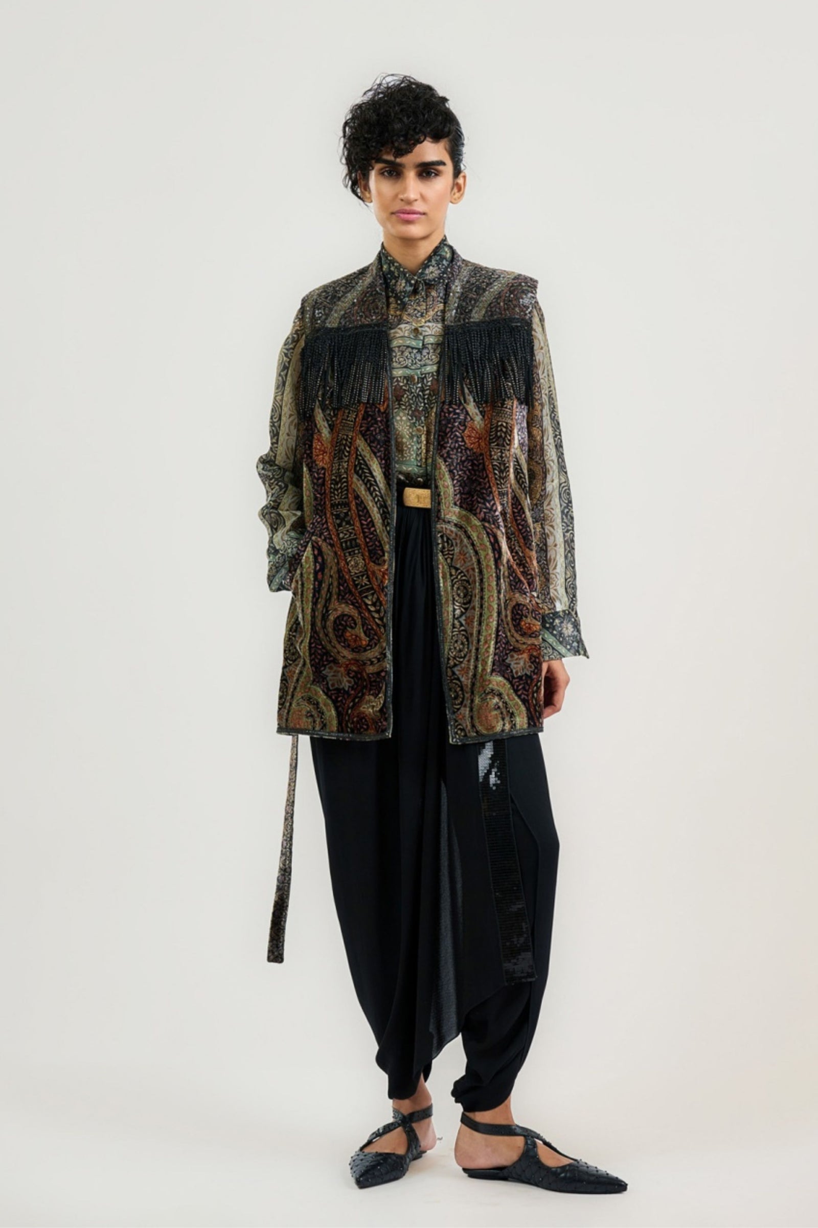 Care: Dry Clean Only. As garments are handmade and handwoven, natural variations in colours and weaves are a characteristic of the textile, and may be found in the finished garments as well.