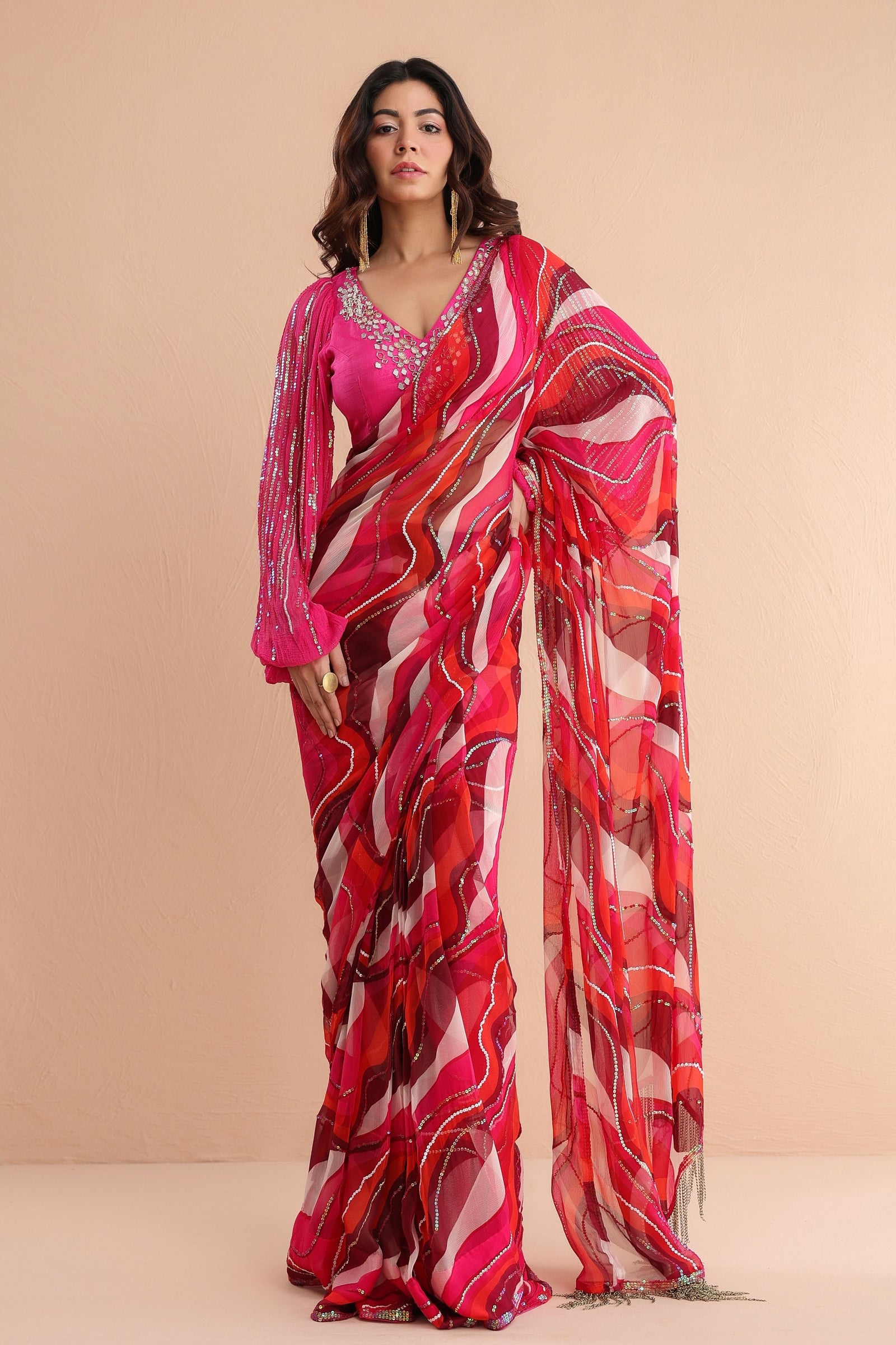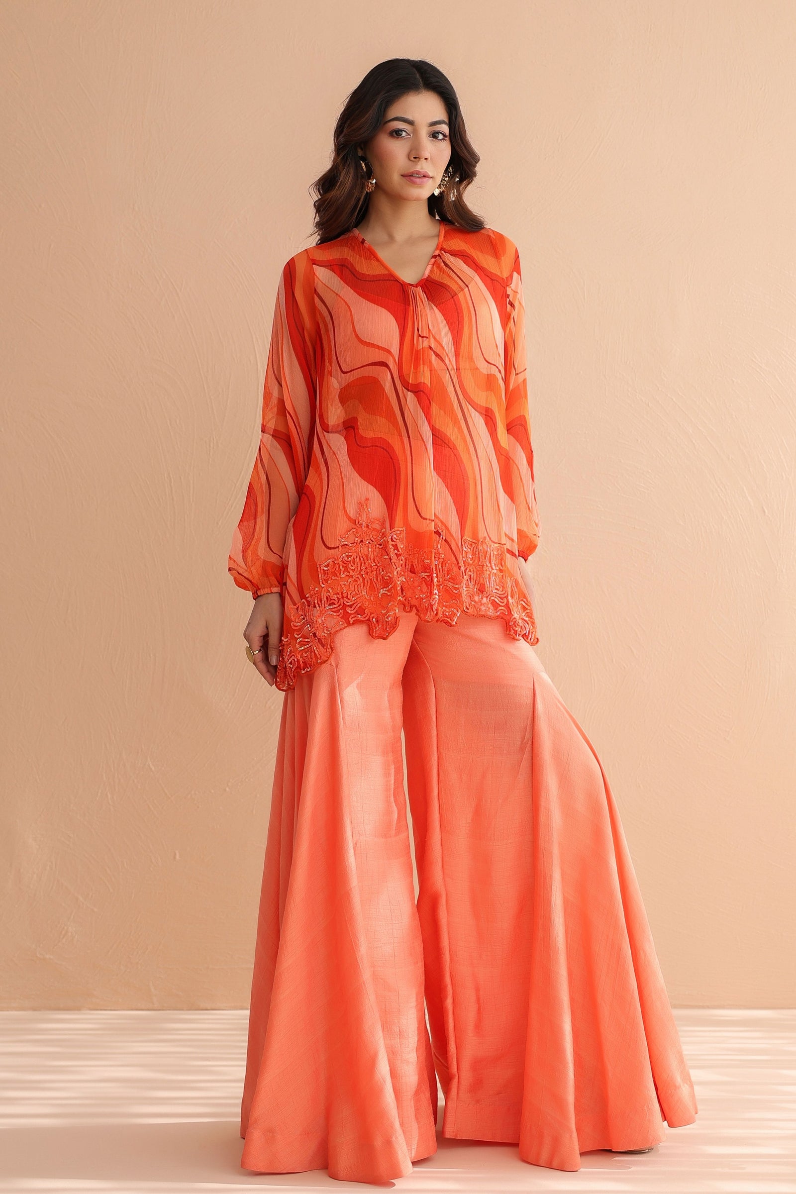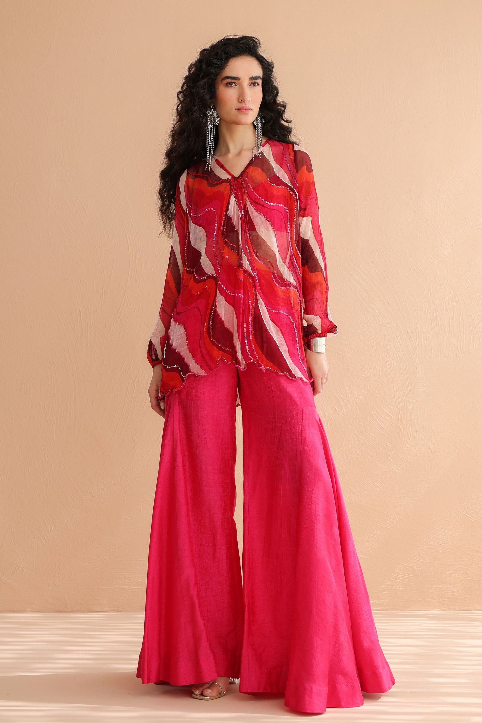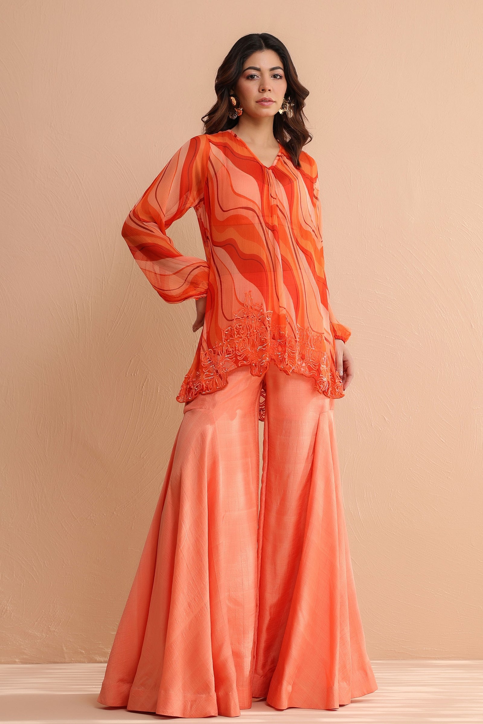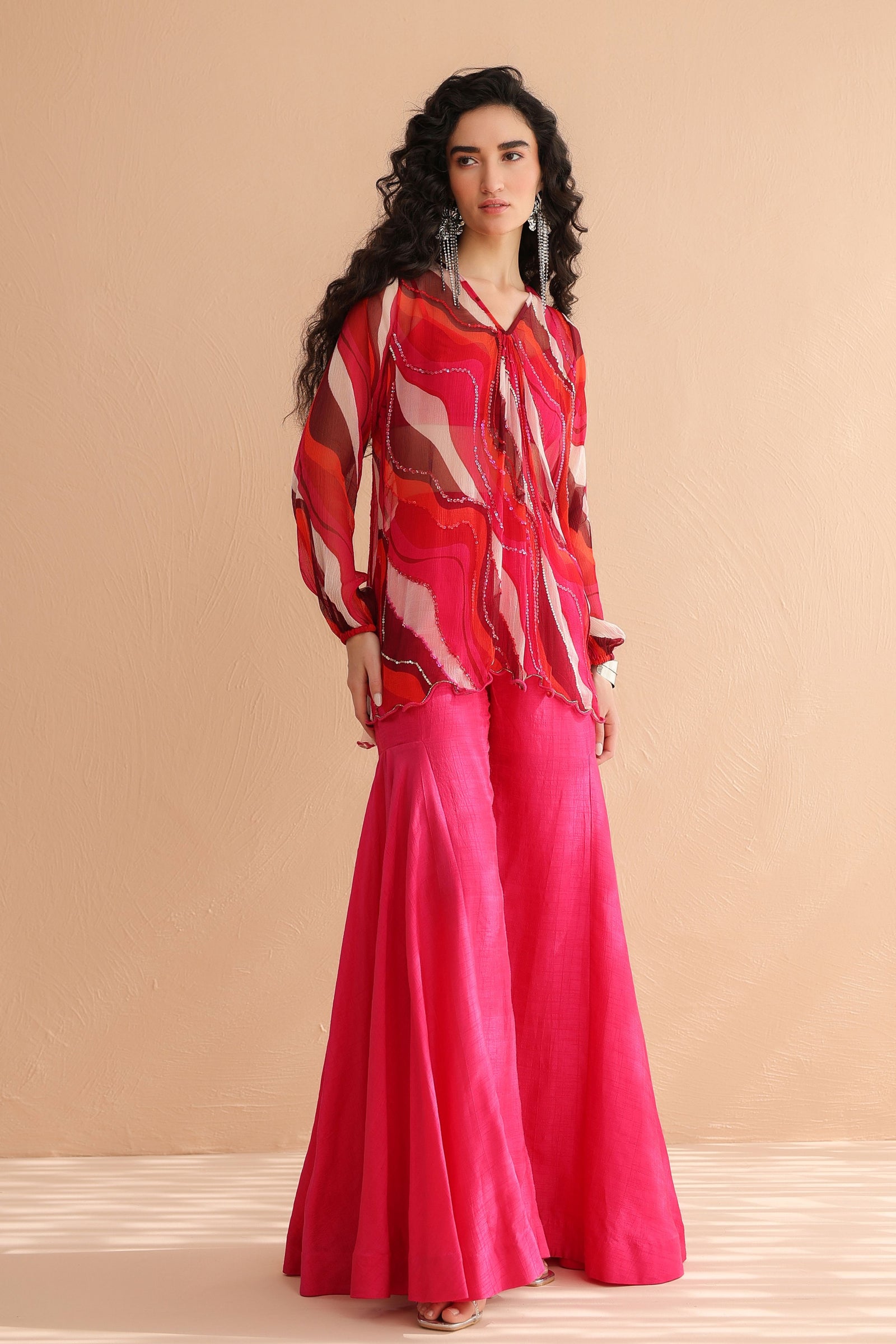 • Fabric: Tunic- Chiffon, Sharara- Silk, Dupatta- Chiffon