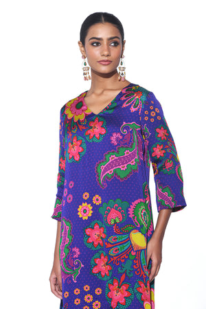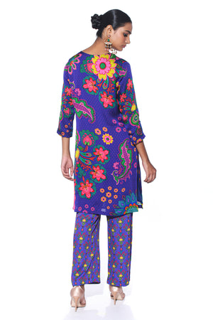 • Twilight blue sb signature over sized paisely print kurta paired with matching pants, coordset.