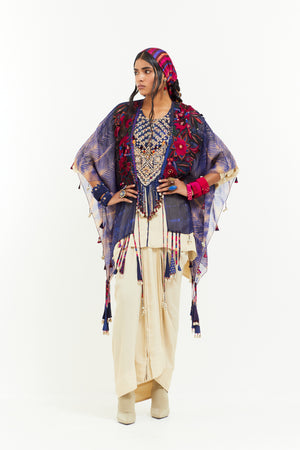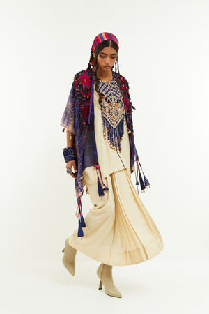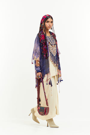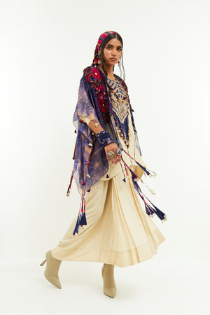 • Dupatta Jacket Detailed With Lace Cutwork embroidery Type - Bead Work Highlighted Yoke With Antique Gungroo jacket Length- 27.5" Front, 31.5" Back note - Slight Variation In Print