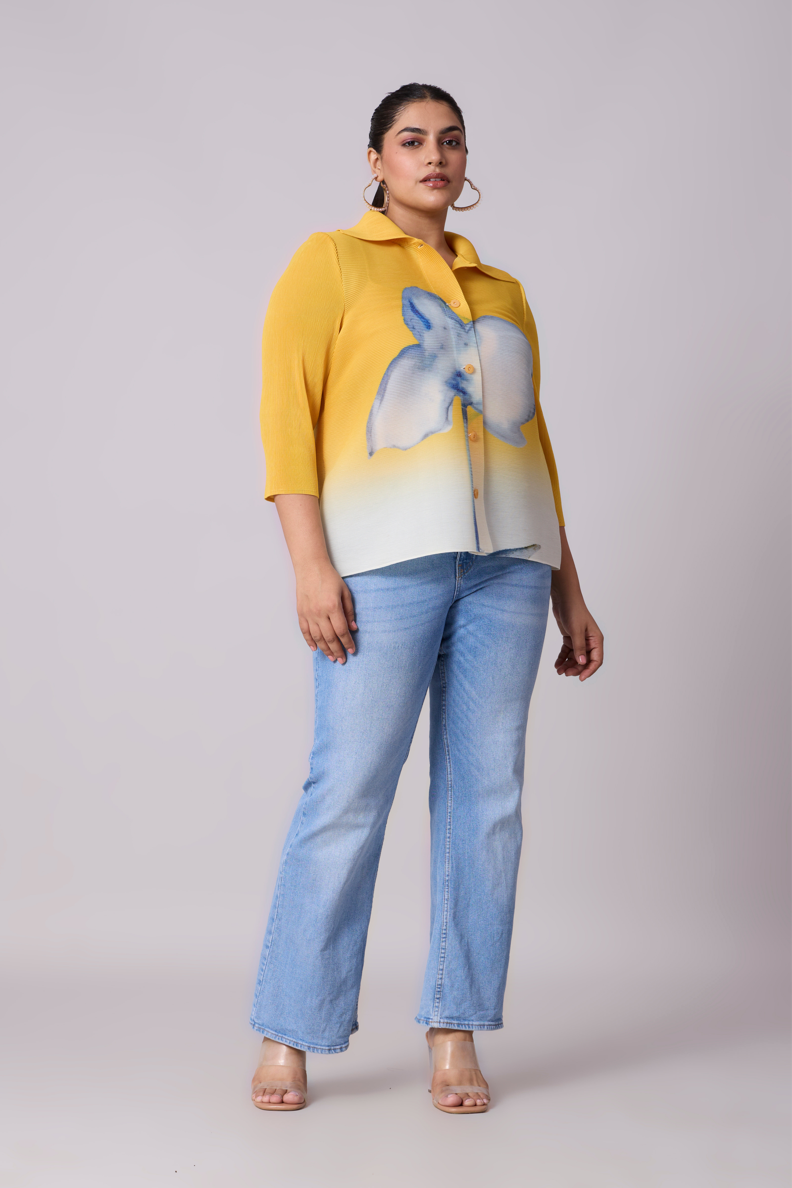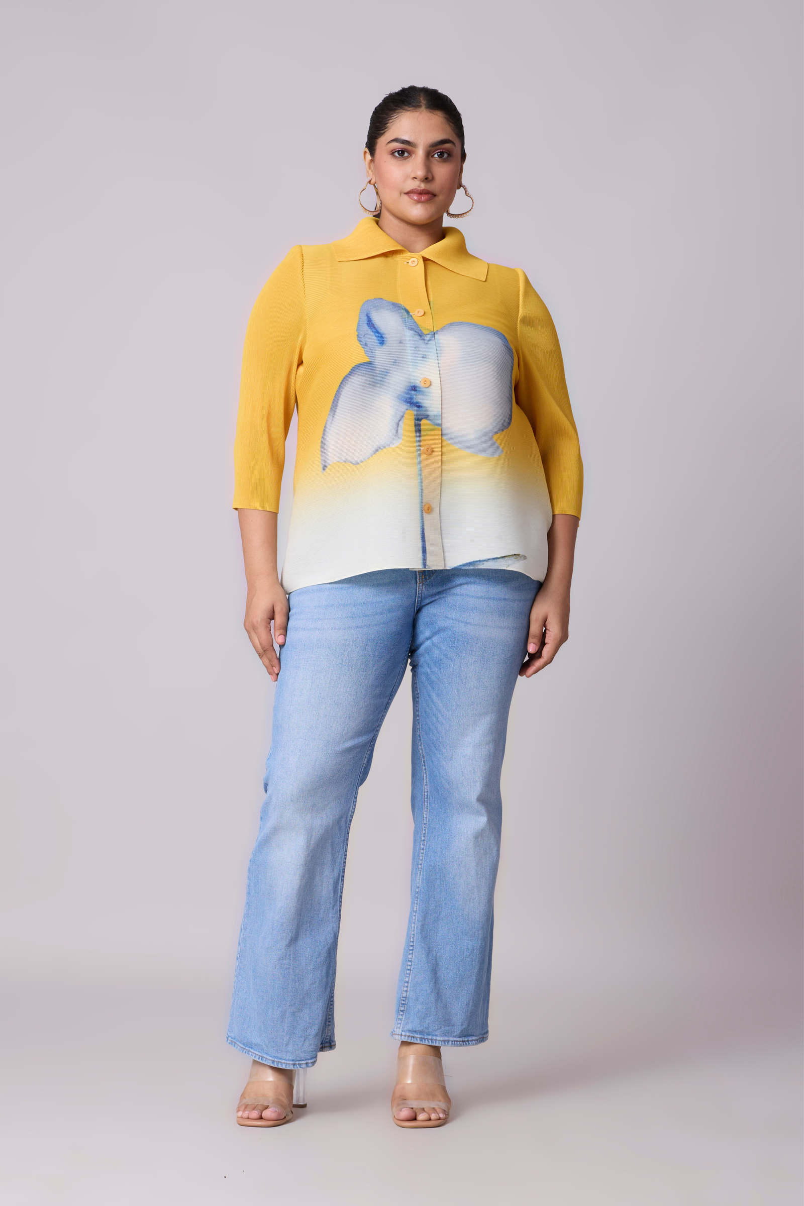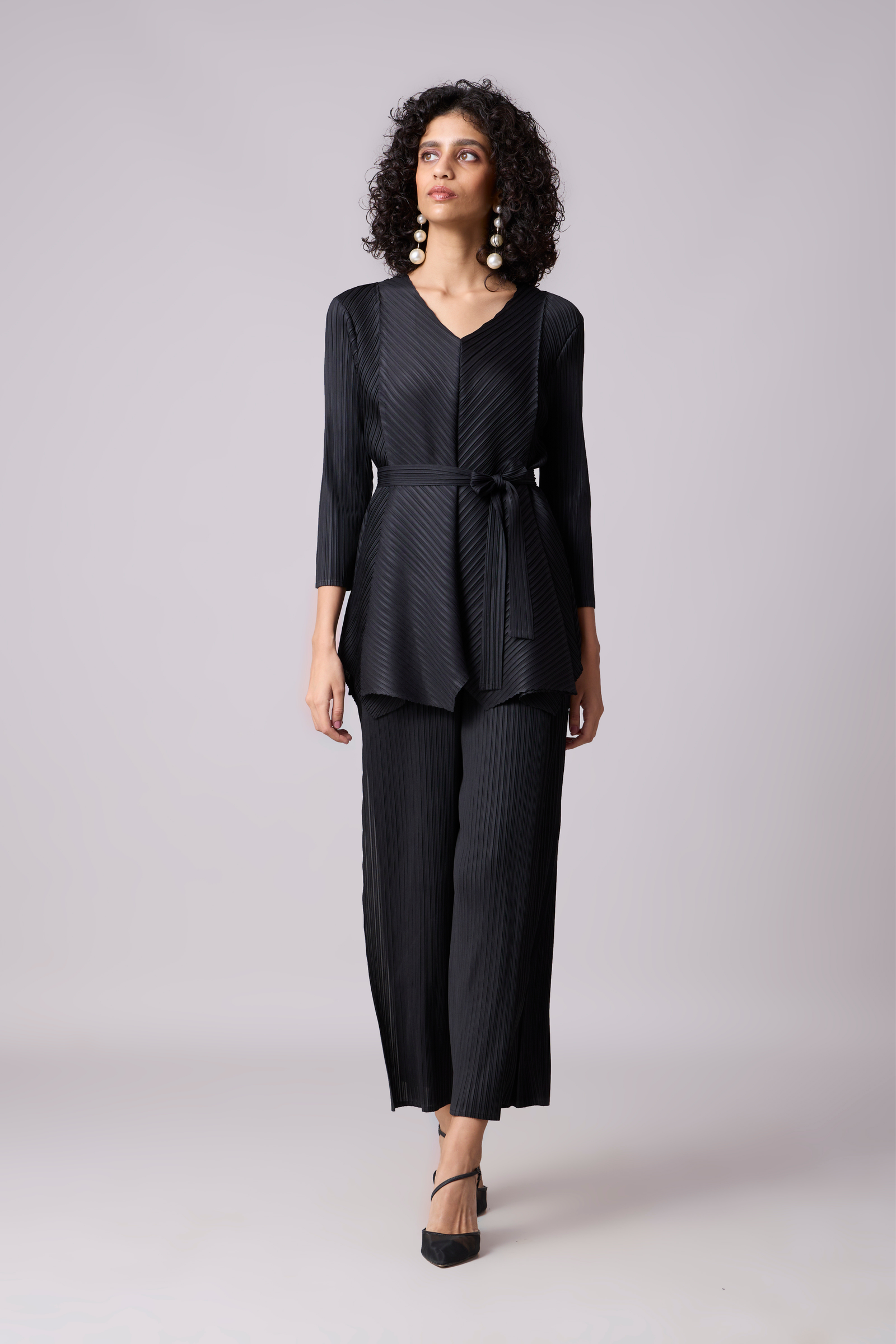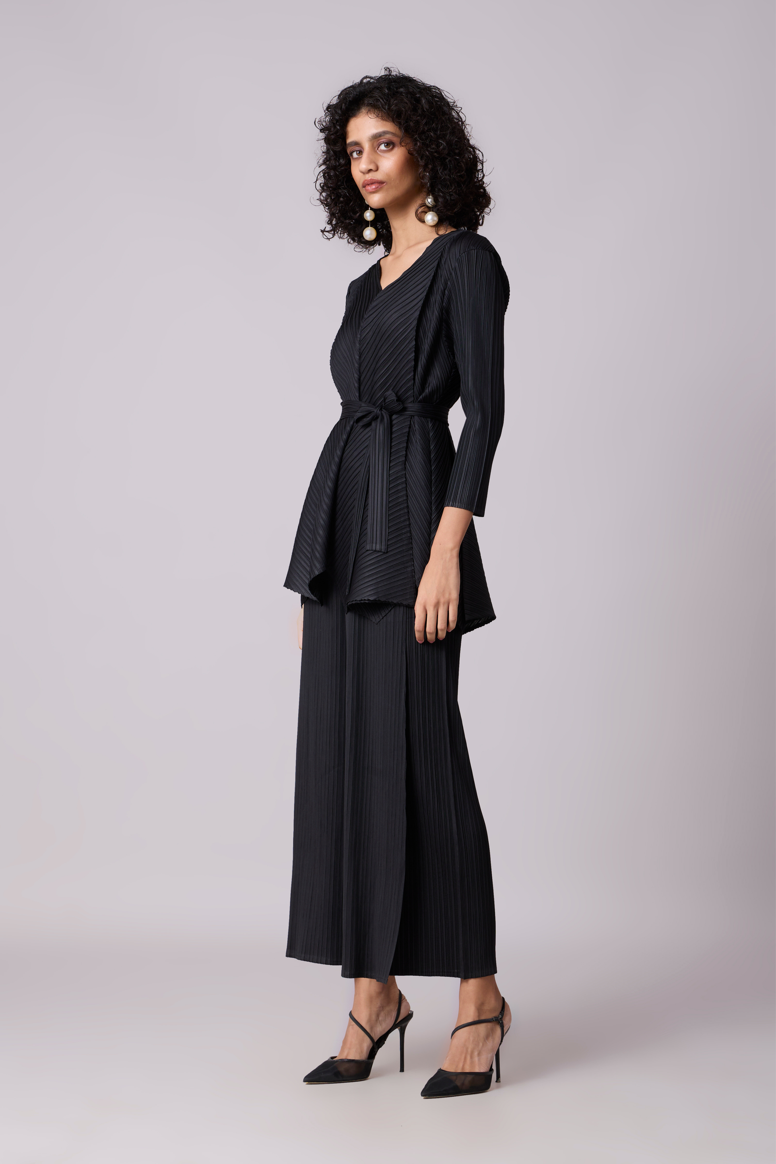 • A vertical pleated shift dress with tulip cut at bottom. Length of Dress - 47 inches. Free size (one size fits all). Fits S to XL.