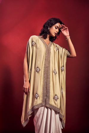 • Contemporarize Your Ethnic Closet With This Super Chic And Playful Kaftan Set. Classic Kaftan Set Adorned With Delicate Dori And Zardozi Embroidery Paired With A Contrasting Draped Skirt.