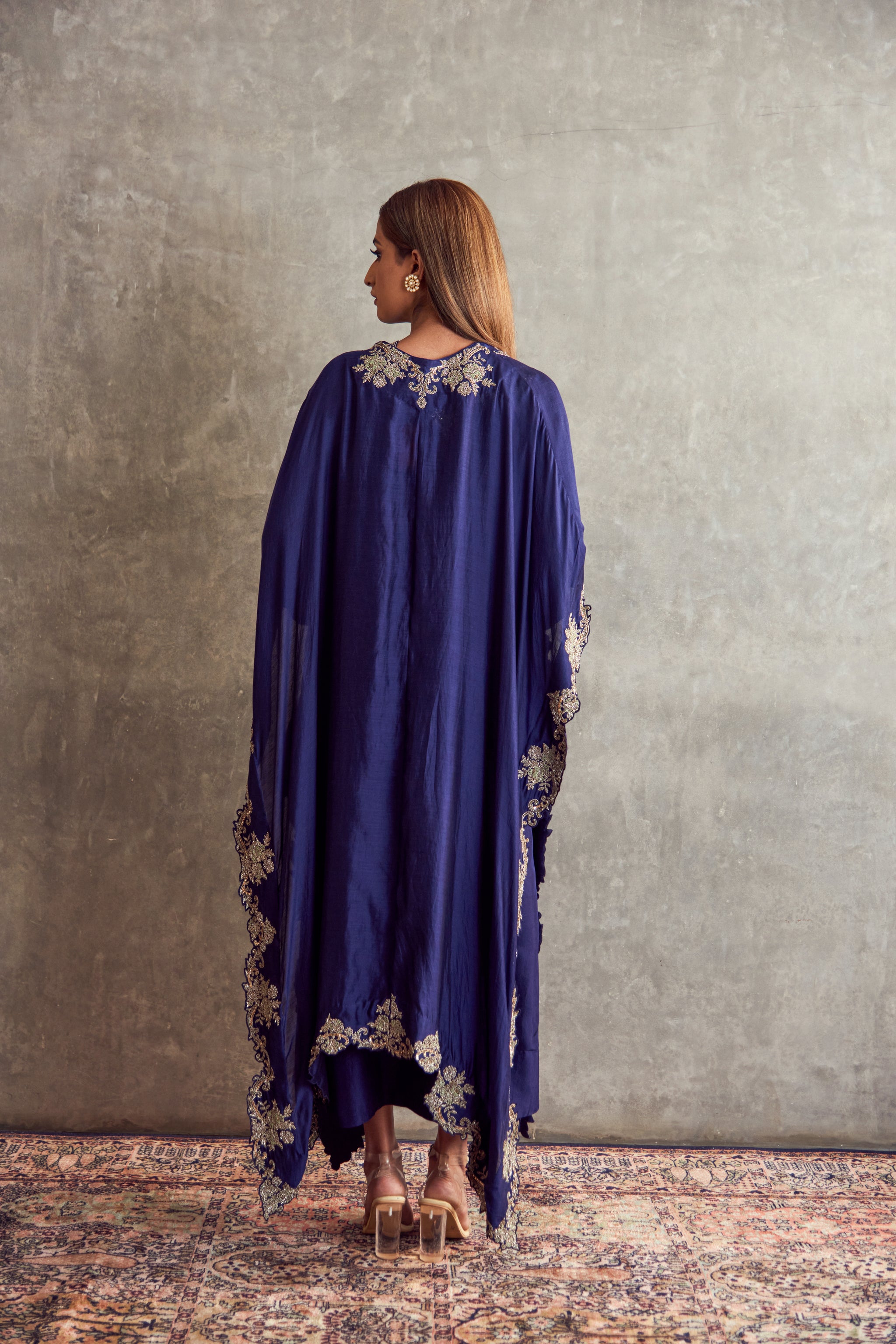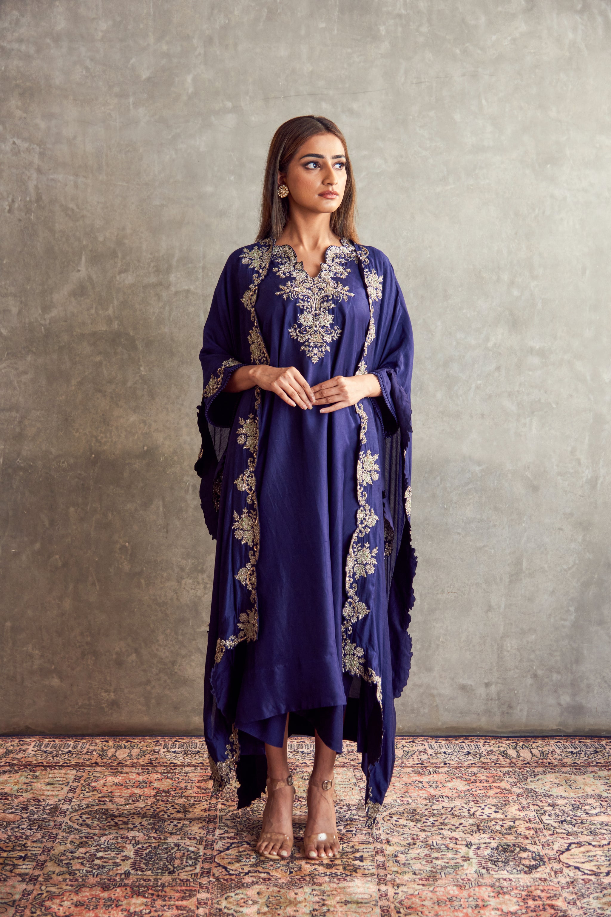 • Purple embroidered kaftan paired with an embroidered dupatta