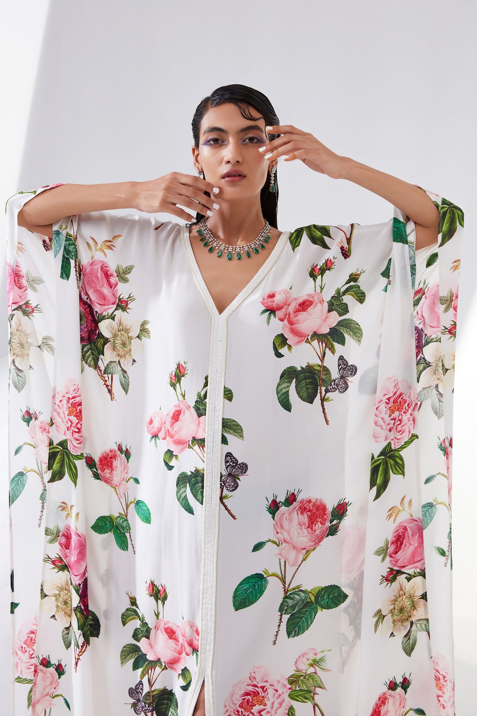 Rose Floral Dress with Cape