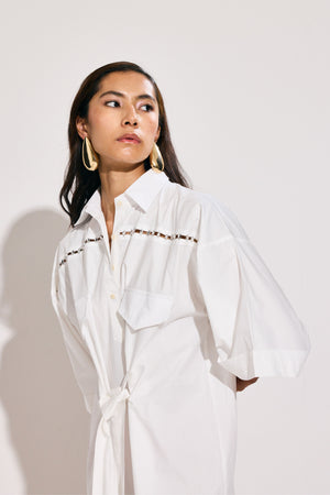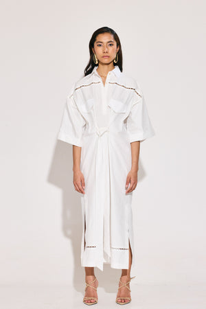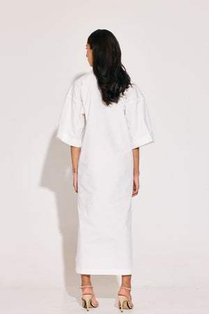 • Boxy kaftaan with detatchable belt and embroidey detailing