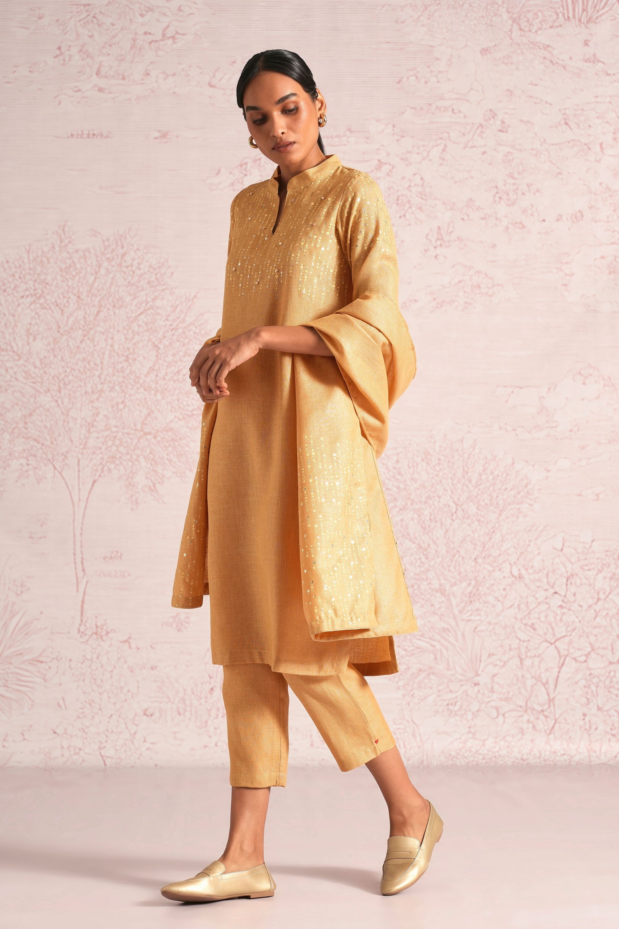 Care: Dry Clean Only. As garments are handmade and handwoven, natural variations in colours and weaves are a characteristic of the textile, and may be found in the finished garments as well.