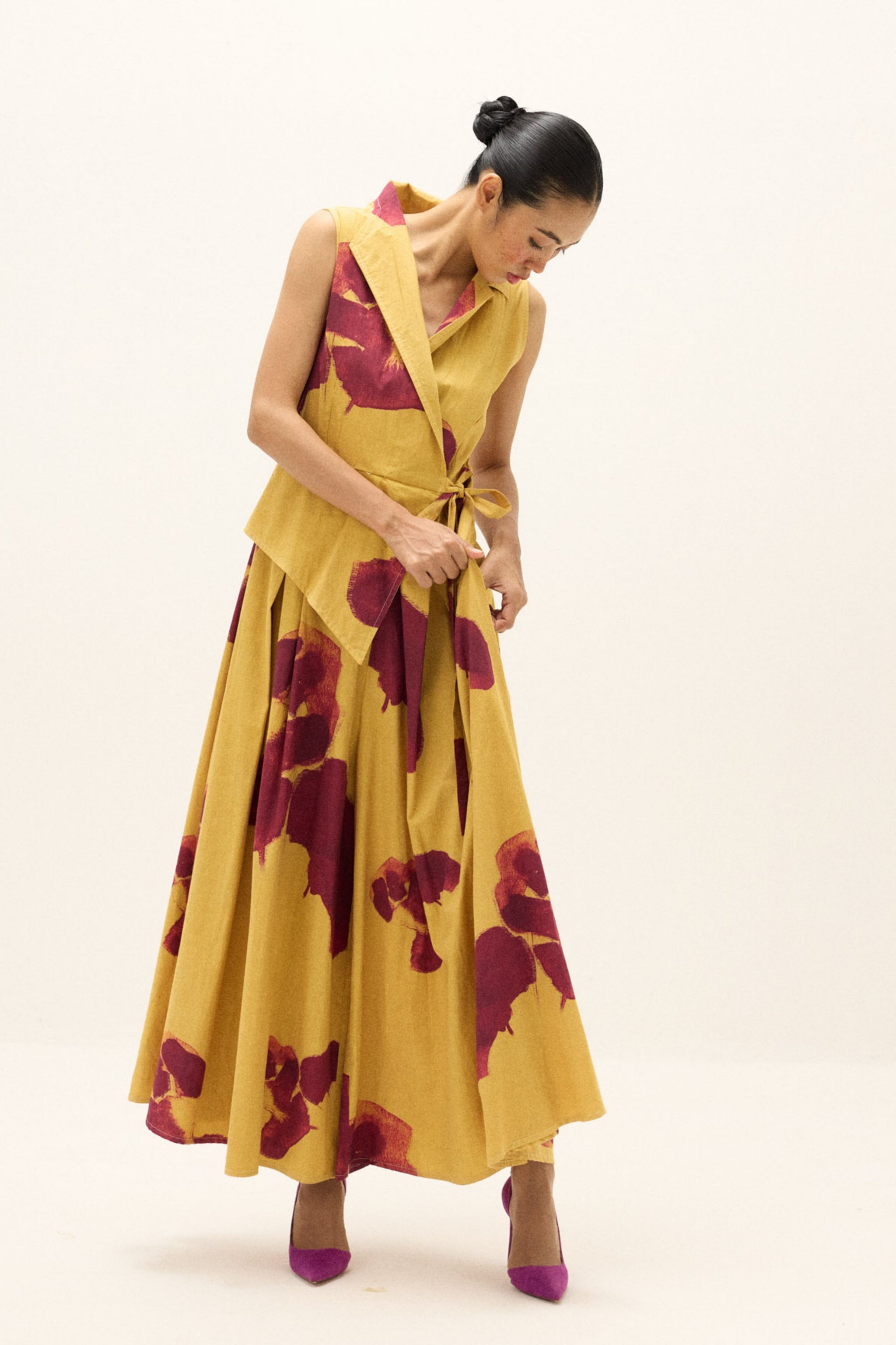 Care: Dry Clean Only. As garments are handmade and handwoven, natural variations in colours and weaves are a characteristic of the textile, and may be found in the finished garments as well.