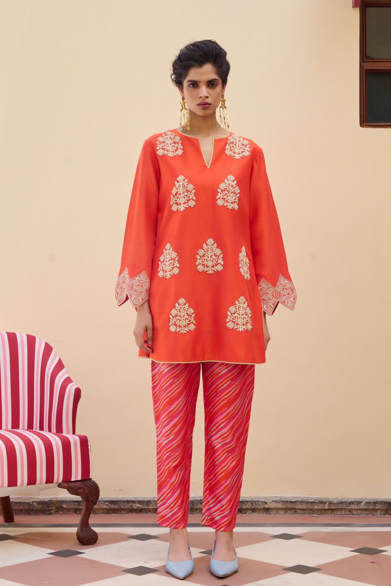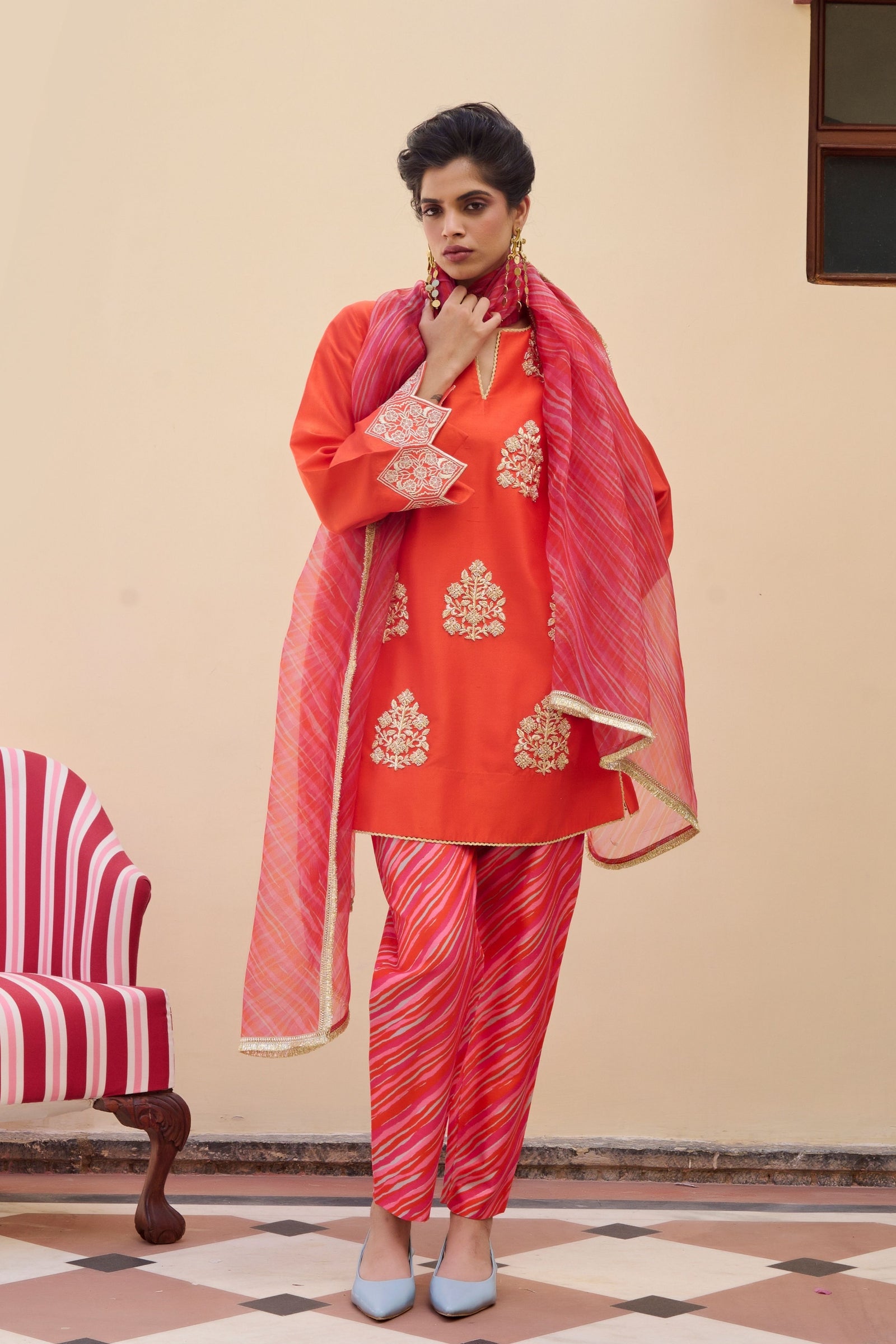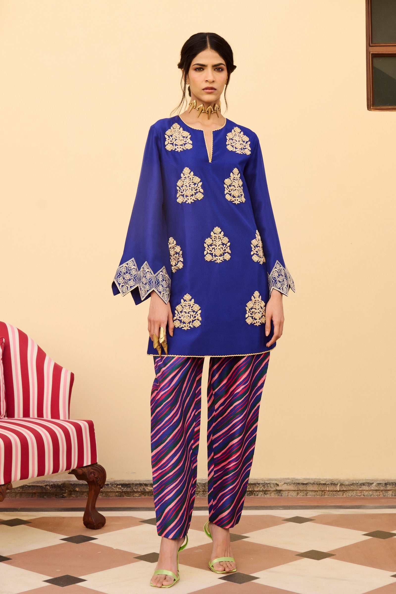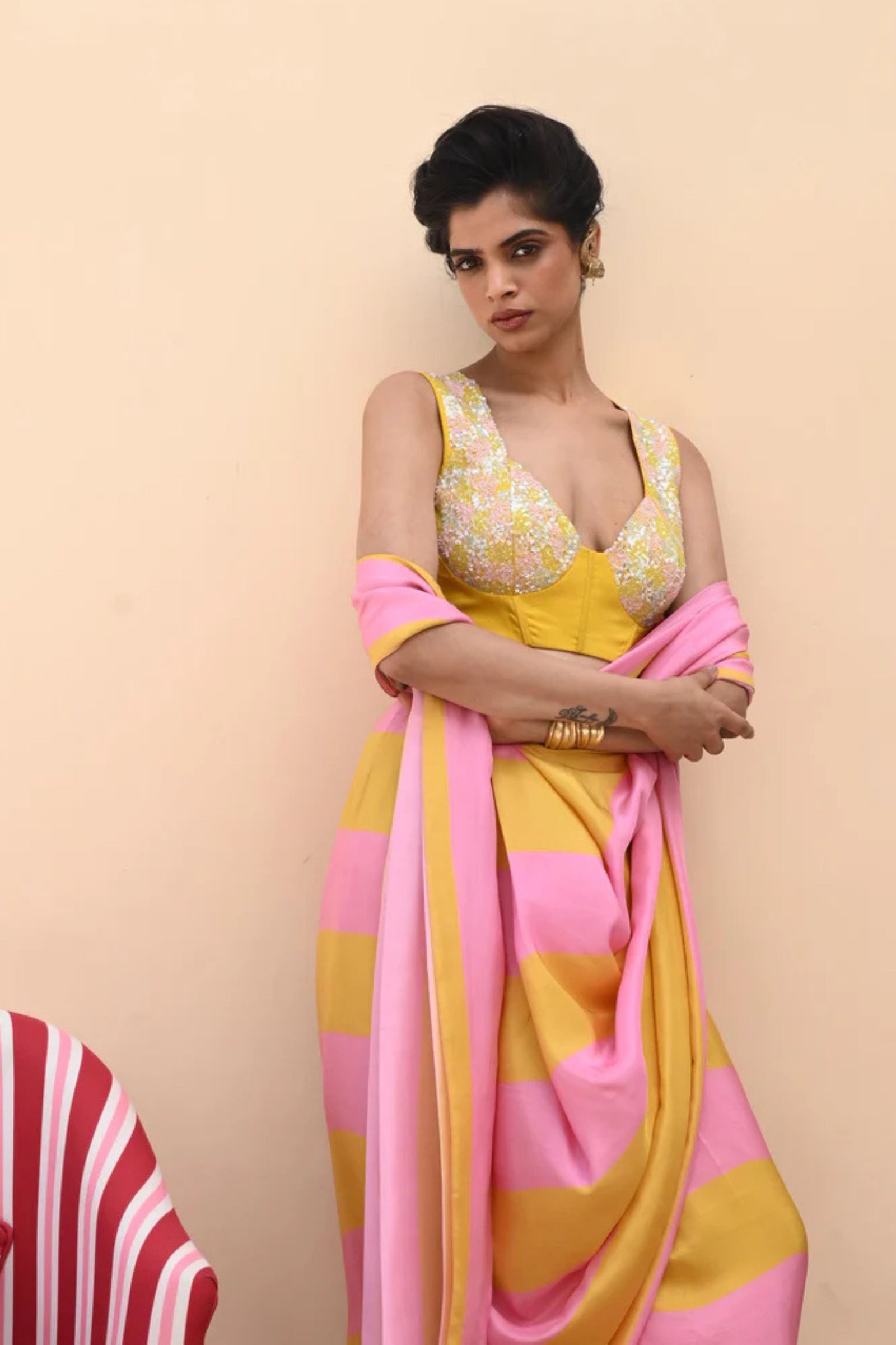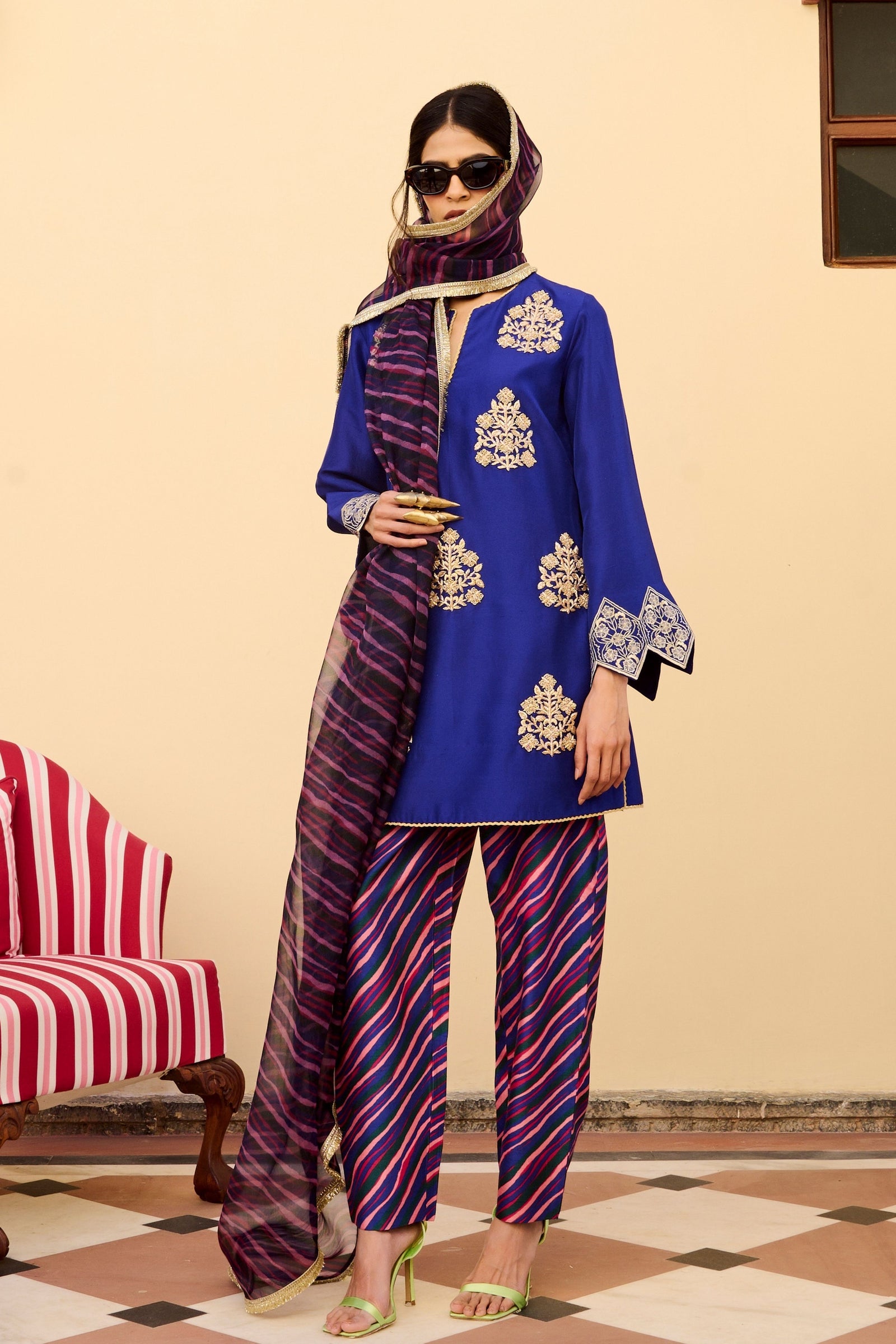 • Our exquisite pink jacket sharara set features delicate Paisley motifs, elegantly highlighted with intricate zardozi and sequins embroidery. This luxurious design blends traditional artistry with modern elegance, creating a captivating statement piece. Paired effortlessly with a flared sharara, this ensemble is perfect for festive occasions and celebrations.