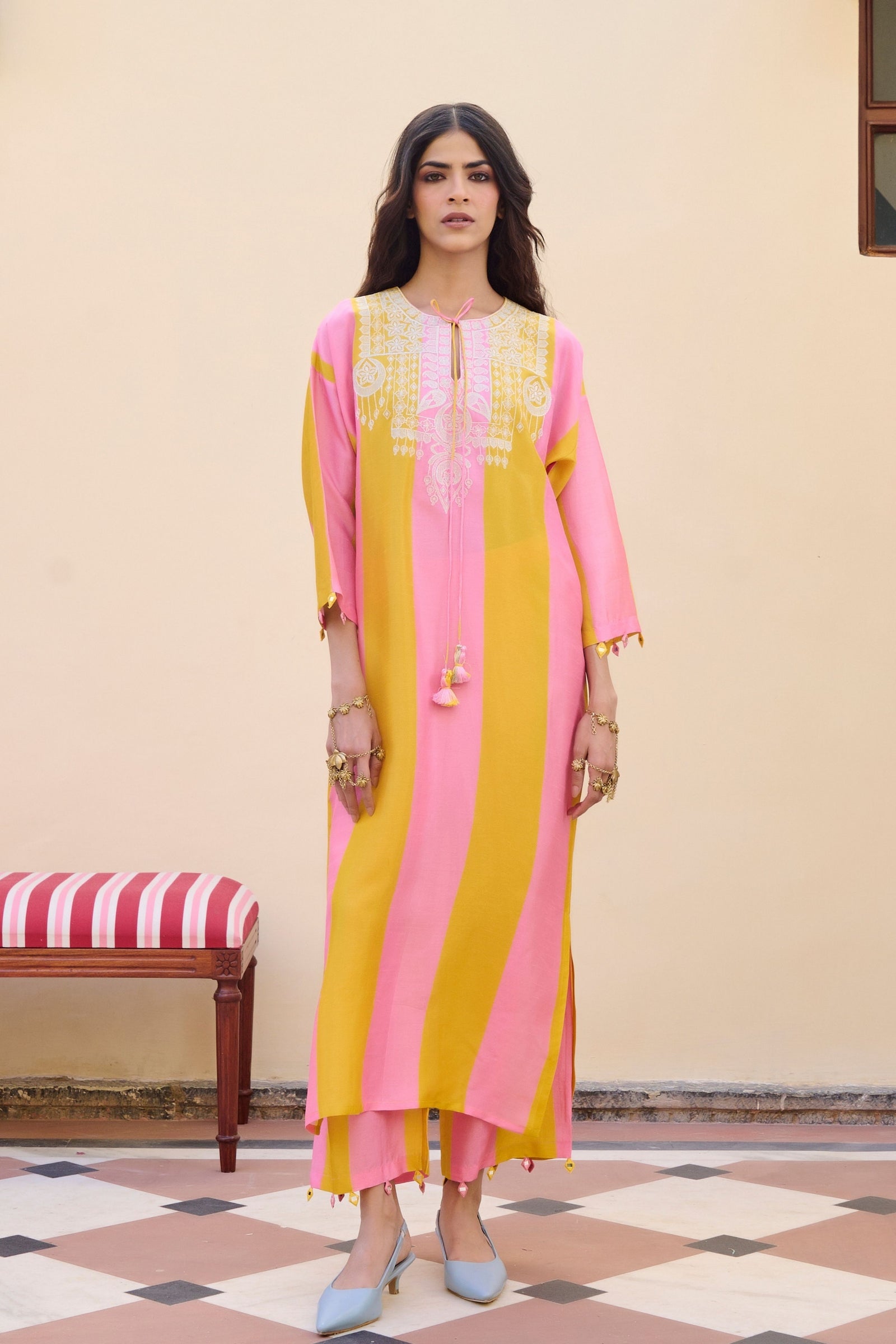Care: Dry Clean Only. As garments are handmade and handwoven, natural variations in colours and weaves are a characteristic of the textile, and may be found in the finished garments as well.