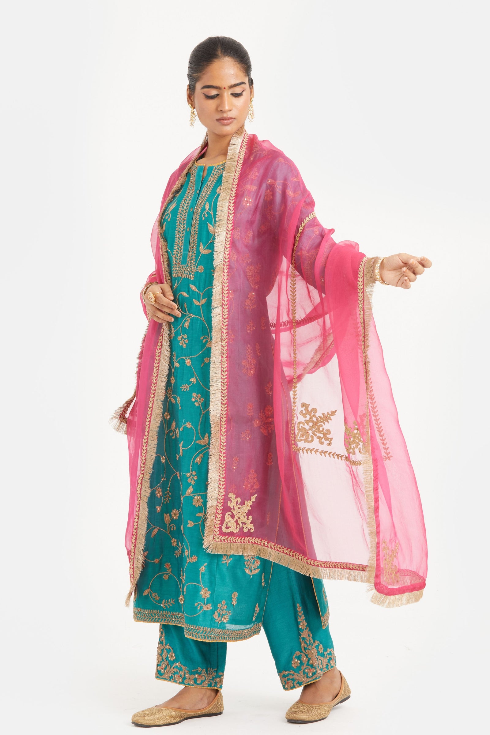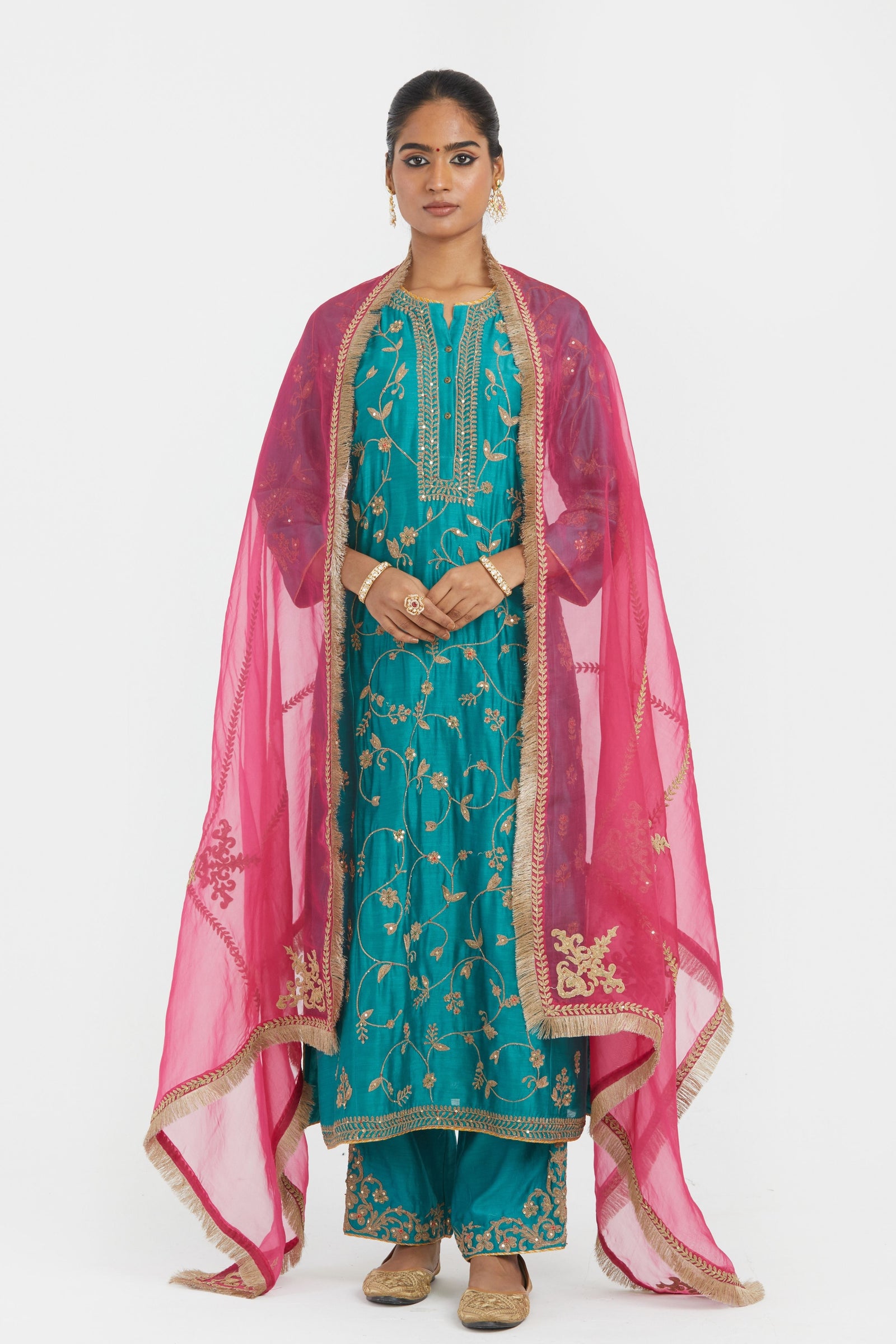 • Fabric: Kurta - Silk Chanderi, Lehenga - Silk Chanderi, Dupatta - Silk Organza