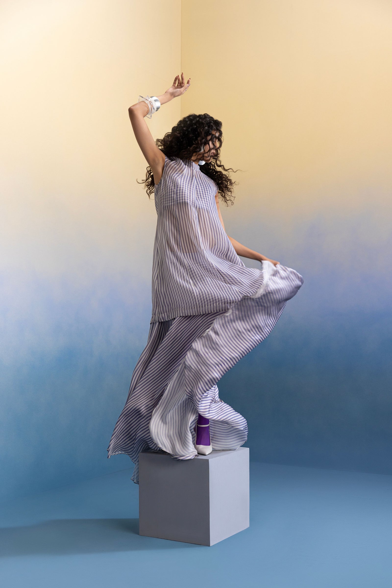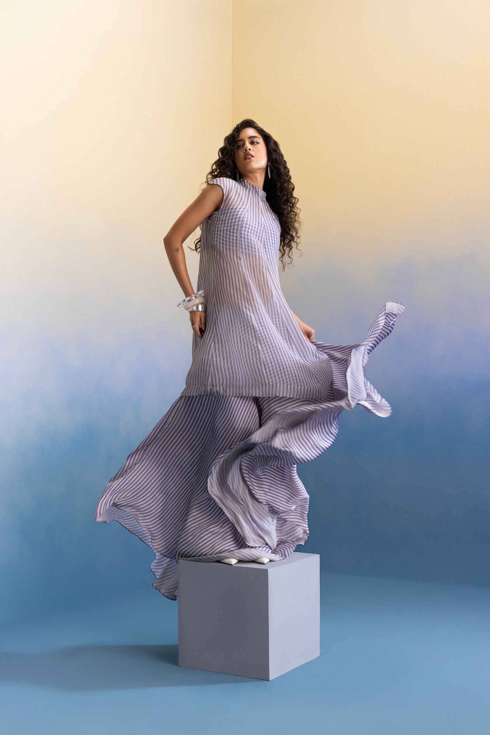 Care: Dry Clean Only. As garments are handmade and handwoven, natural variations in colours and weaves are a characteristic of the textile, and may be found in the finished garments as well.