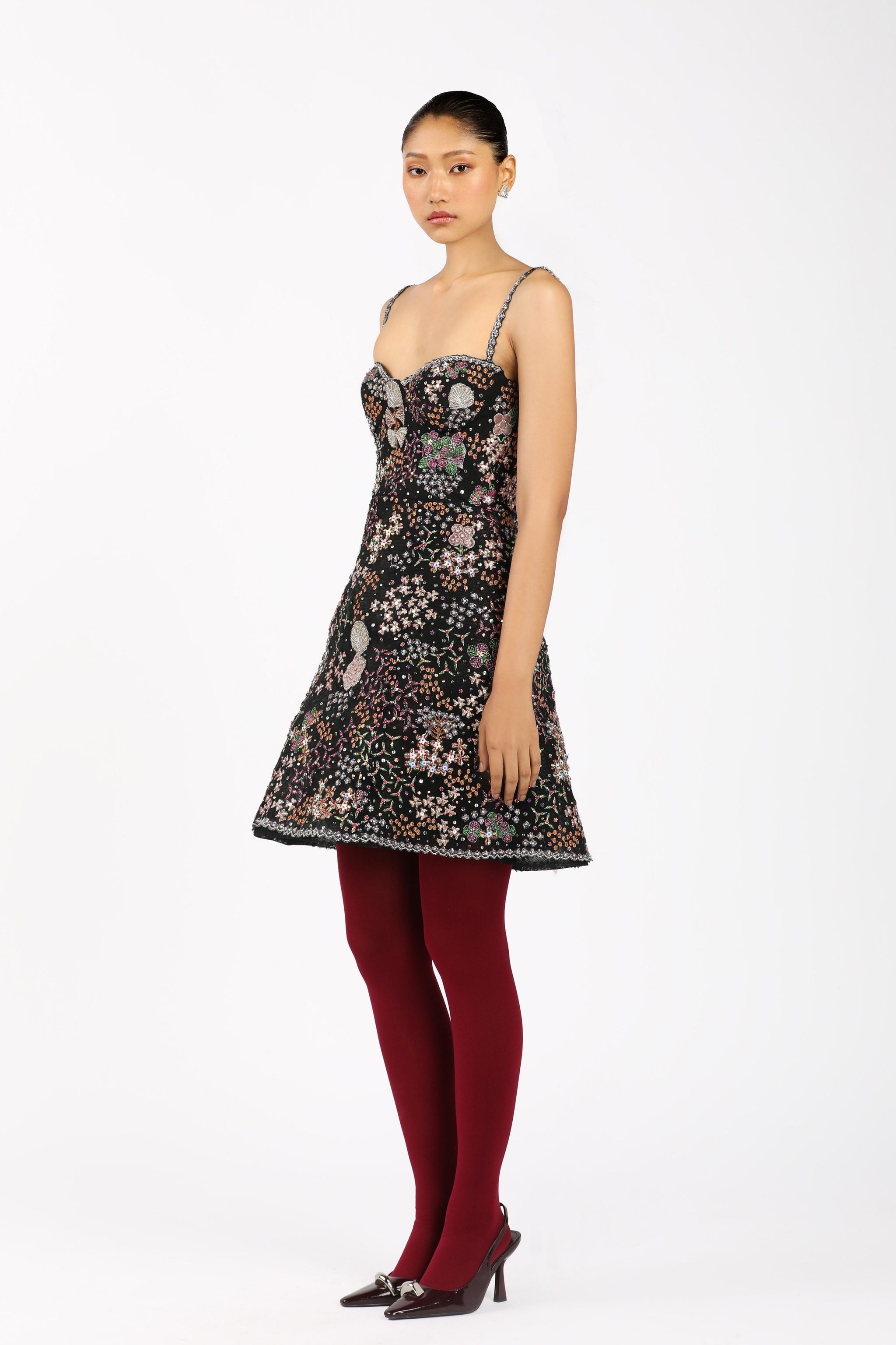 • Matilda black applique embellished tulle baby doll dress