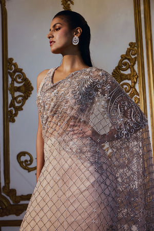 Grid Saree Set
