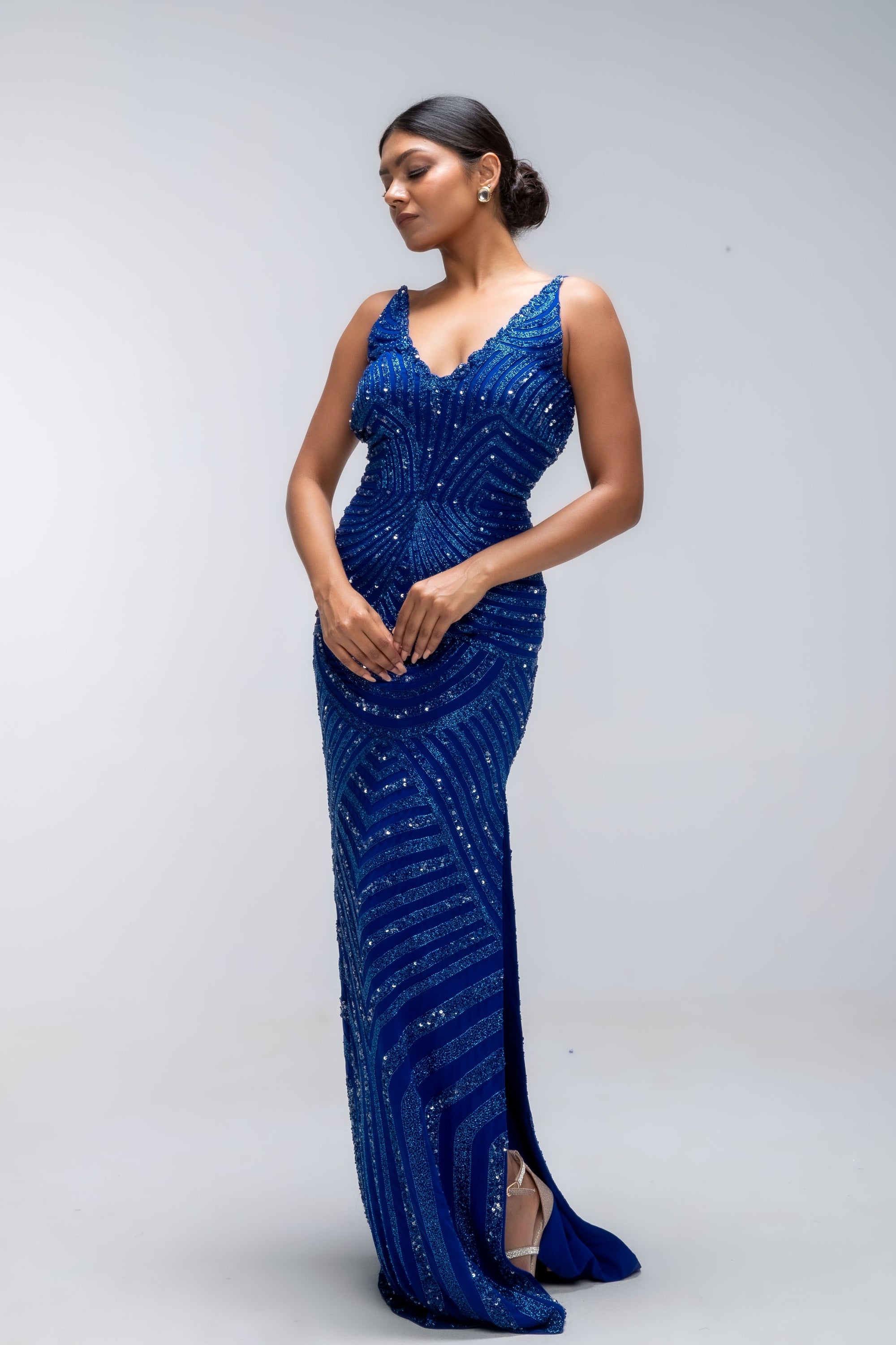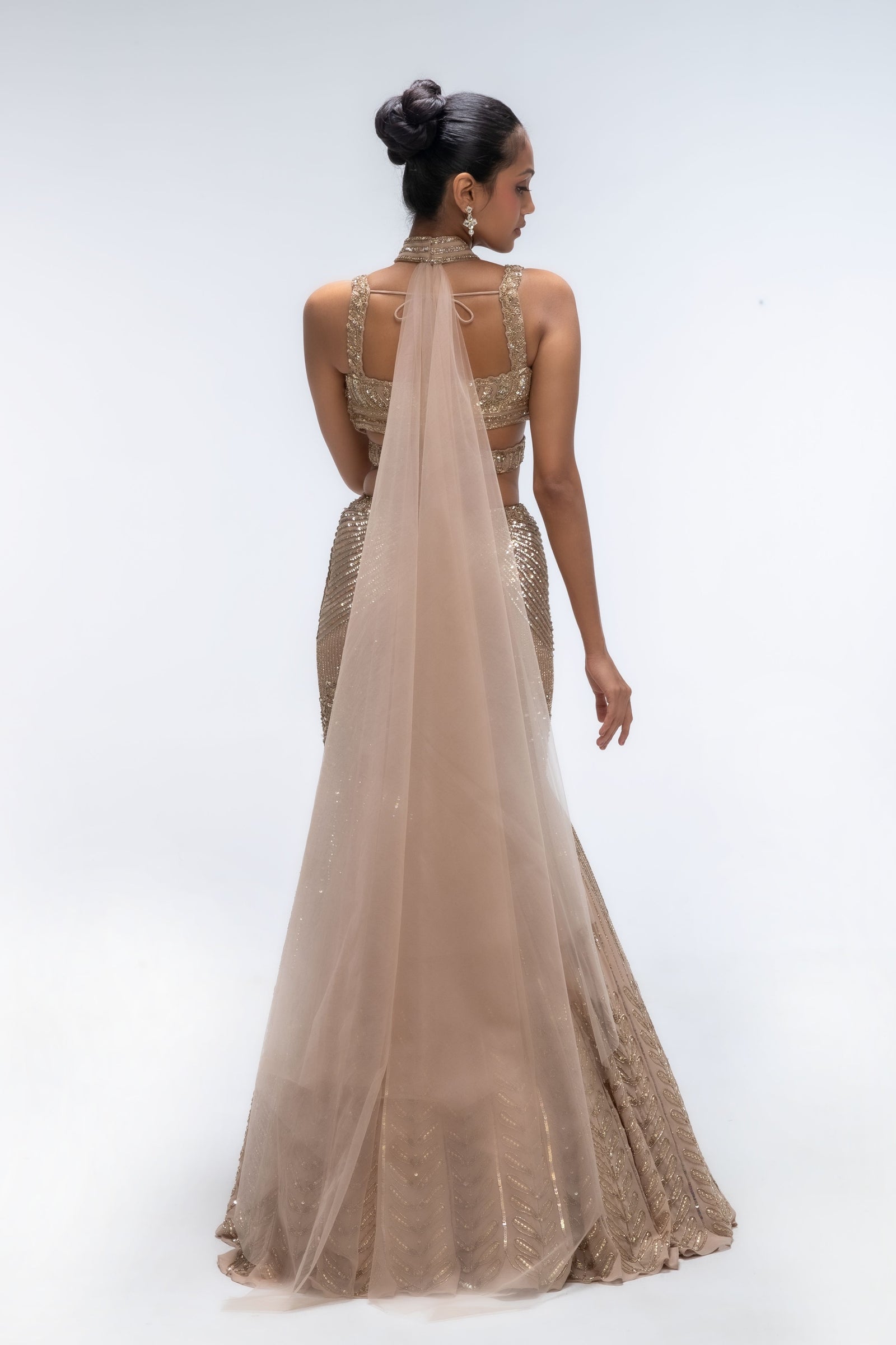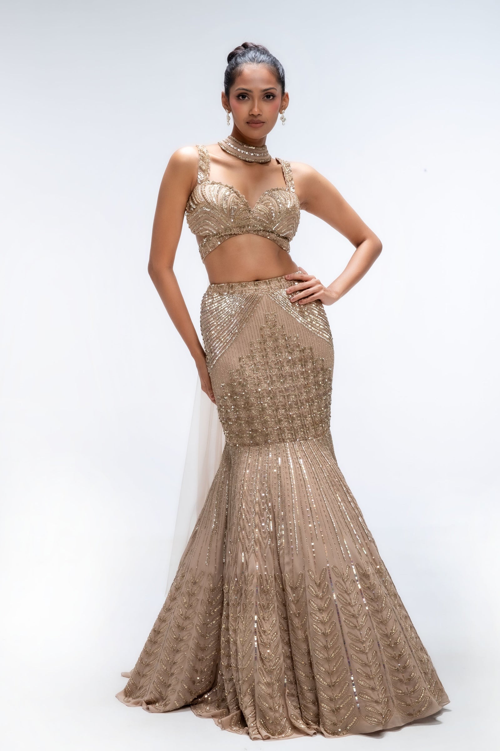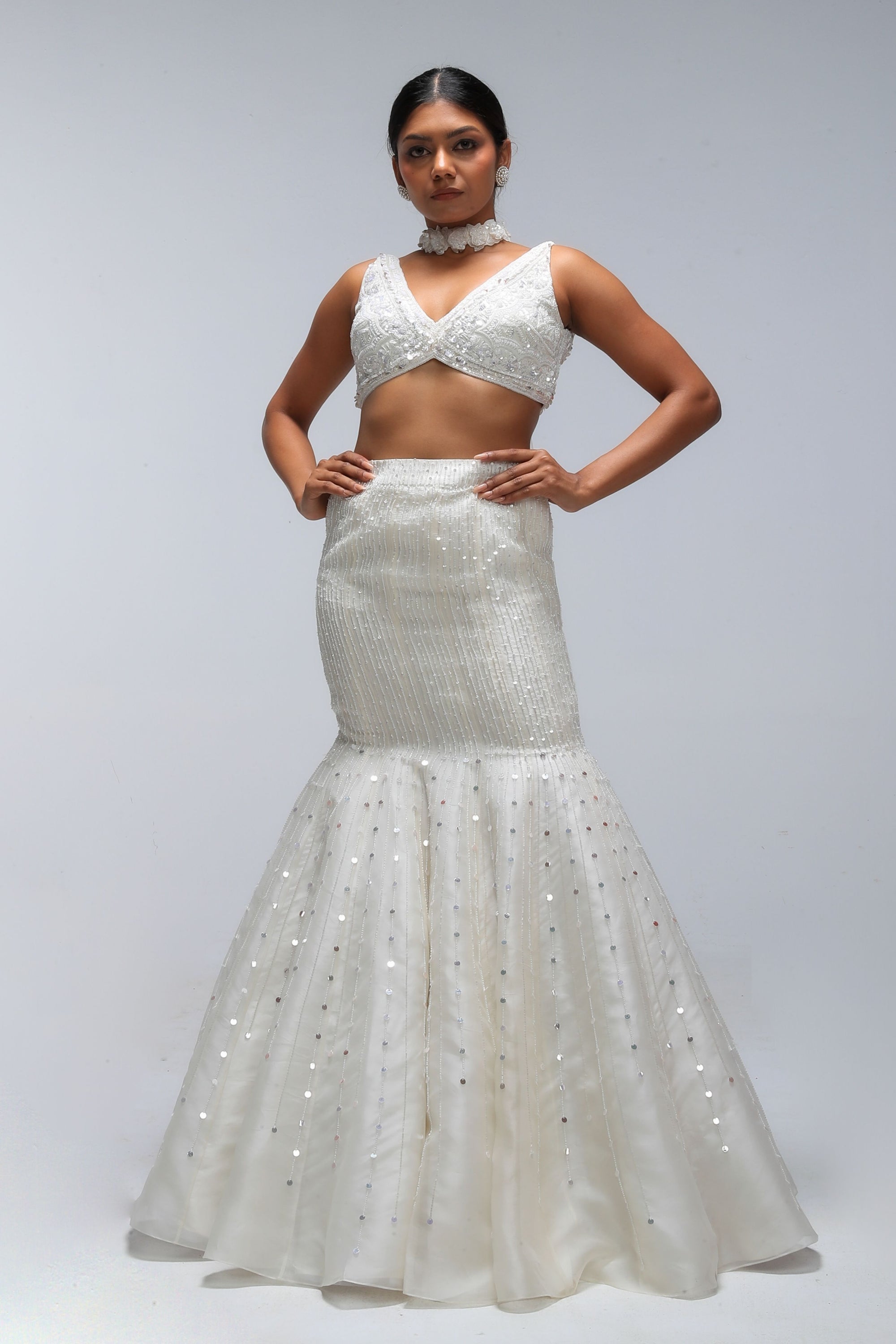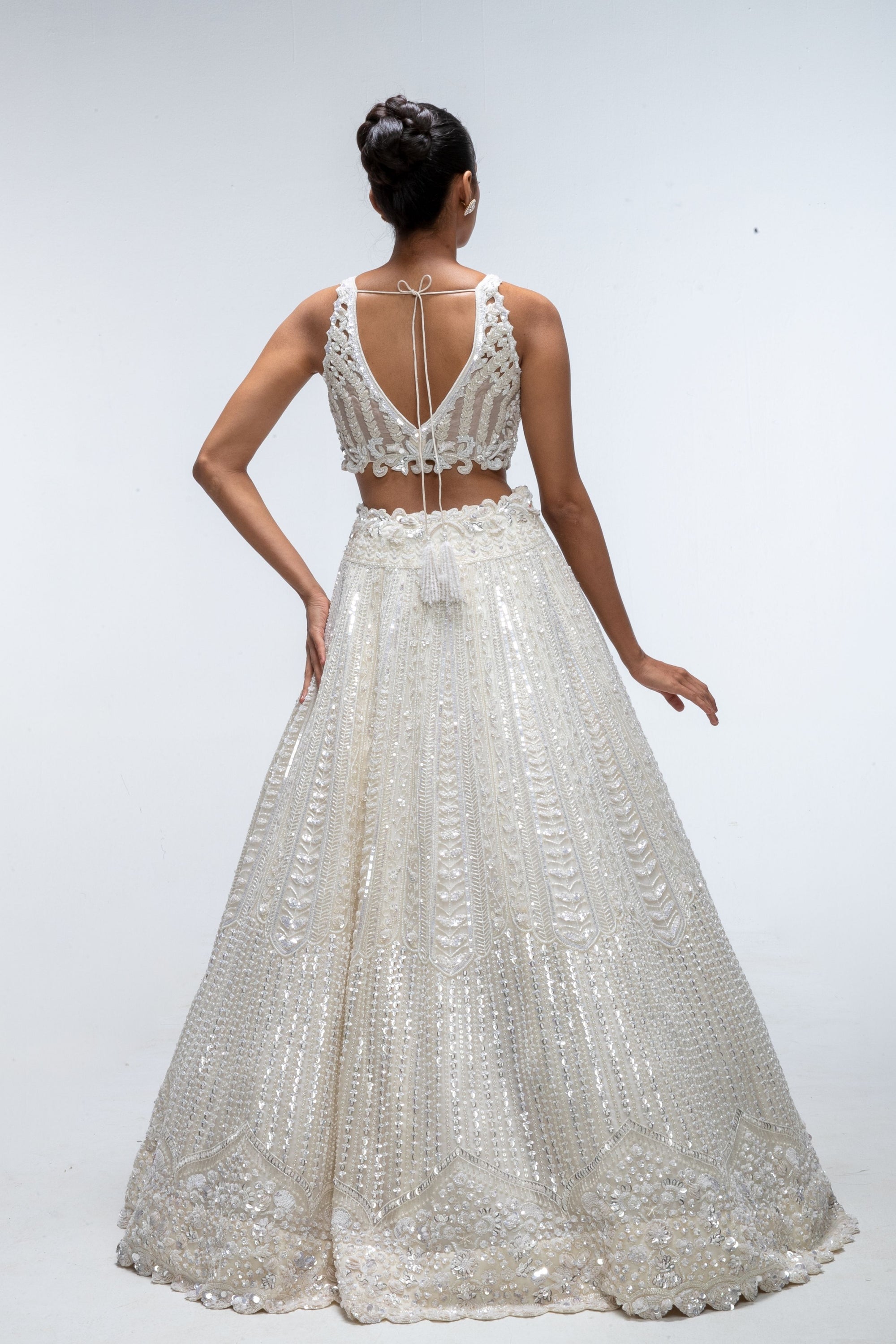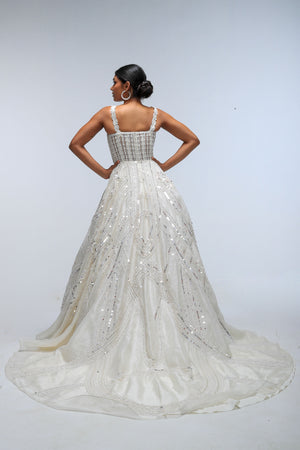 • Diamond ivory embellished corset gown.
