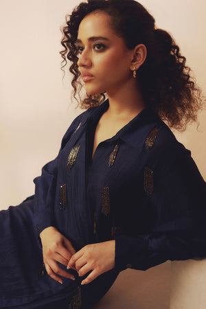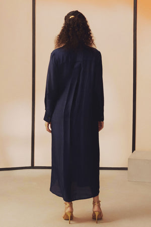 • Crafted in handwoven mulberry silk, this shirt dress features hand embroidered glass beadwork. Designed in classic easy fit silhouette with pockets on both the sides.