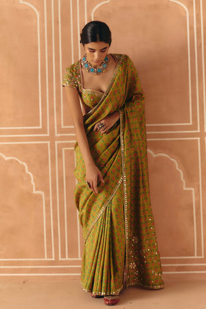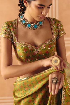 Parrot Green Saree Set