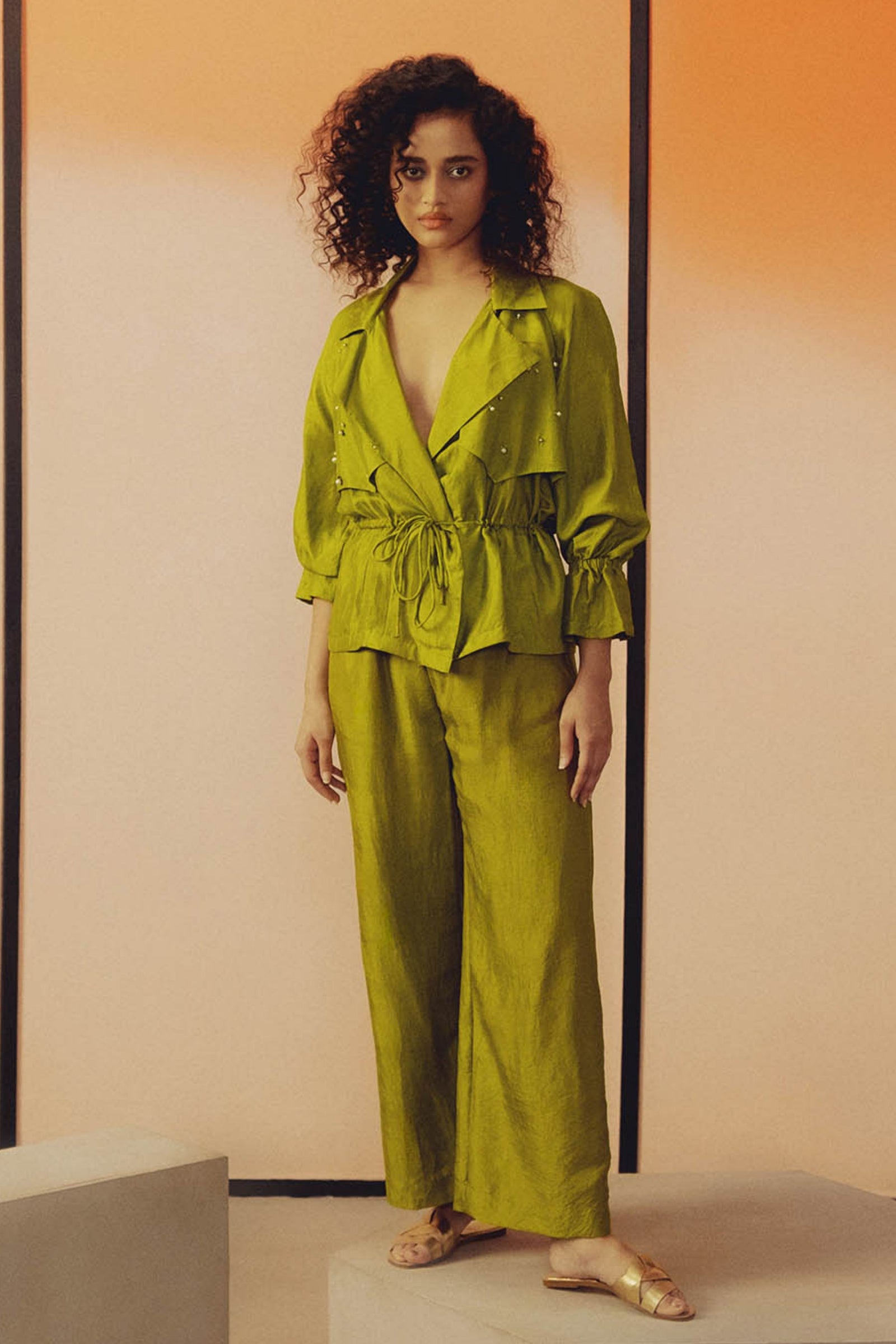 Care: Dry Clean Only. As garments are handmade and handwoven, natural variations in colours and weaves are a characteristic of the textile, and may be found in the finished garments as well.
