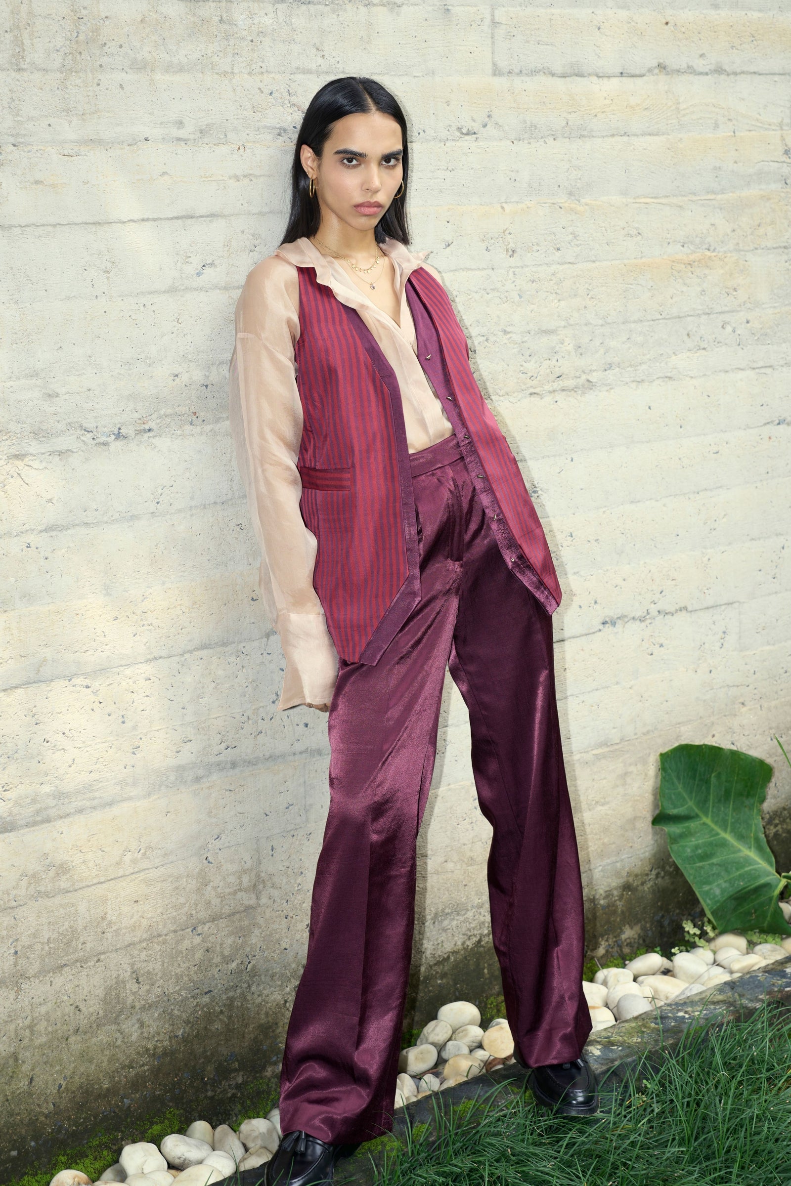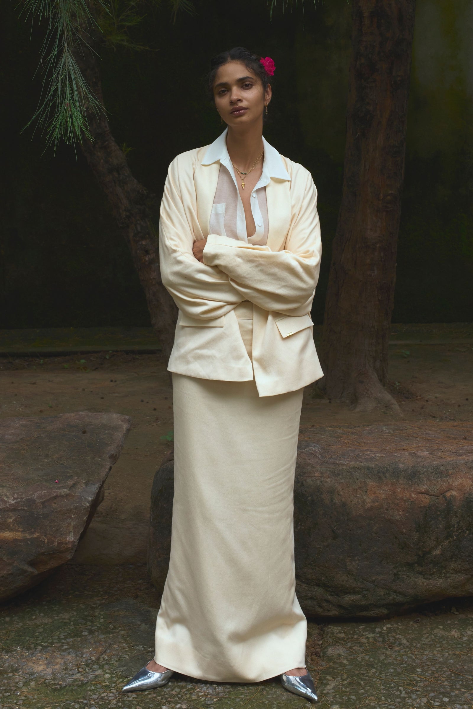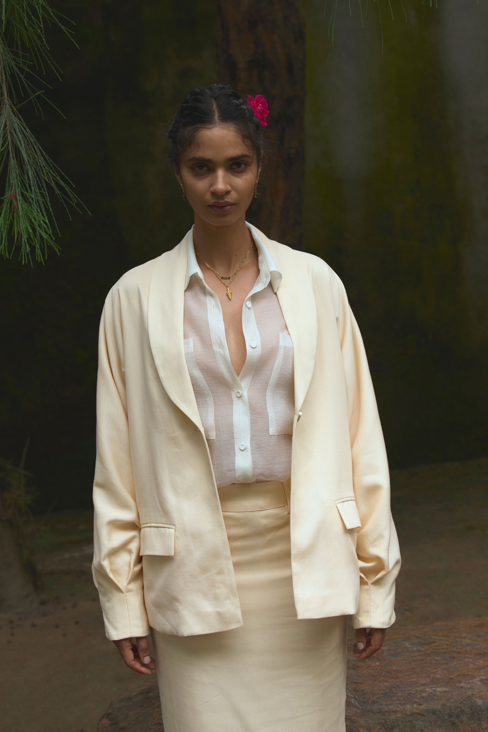 Care: Dry Clean Only. As garments are handmade and handwoven, natural variations in colours and weaves are a characteristic of the textile, and may be found in the finished garments as well.