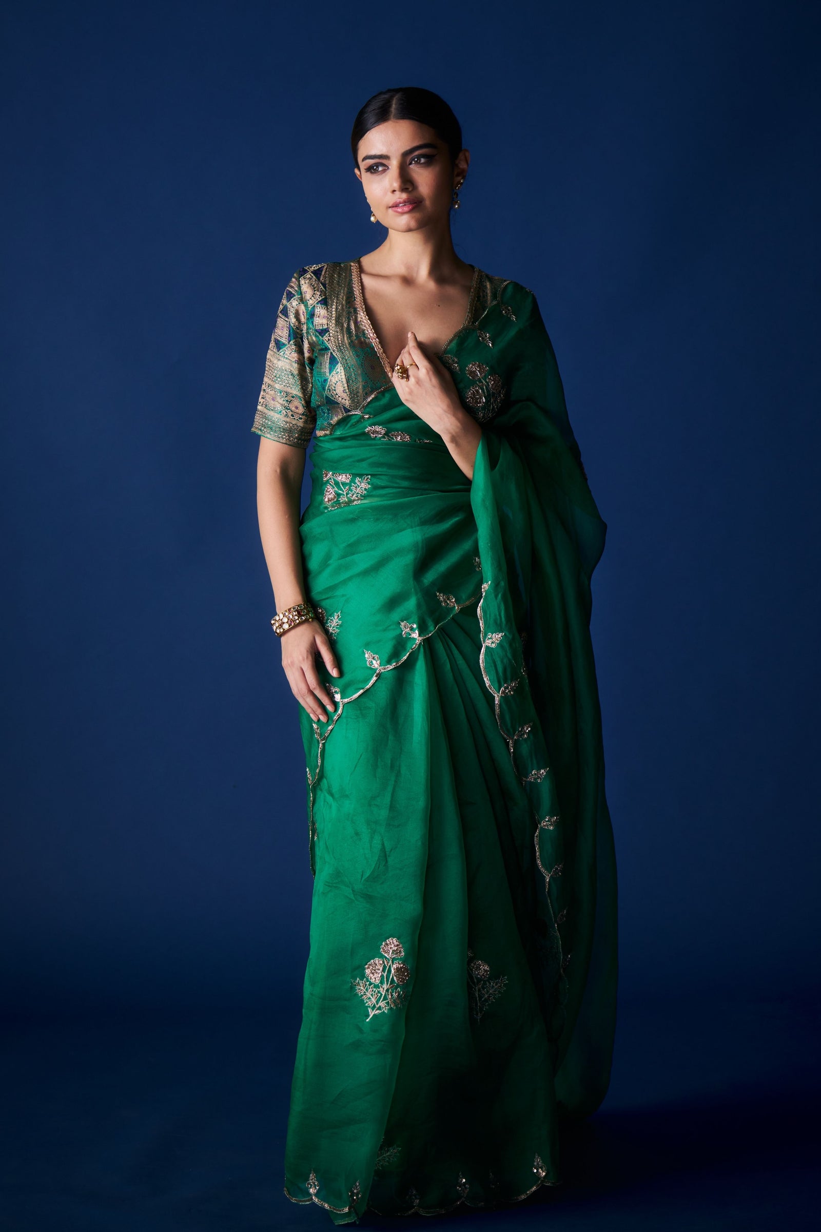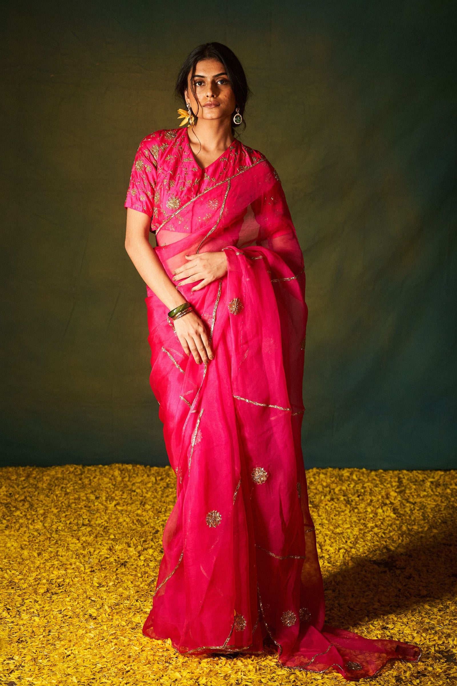 • Fabric: Saree: Organza, Blouse: Chanderi Silk