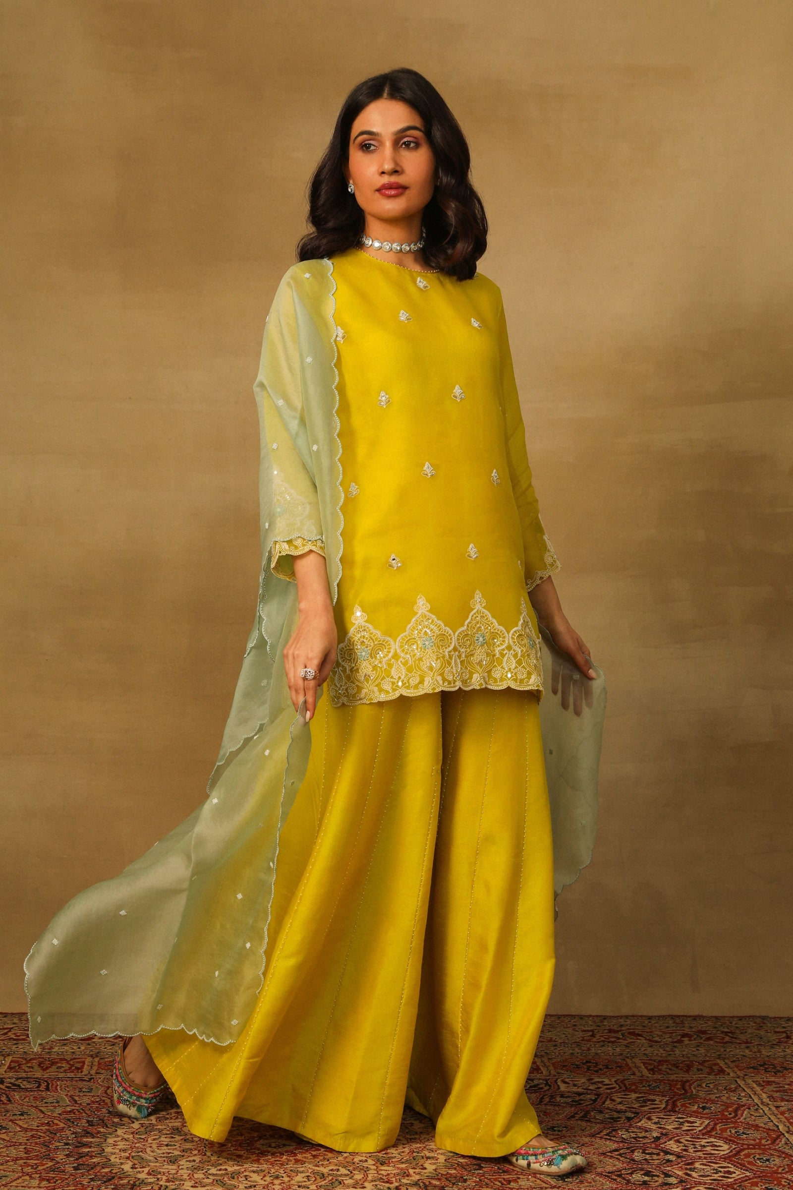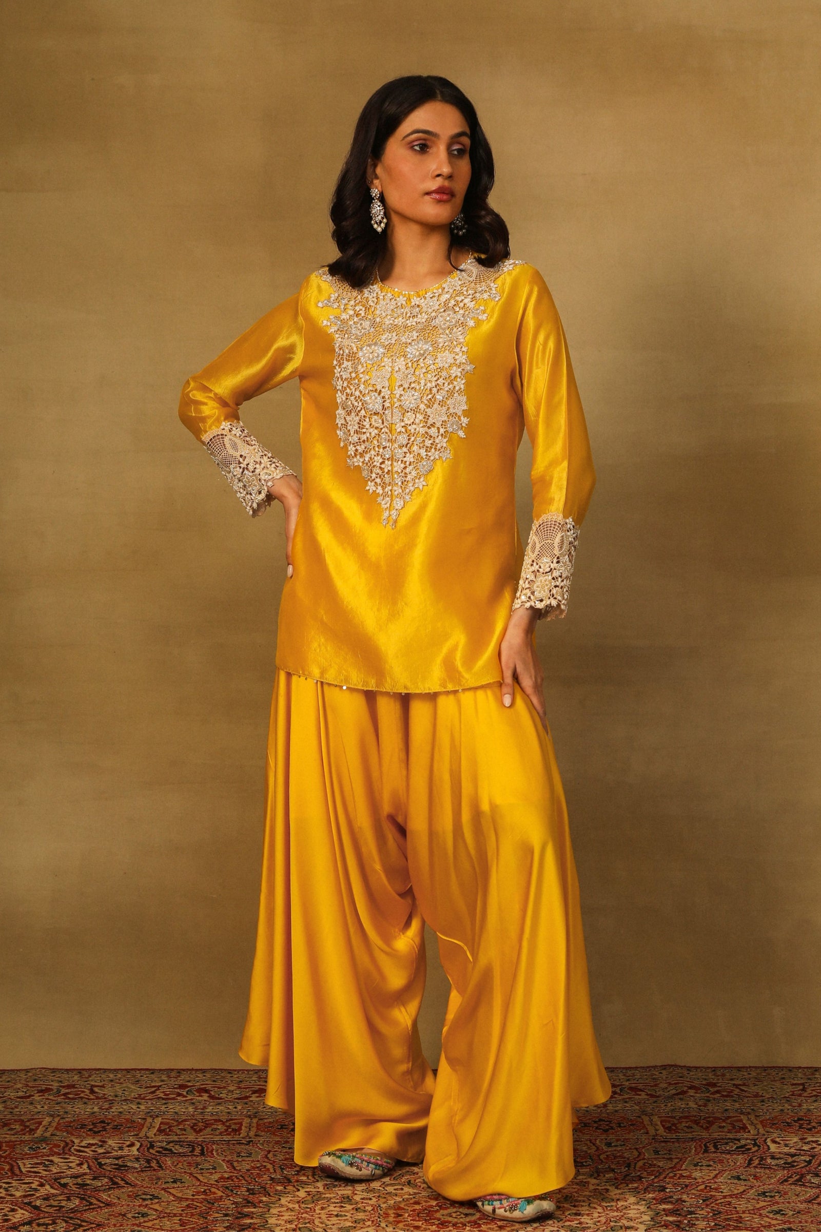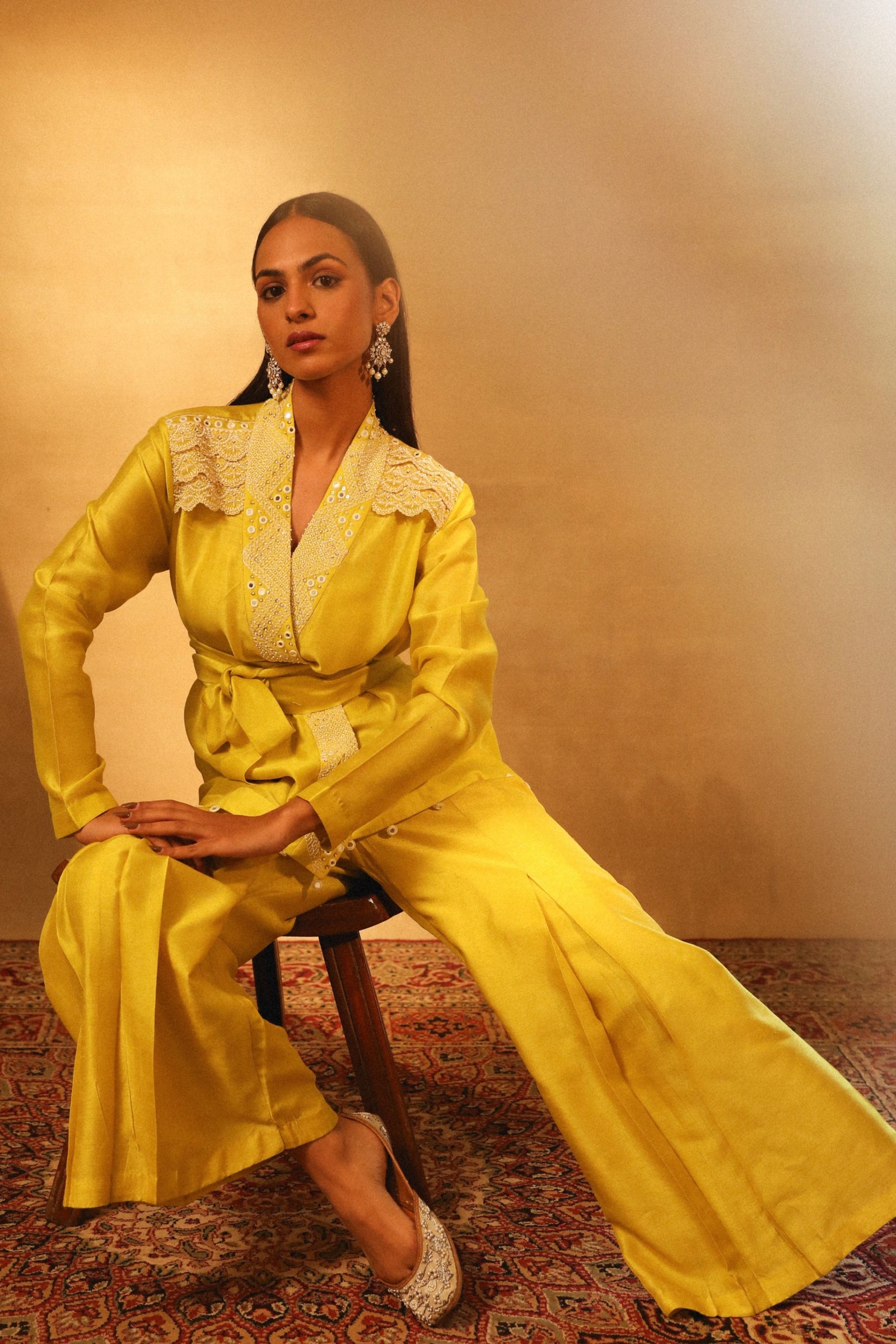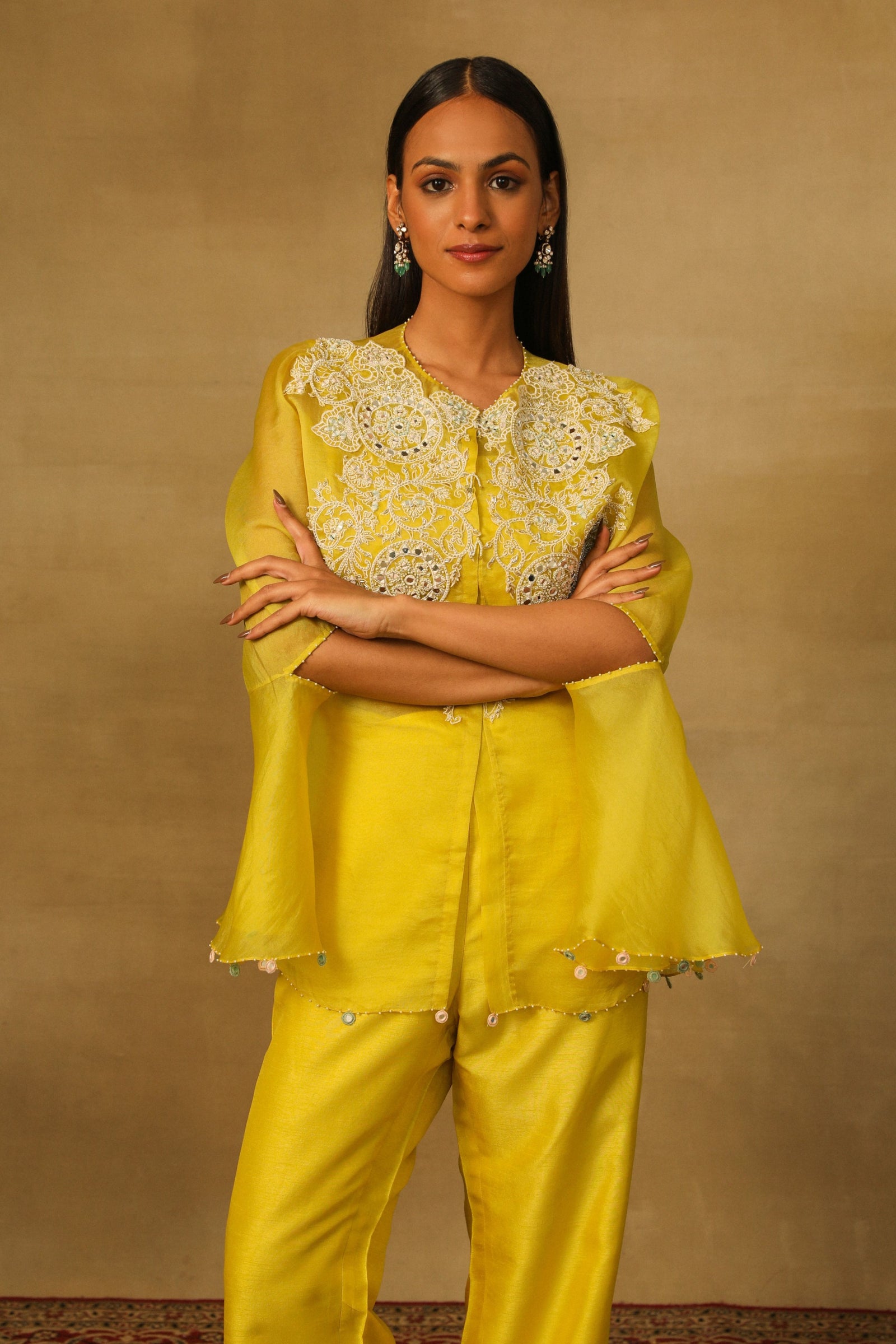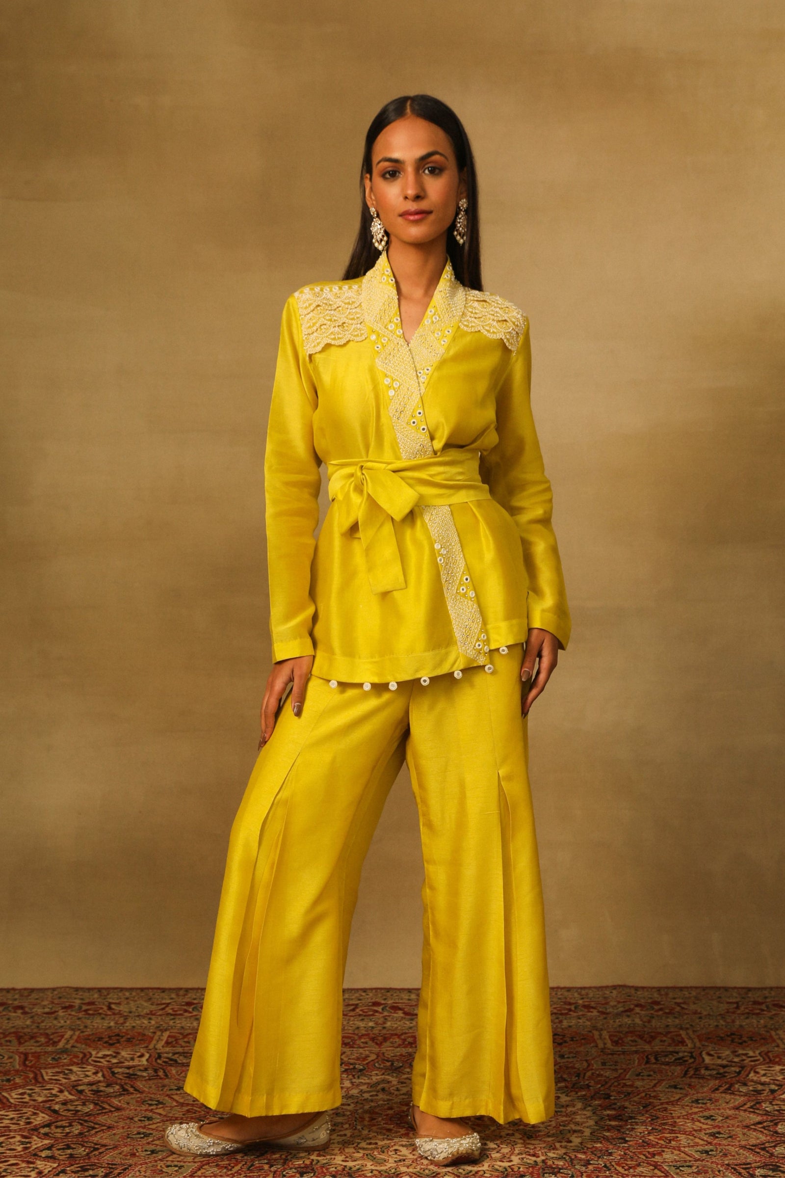 • Fabric: Top- Chanderi, Pants- Summer Silk, Belt- Chanderi