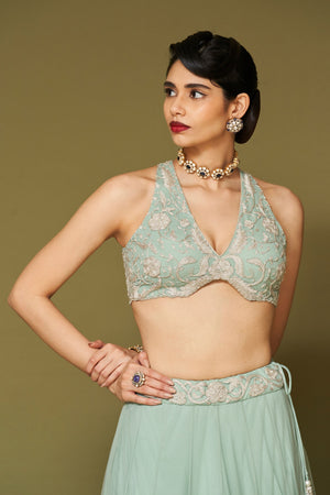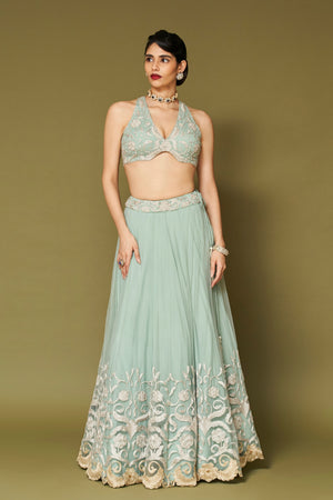Aqua Embroidered Net Lehenga Set
