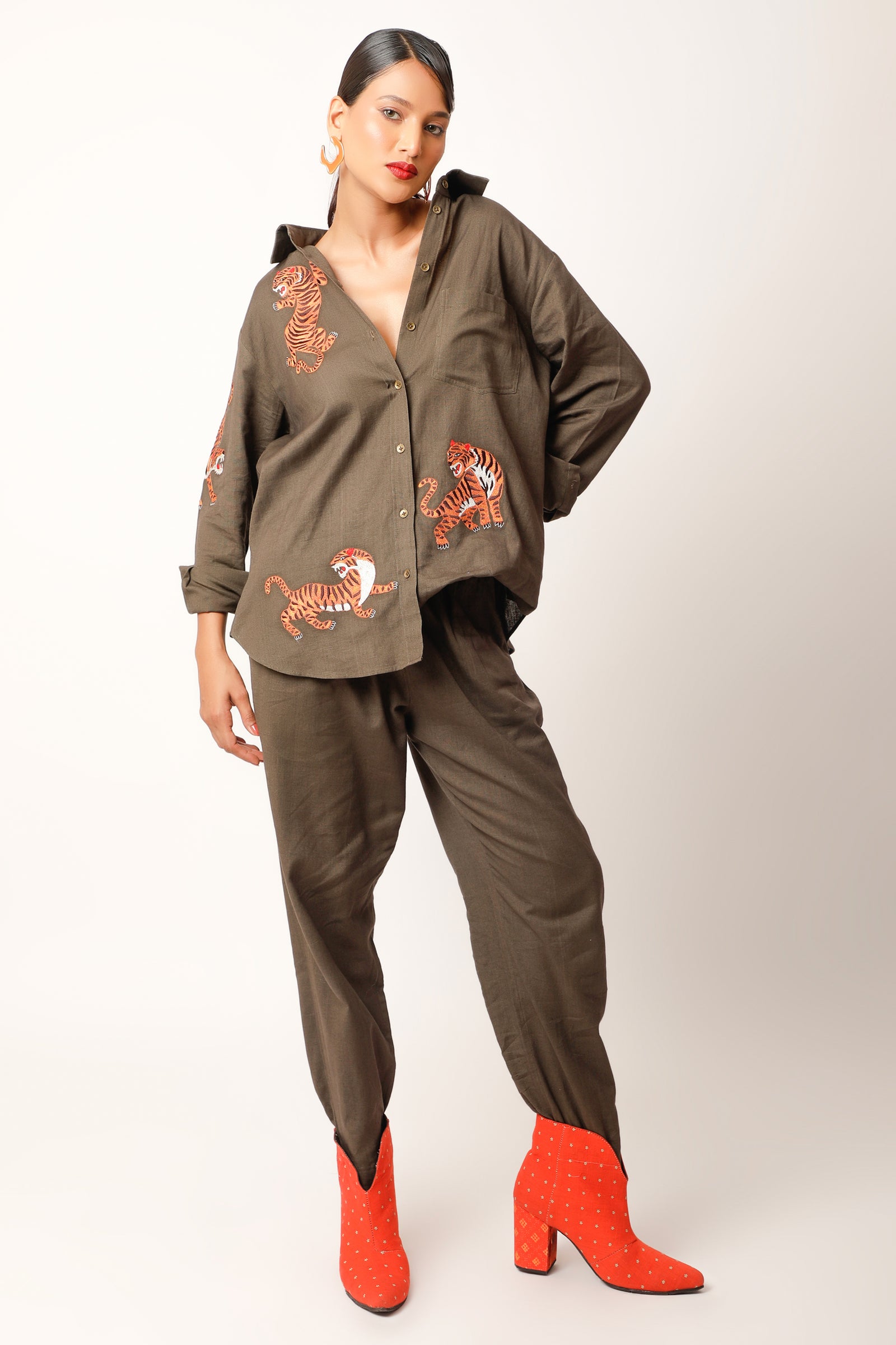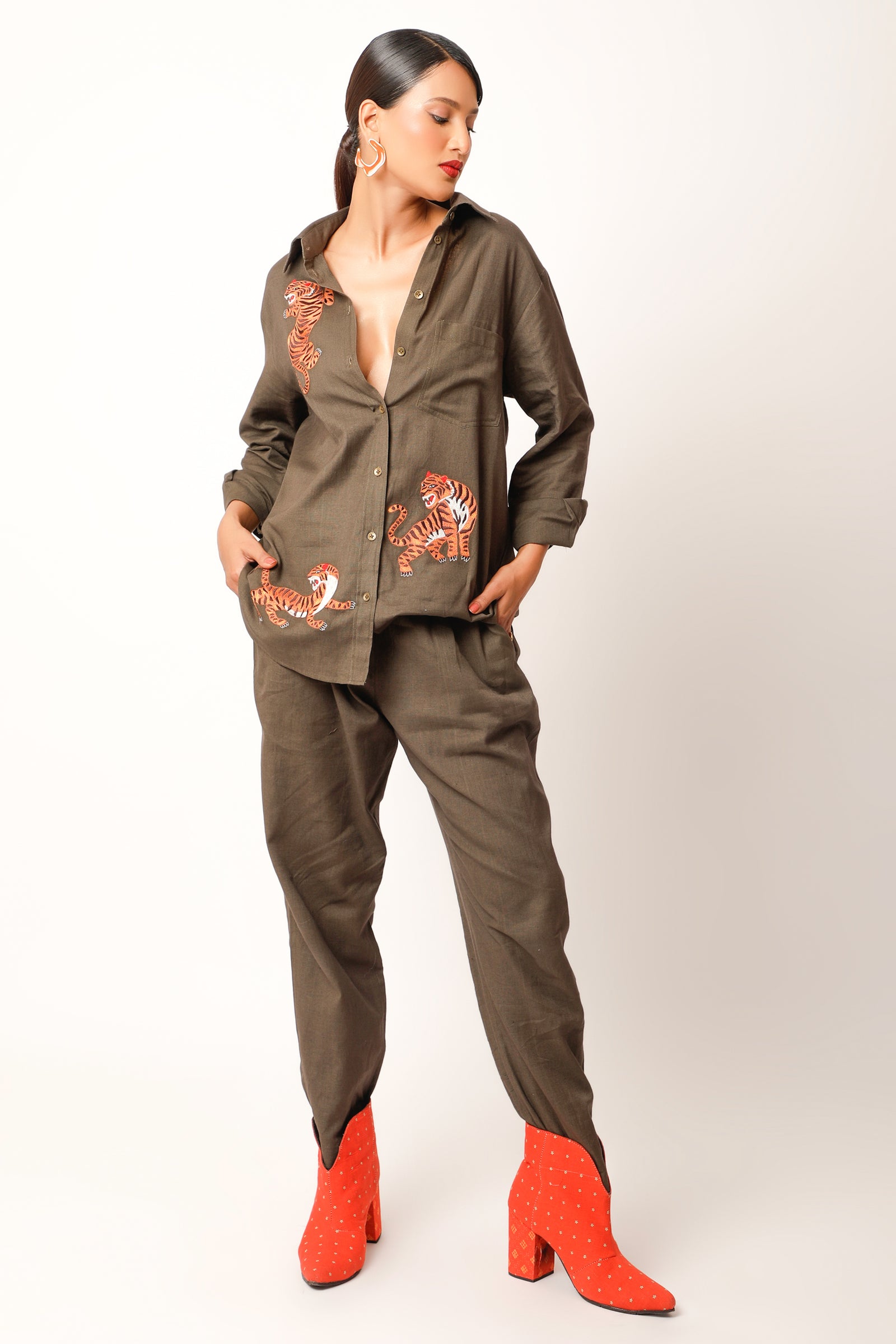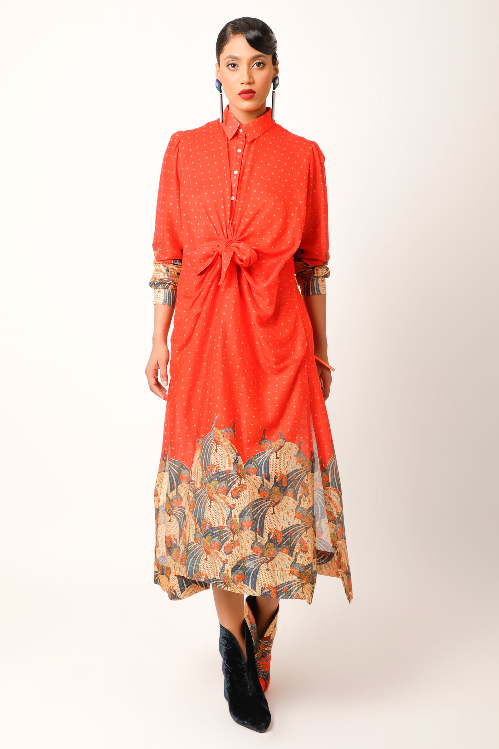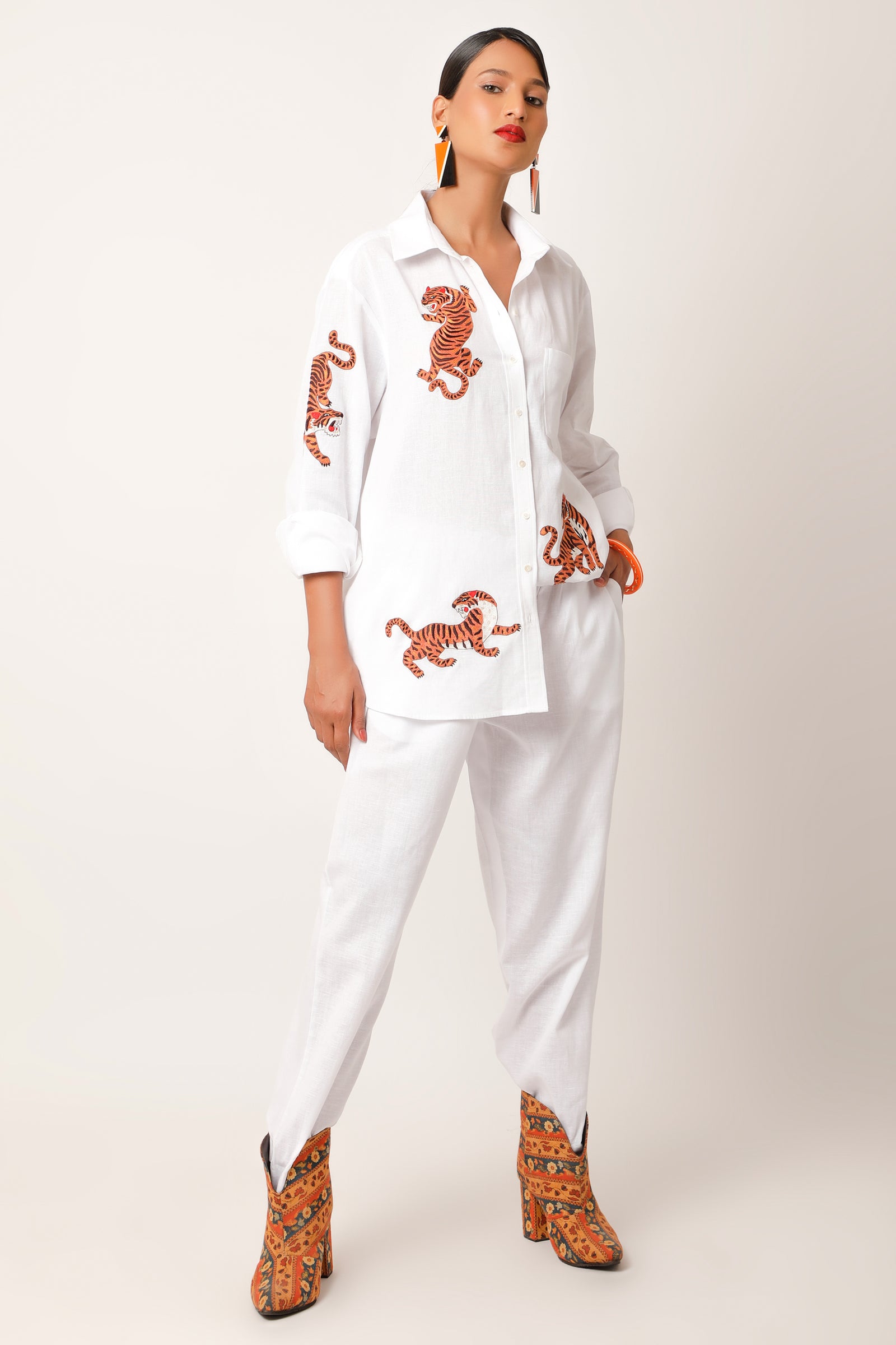 • Asymmetrical scooter printed chanderi shirt with pants and inner
