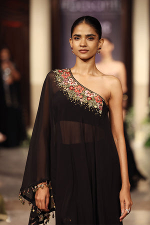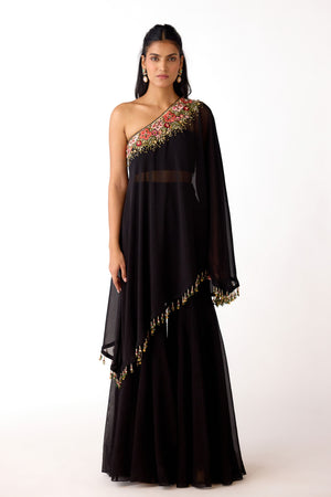 • Black viscose organza embroidered cape set