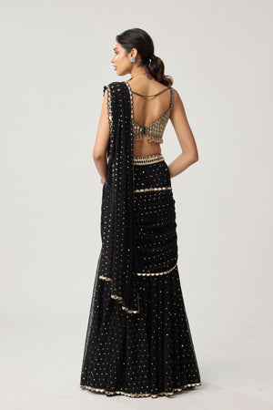 Black Flared Pants Draped Saree Set