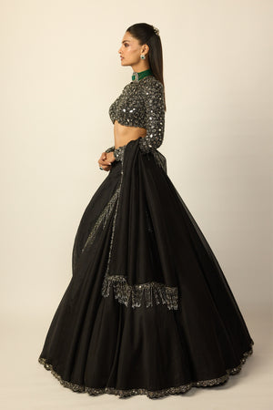 Black Tassel Dupatta Lehenga Set