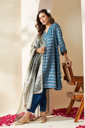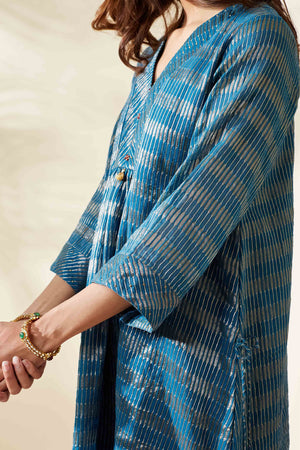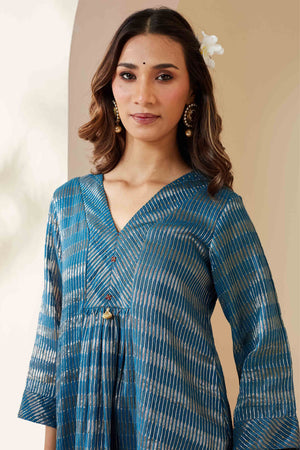 Blue Zari Stripe Kurta Set