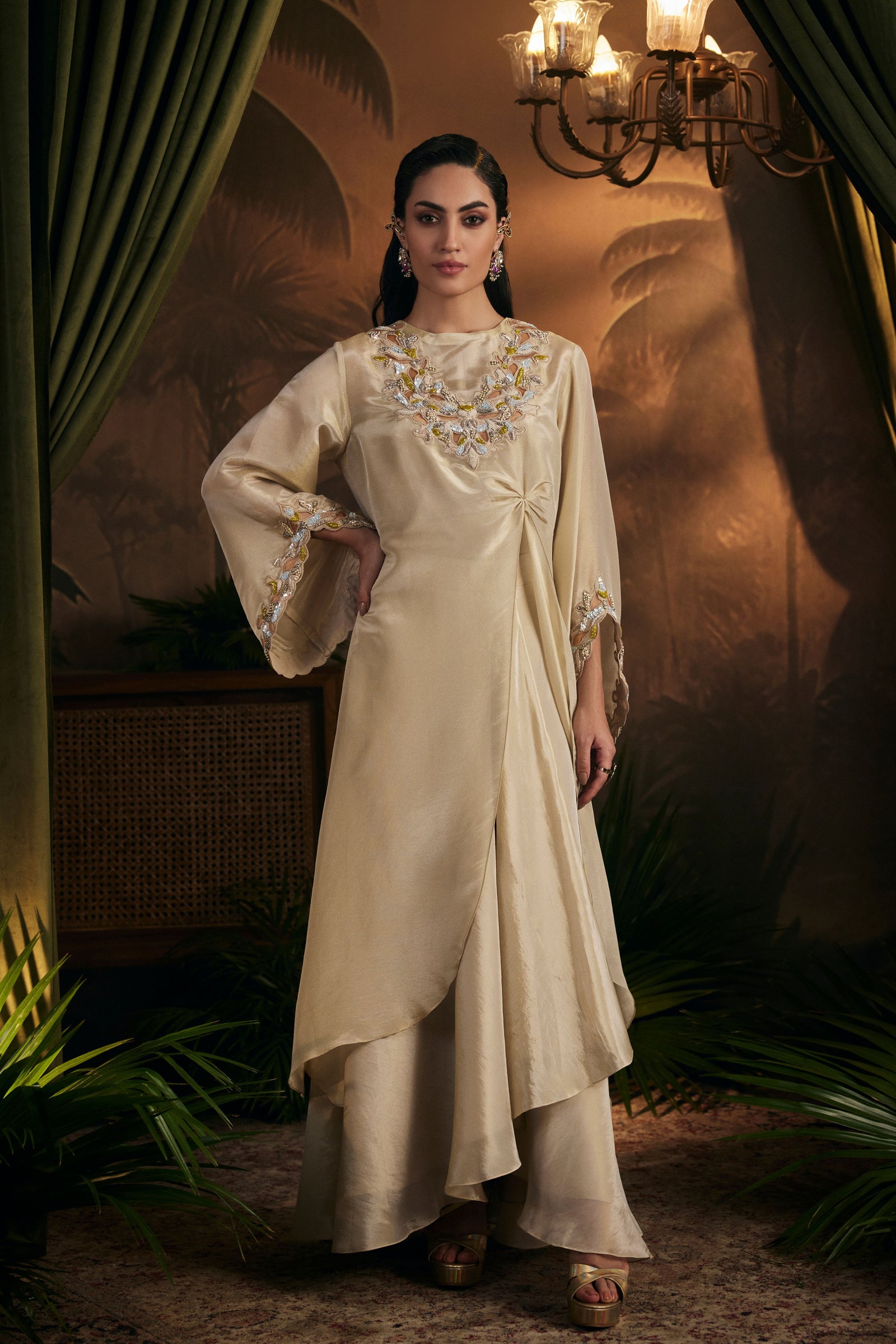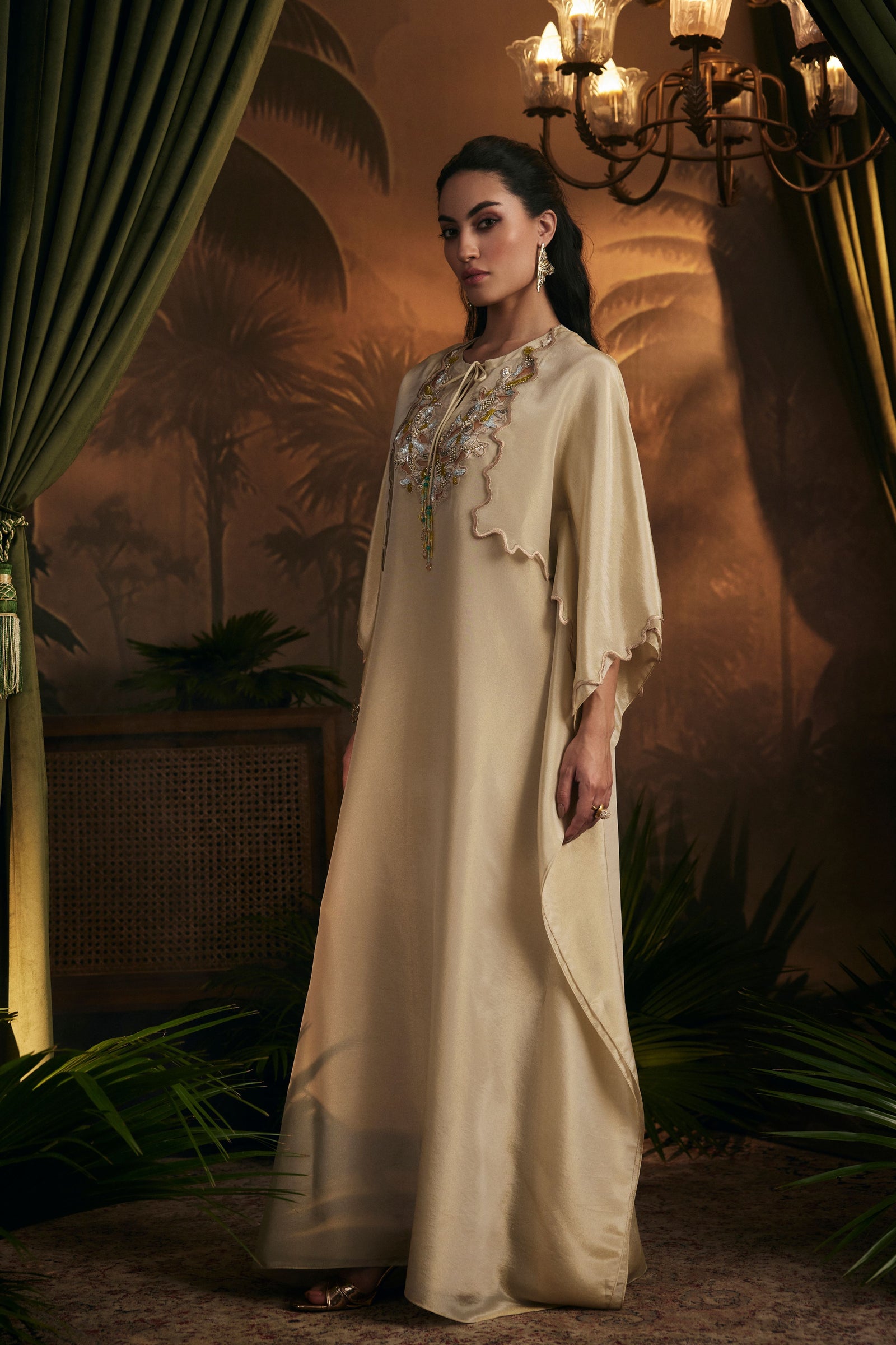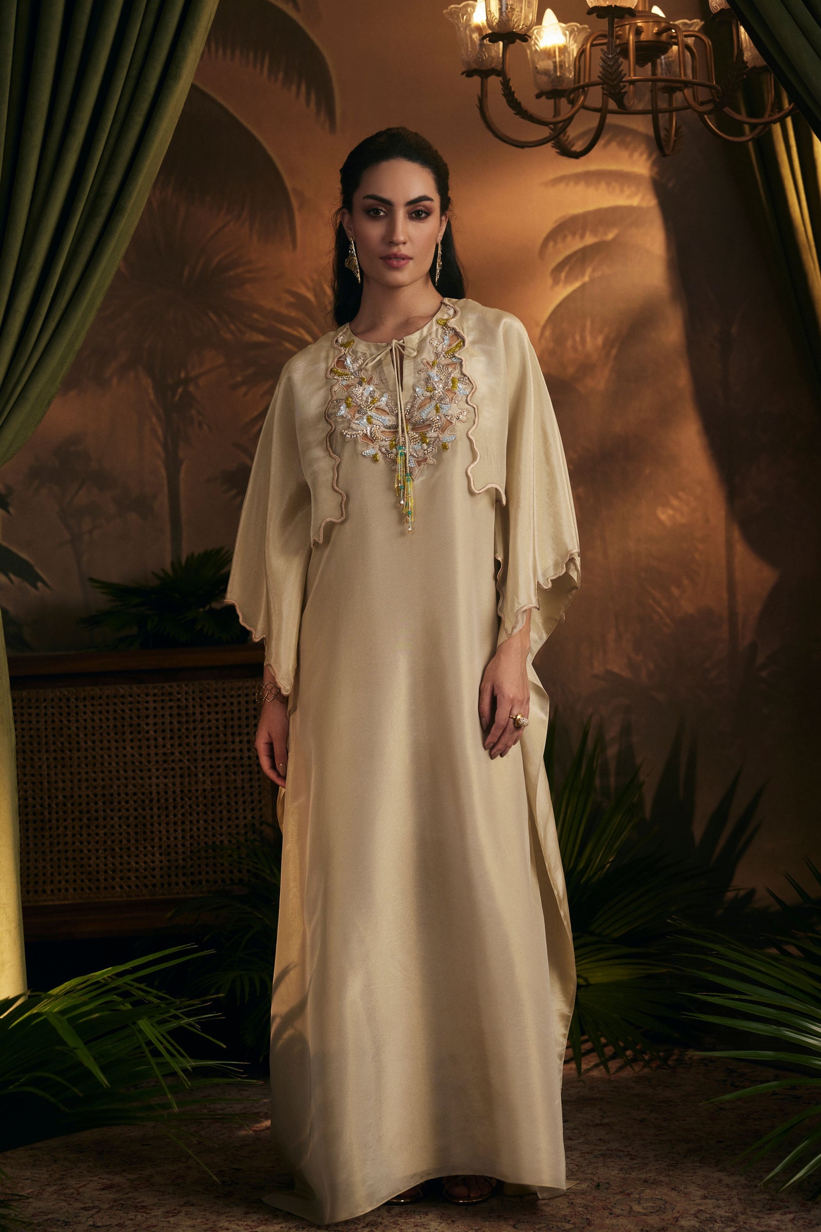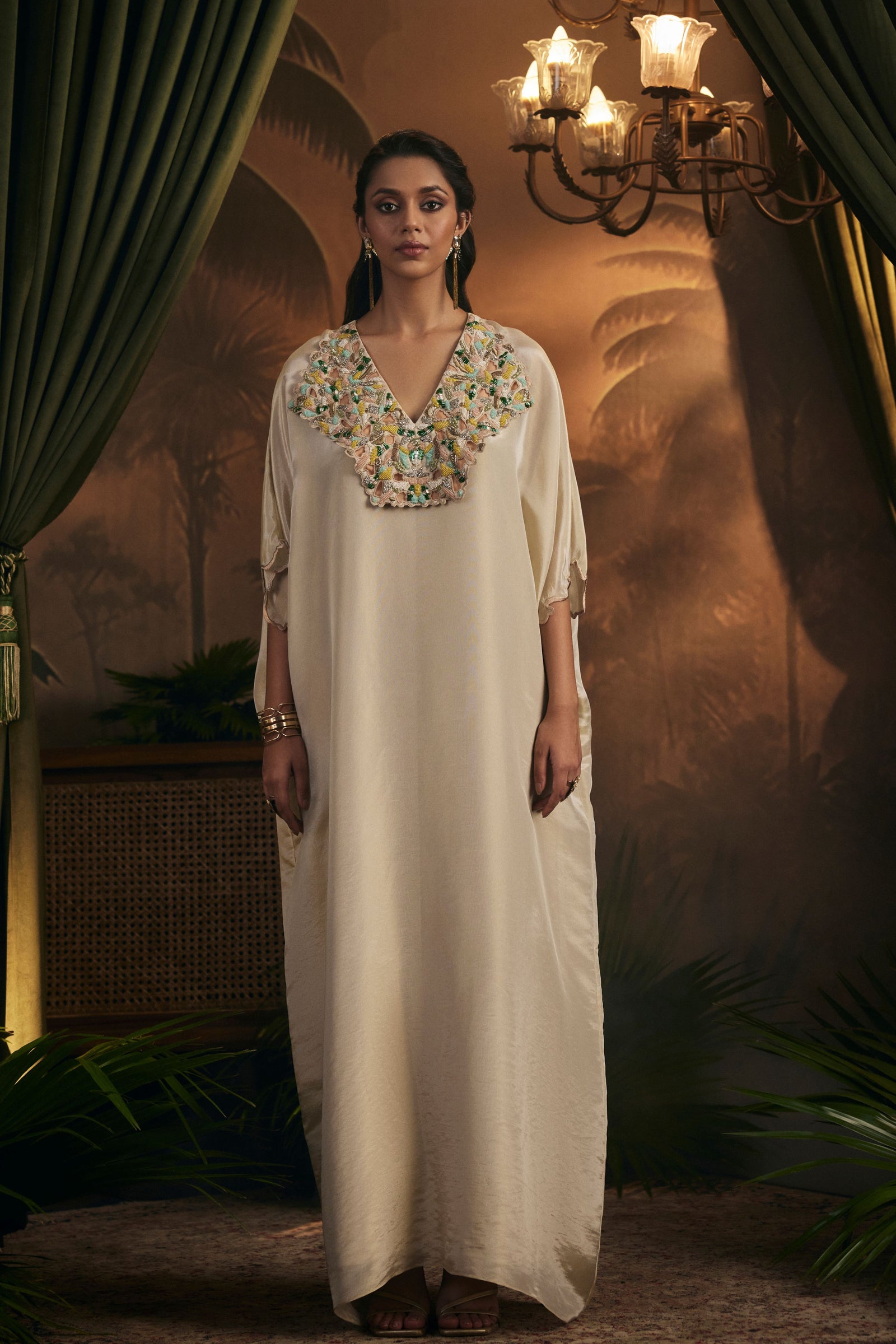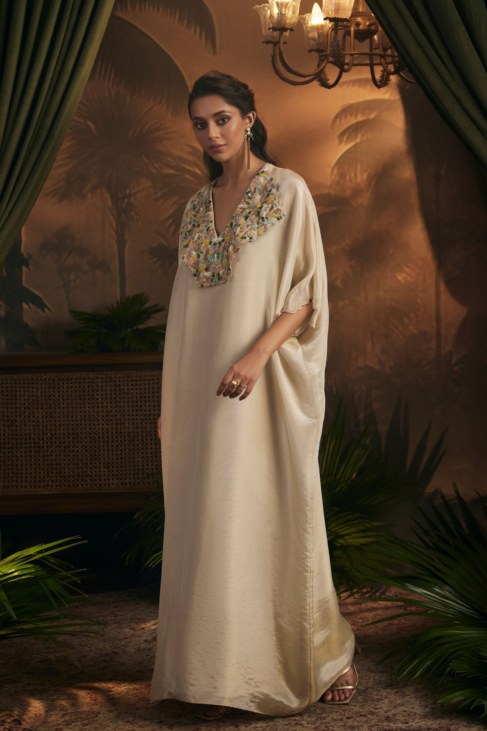 • Swish your way through this season with our beautifully embroidered yoke kaftan with slip