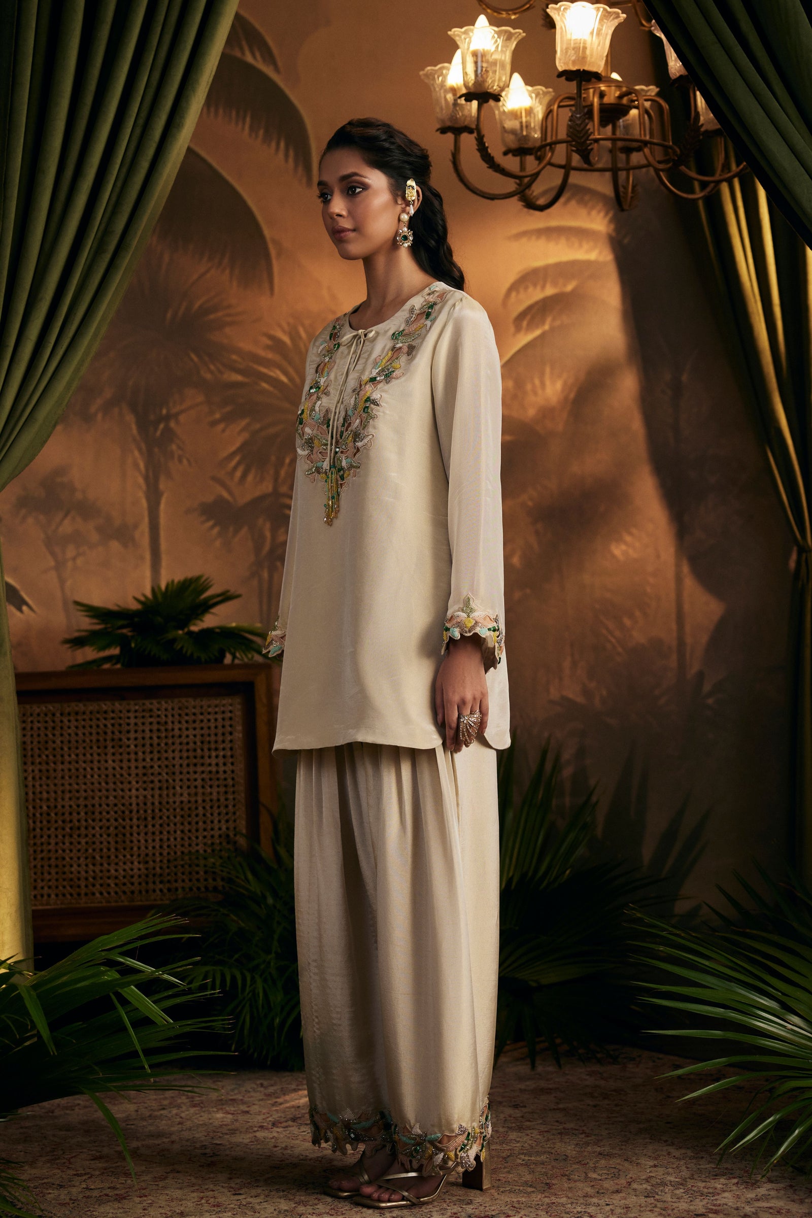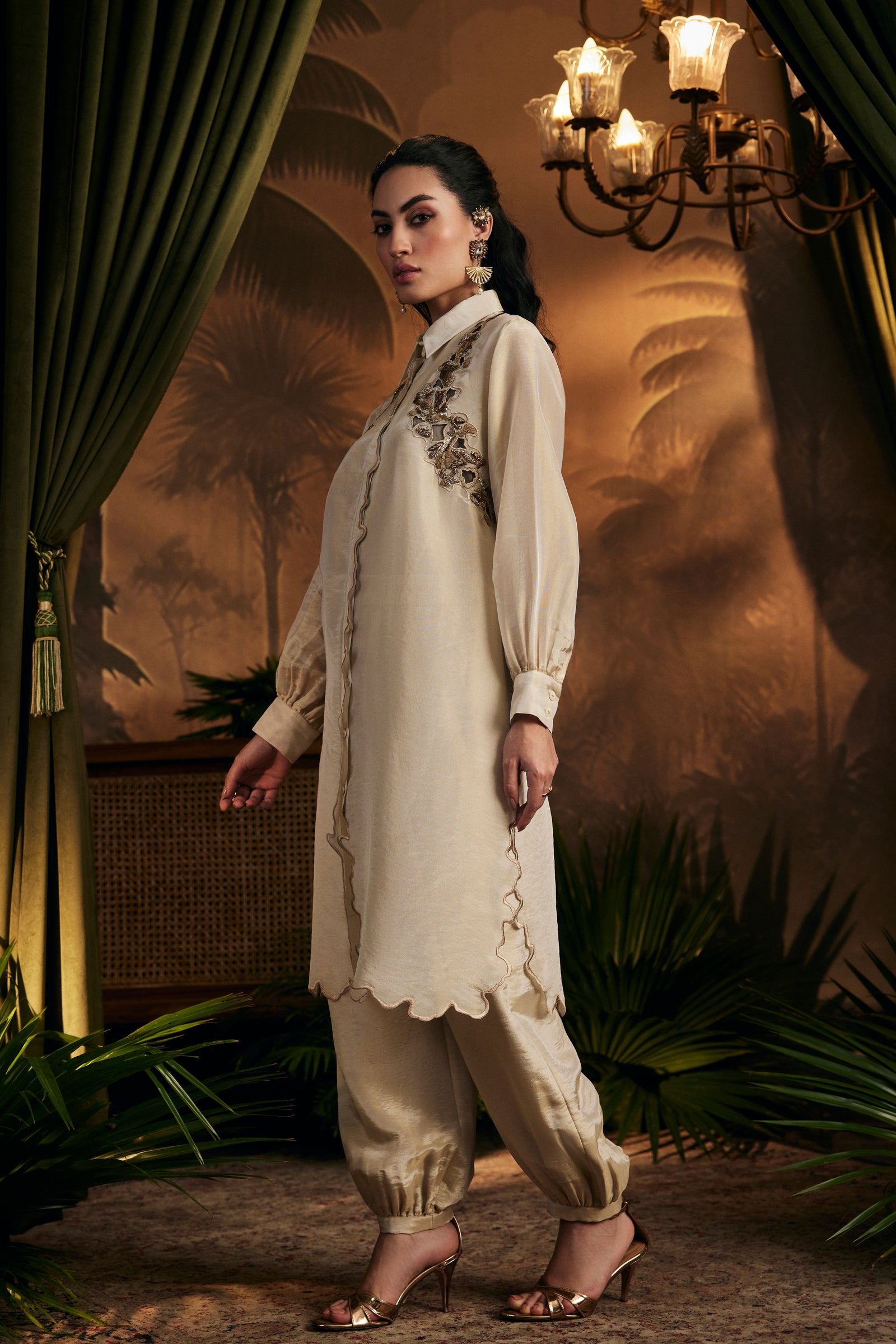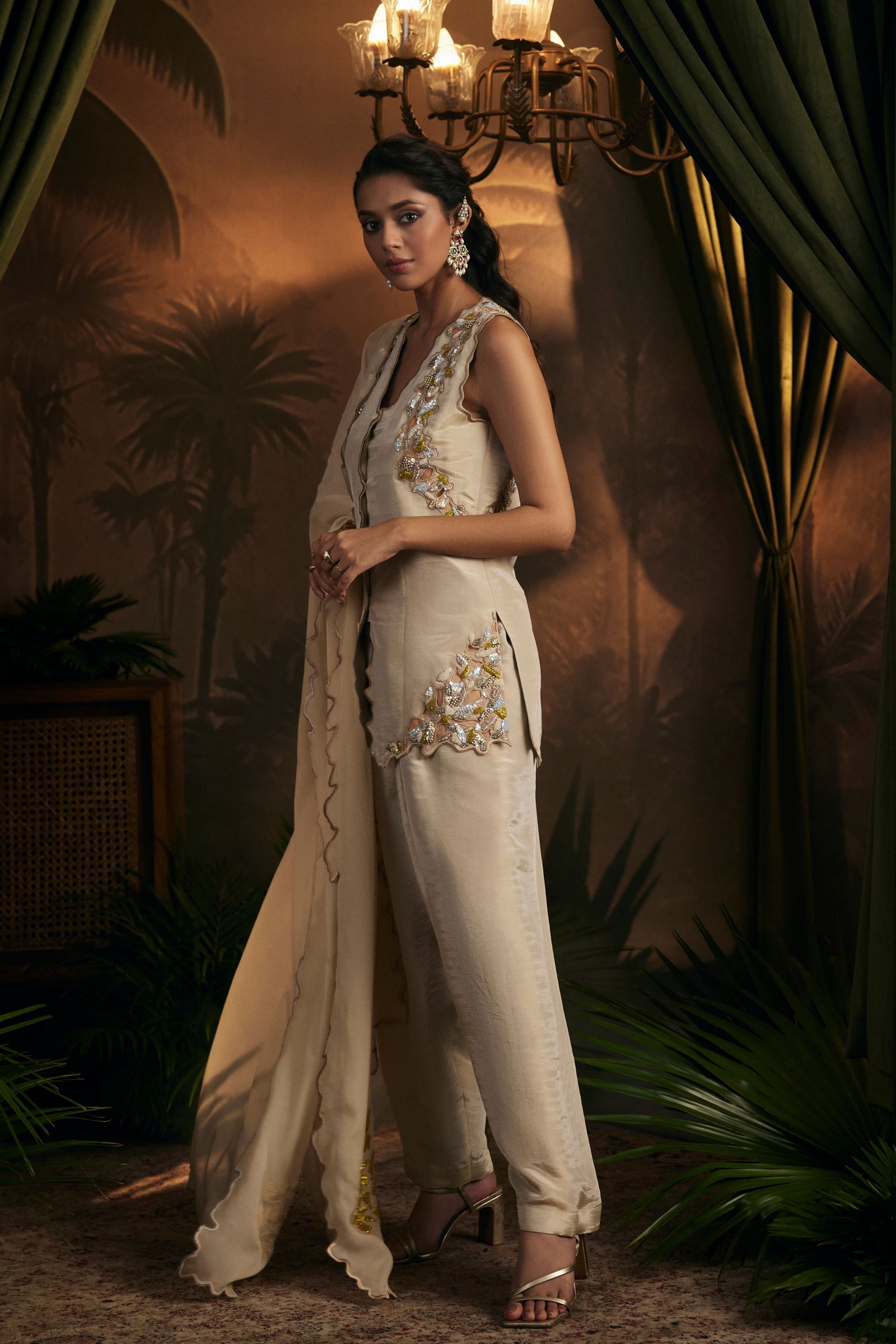 Care: Dry Clean Only. As garments are handmade and handwoven, natural variations in colours and weaves are a characteristic of the textile, and may be found in the finished garments as well.