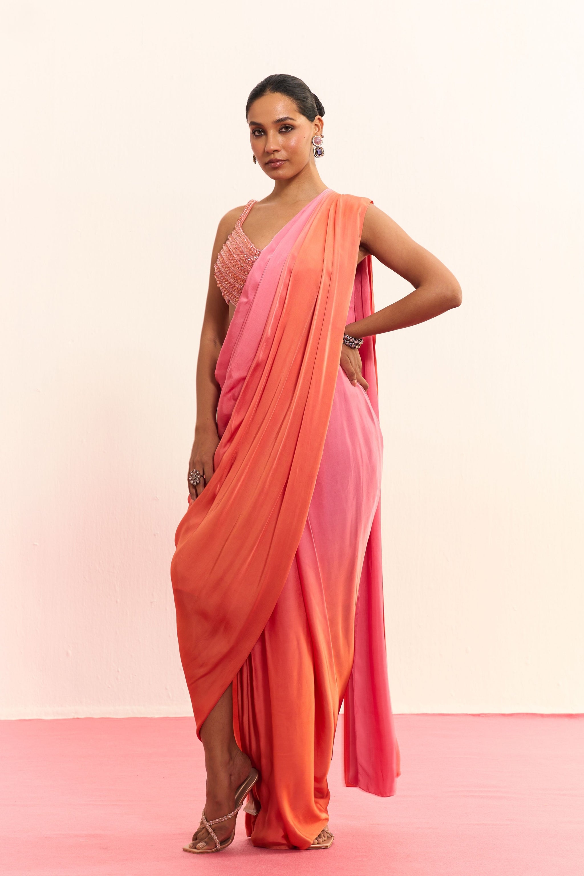 Coral Mist Draped Saree Set