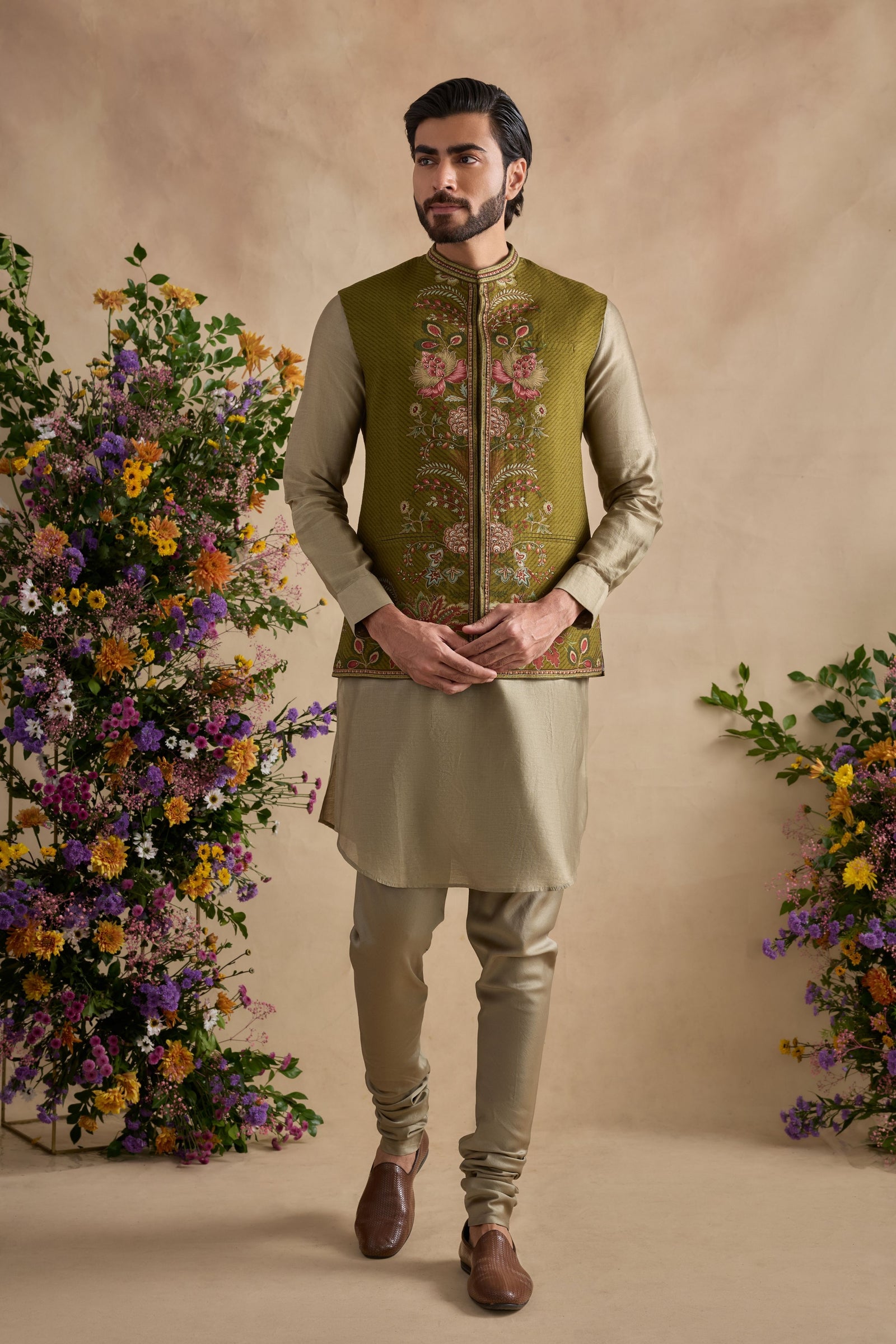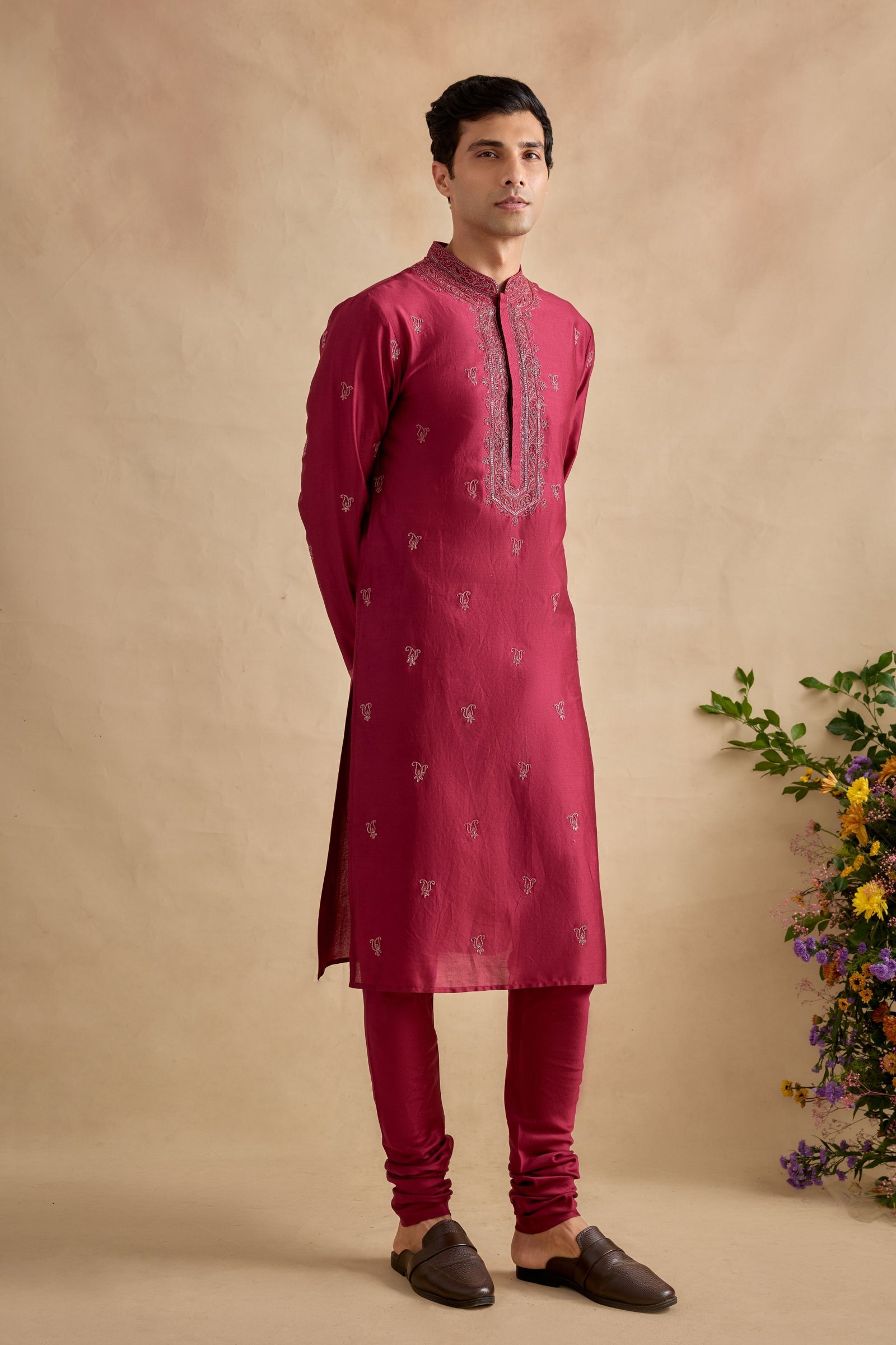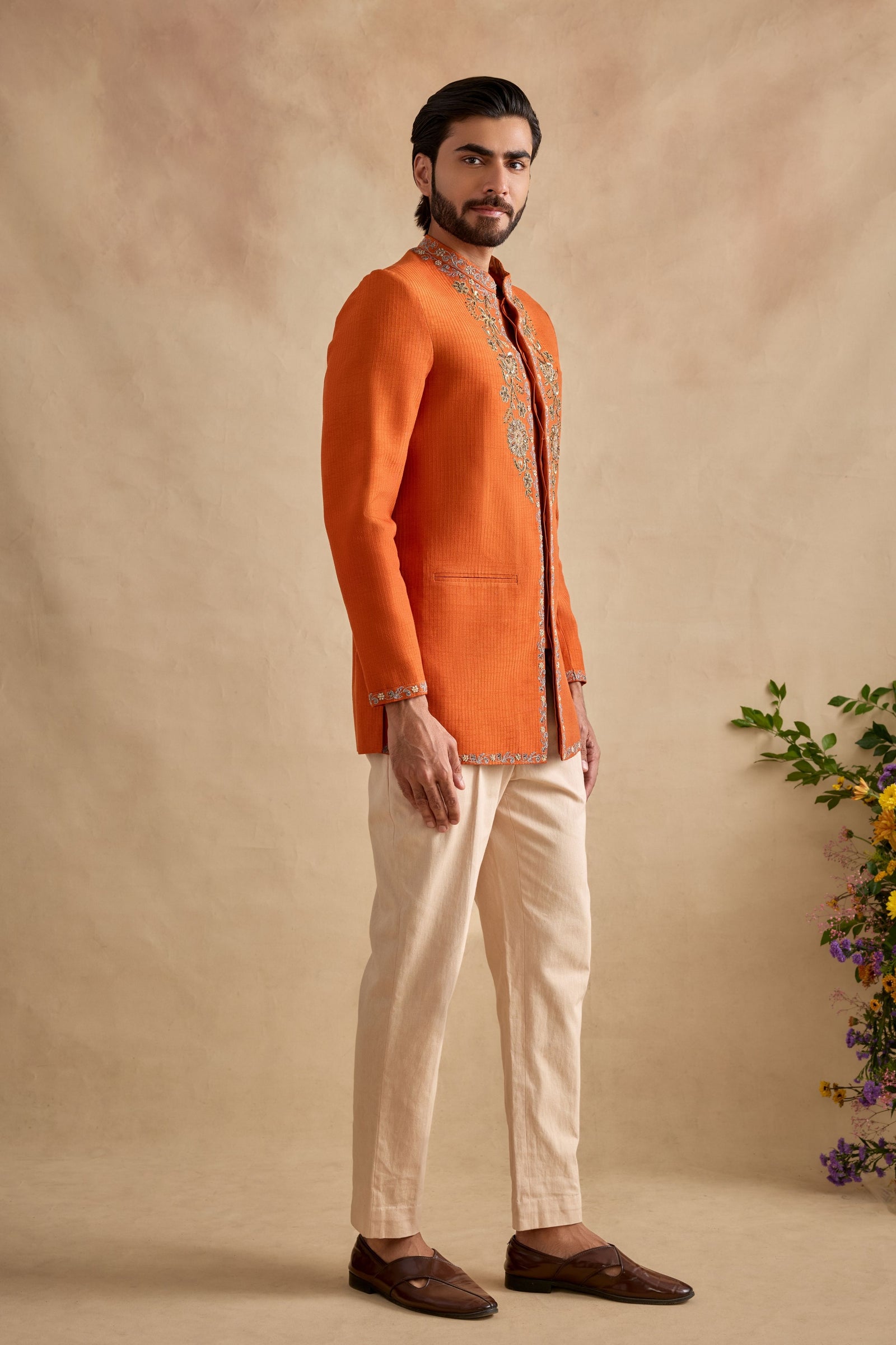 Care: Dry Clean Only. As garments are handmade and handwoven, natural variations in colours and weaves are a characteristic of the textile, and may be found in the finished garments as well.