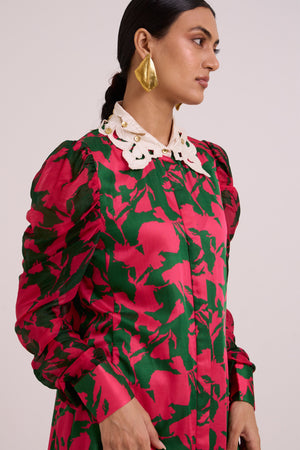 • A love letter to print, prose, and perfect tailoring. Fenix channels that bookish charm with a twist — a sharp embroidered collar meets puffed sleeves and a storybook silhouette that could walk straight out of a parisian café. It’s smart, striking, and full of main-character energy — the kind of dress that makes you want to write poetry.