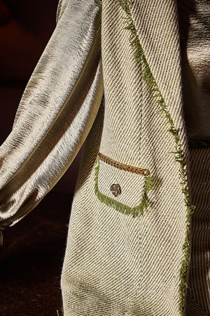 Care: Dry Clean Only. As garments are handmade and handwoven, natural variations in colours and weaves are a characteristic of the textile, and may be found in the finished garments as well.
