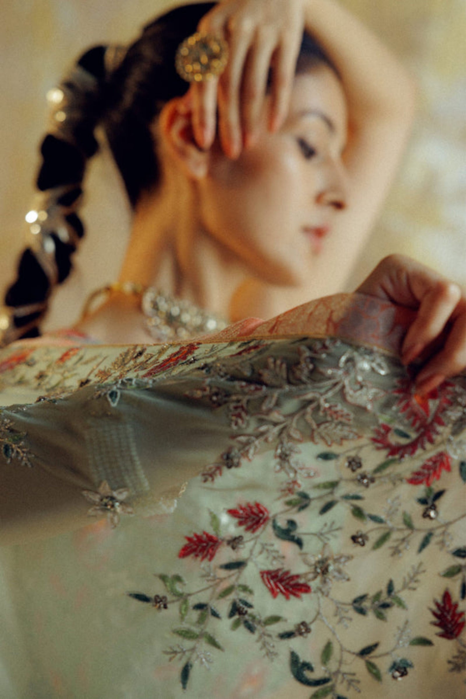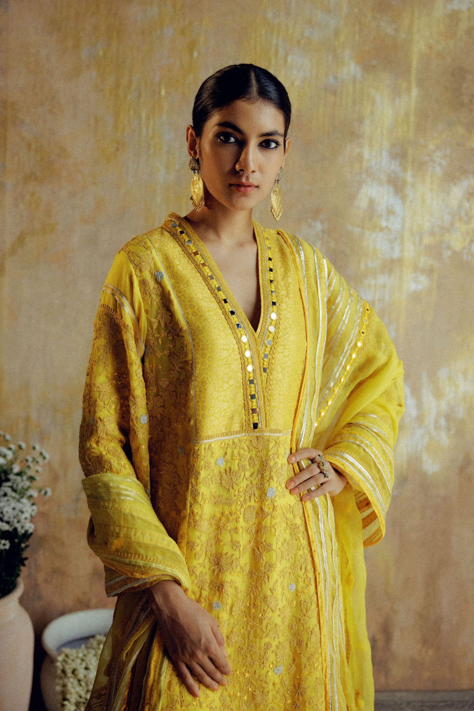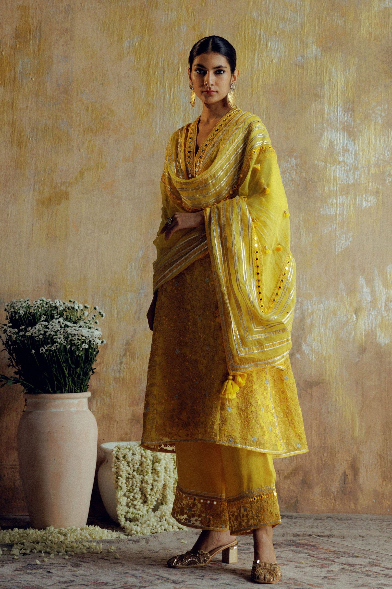 Care: Dry Clean Only. As garments are handmade and handwoven, natural variations in colours and weaves are a characteristic of the textile, and may be found in the finished garments as well.