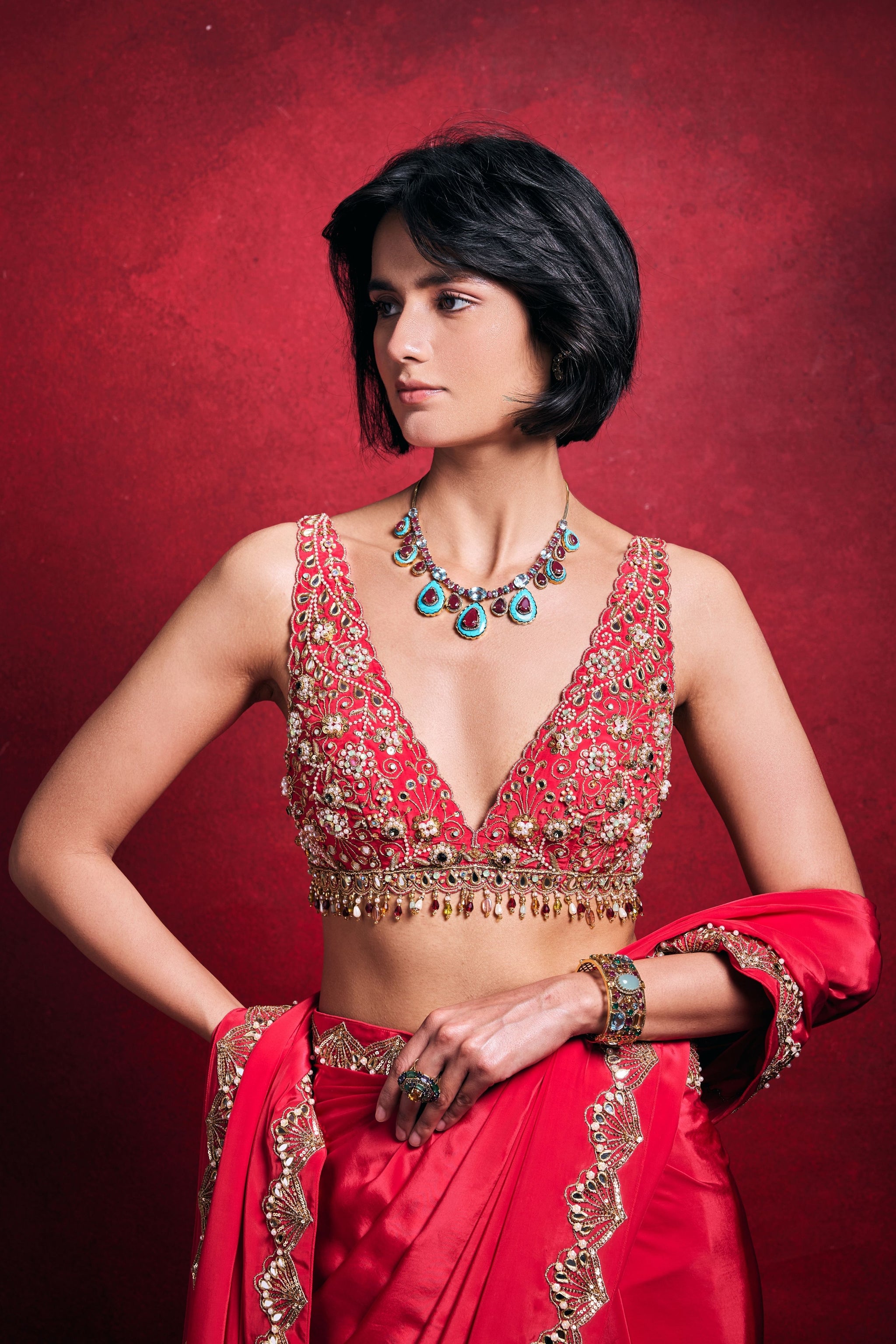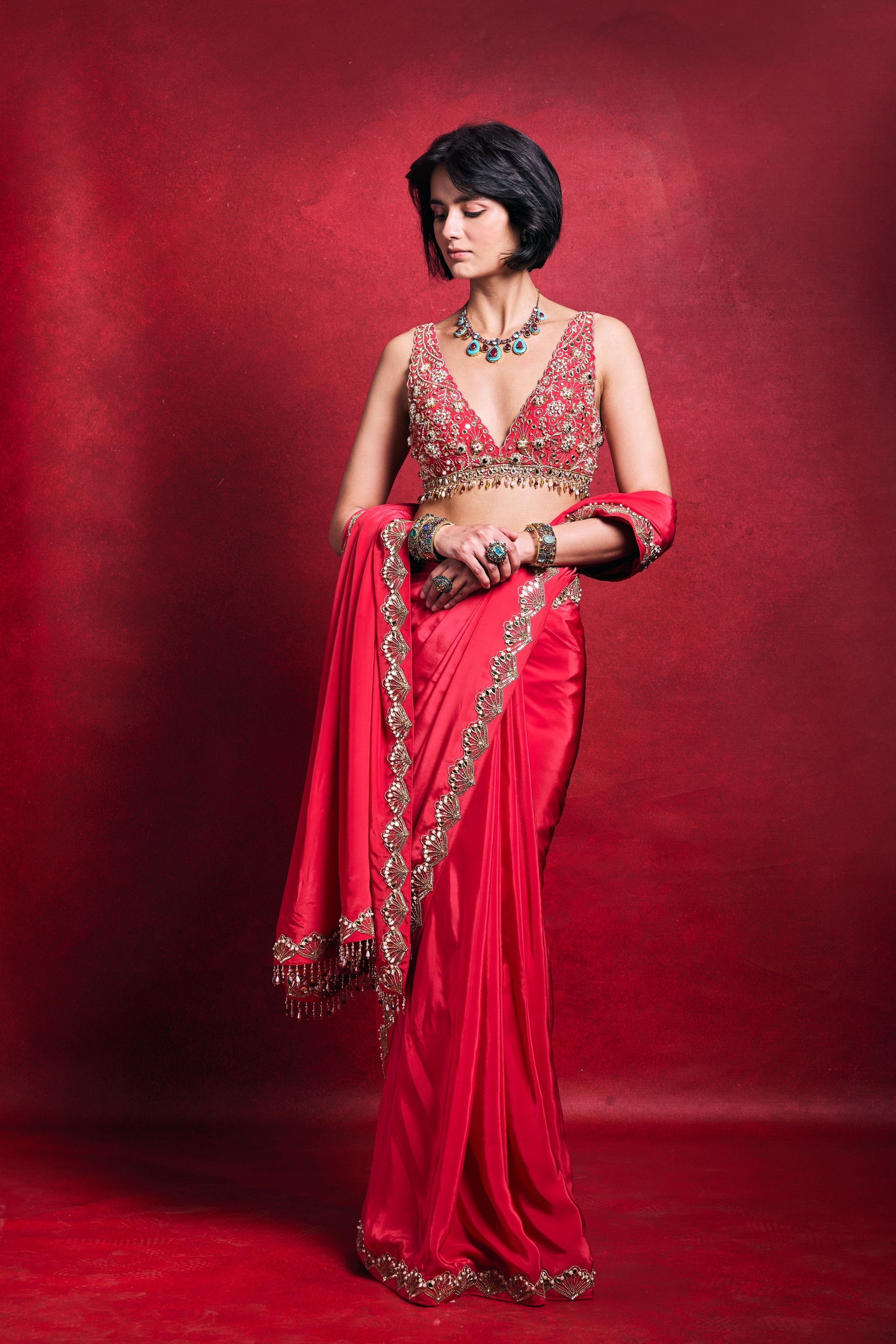• Components: Saree, Stitched Blouse, Petticoat (3)