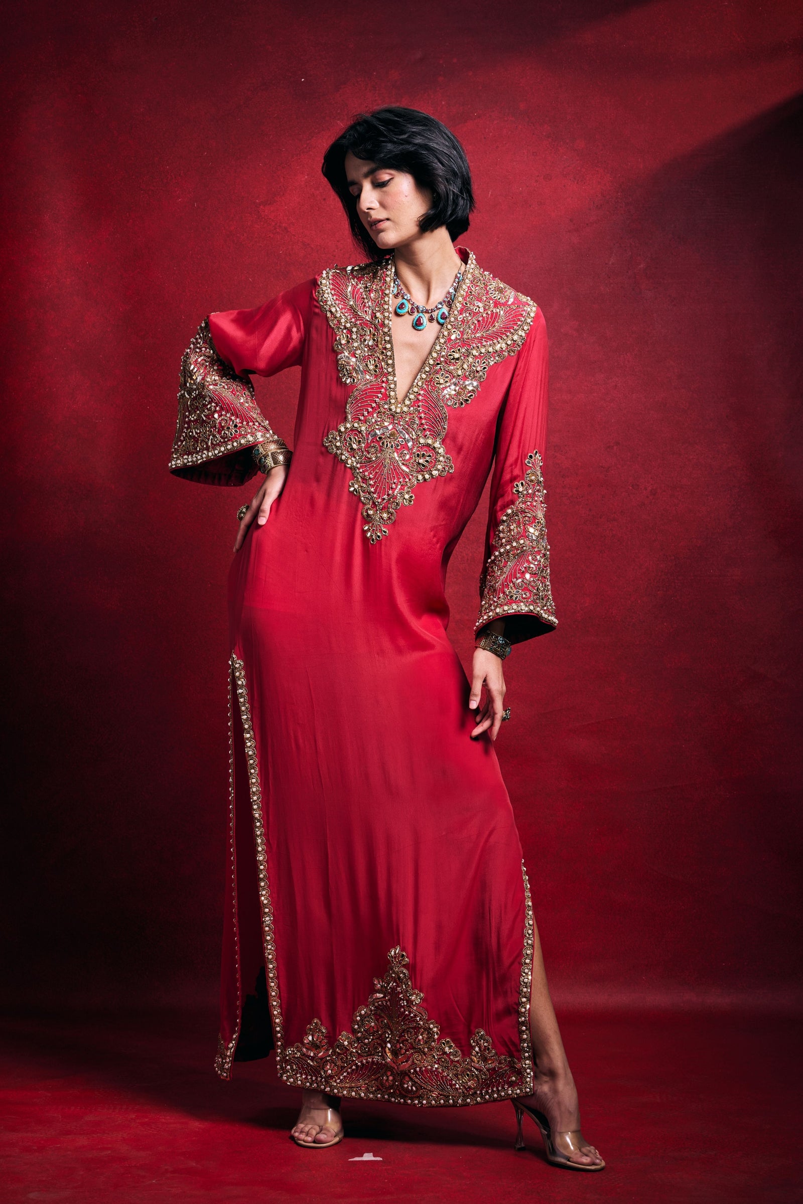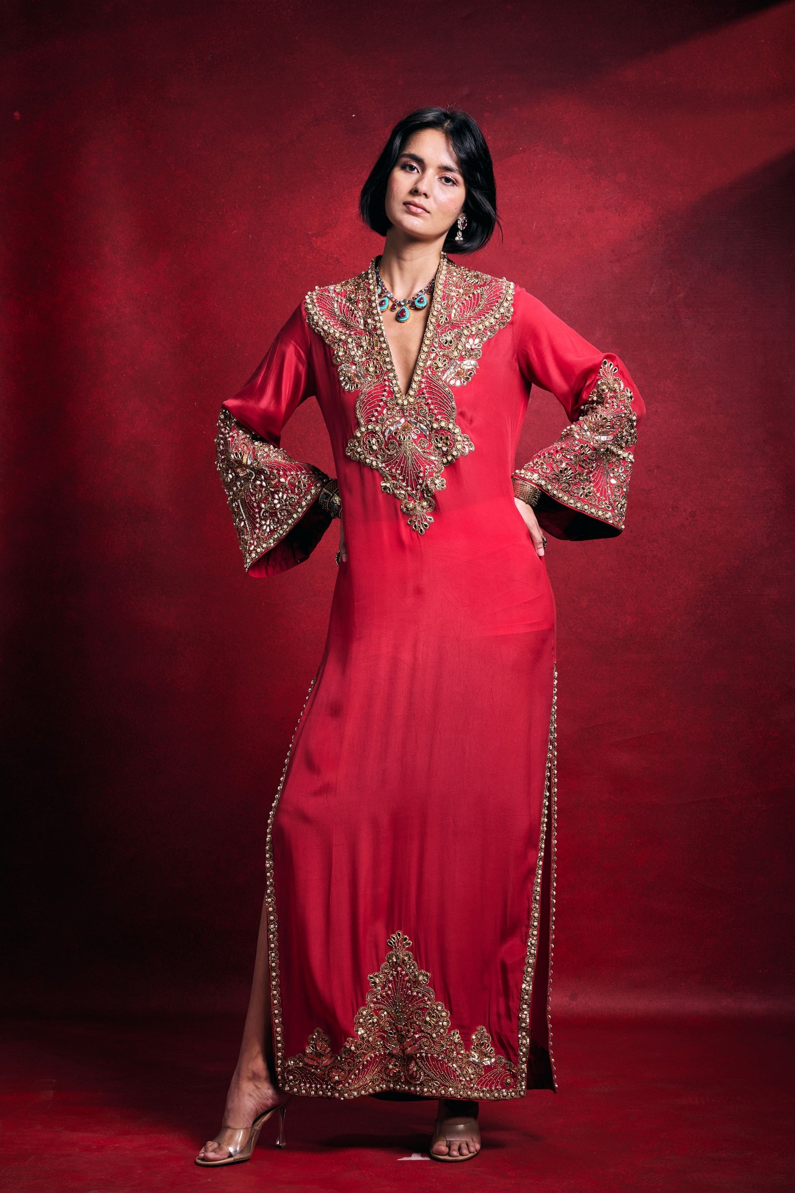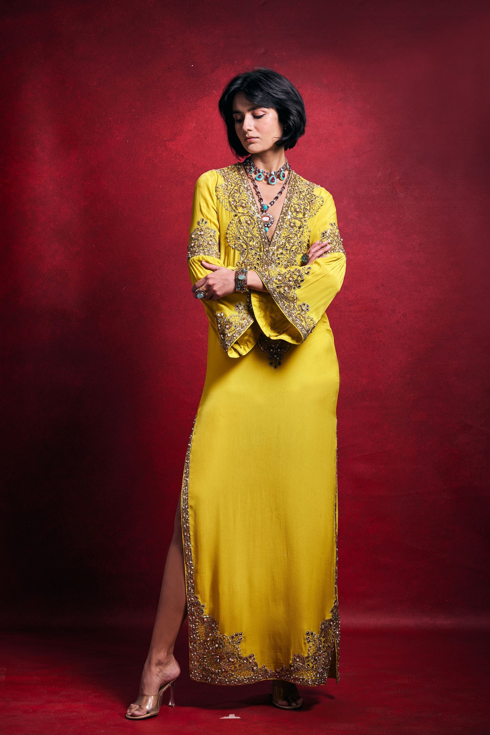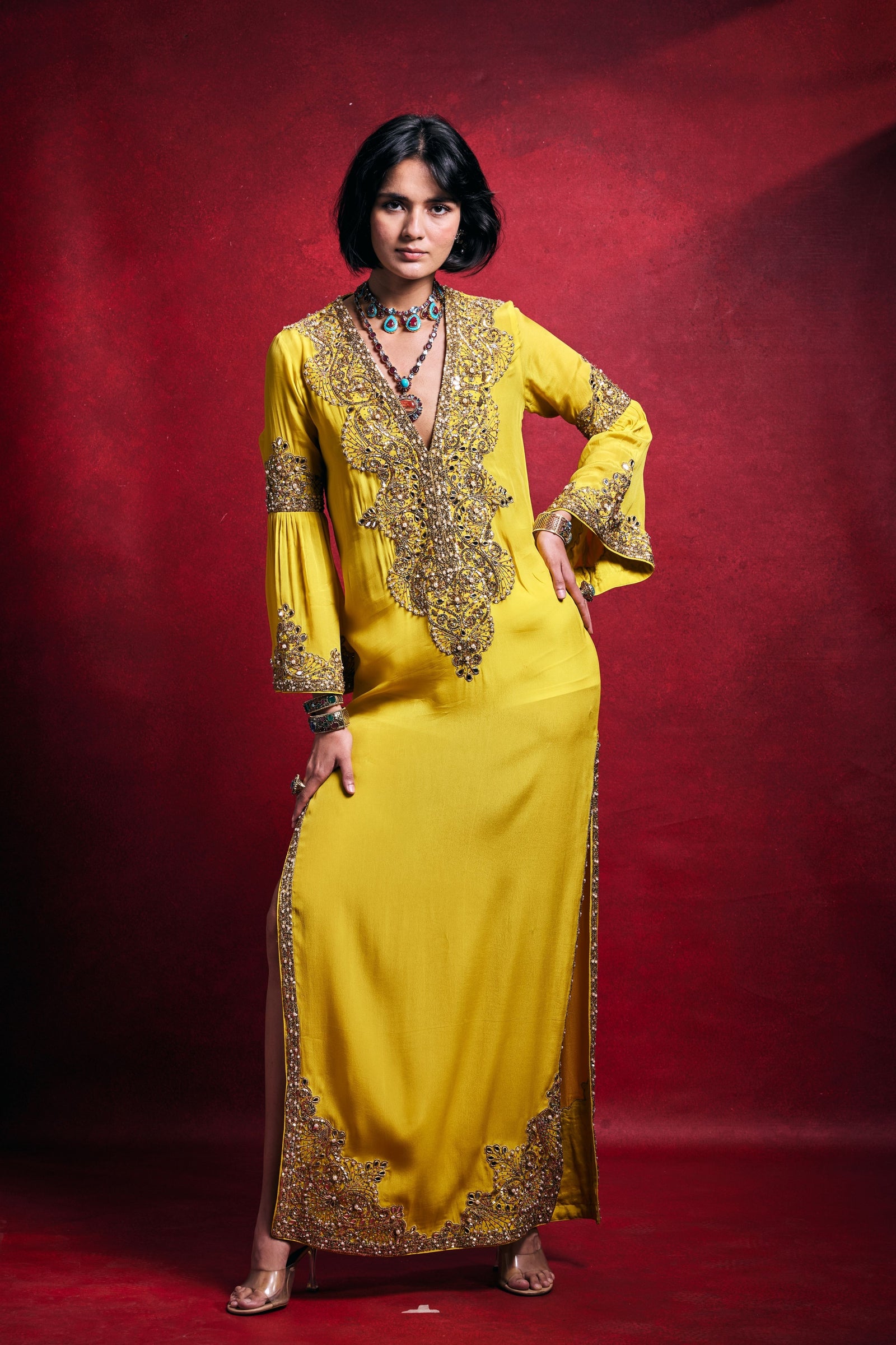 Care: Dry Clean Only. As garments are handmade and handwoven, natural variations in colours and weaves are a characteristic of the textile, and may be found in the finished garments as well.