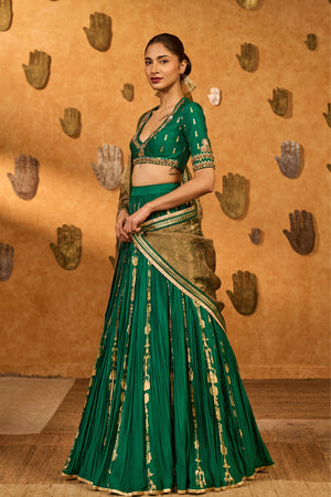 Green Totem Line Lehenga Set